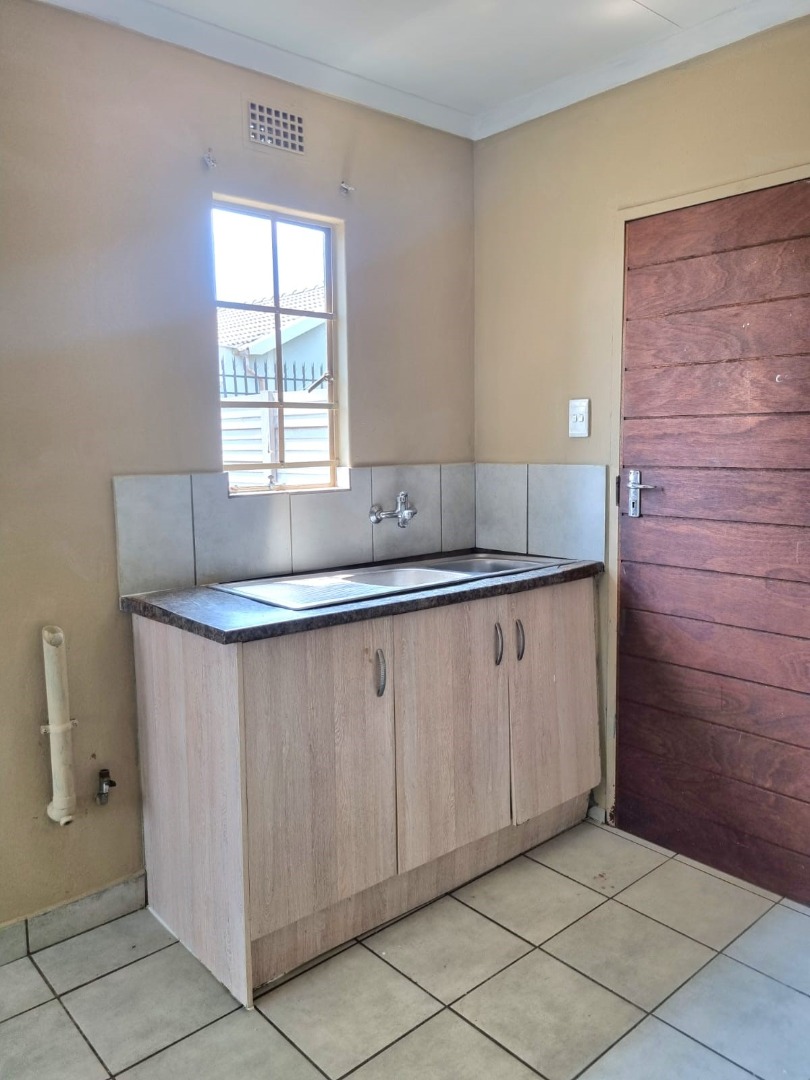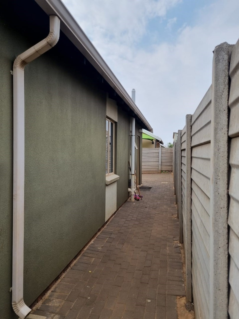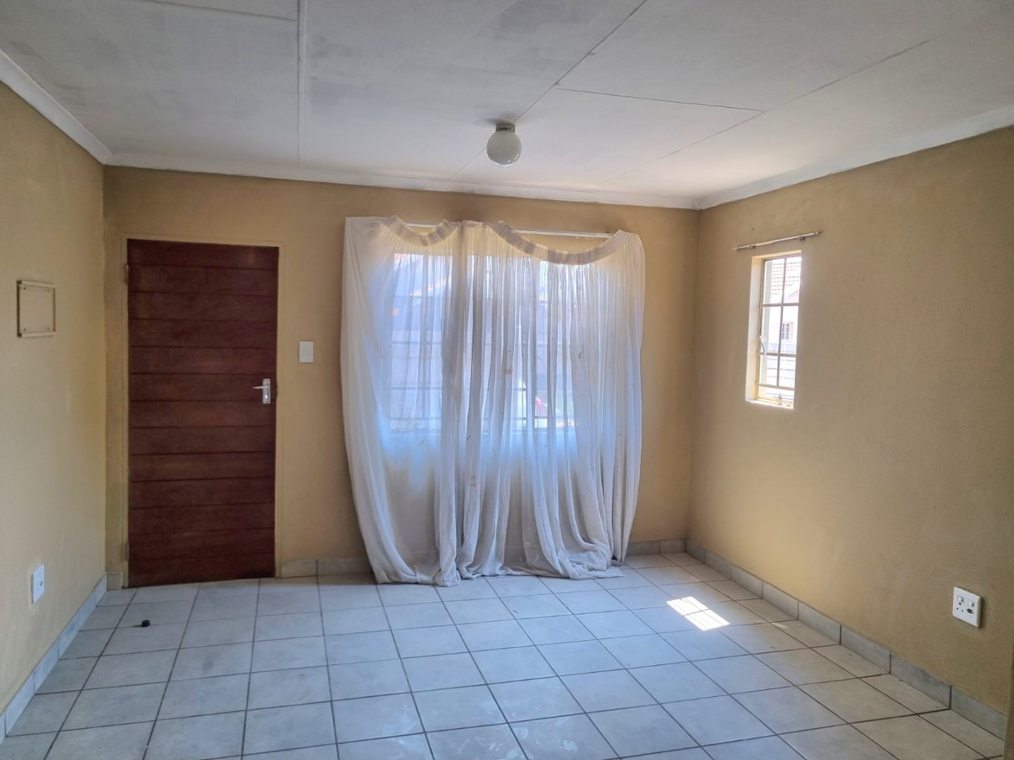 Discover this charming 3-bedroom, 2-bathroom suburban home located in the vibrant community of Sky City, Alberton. This compact, single-story residence presents a neat olive green and cream exterior, complemented by a well-maintained tiled roof and a practical paved driveway leading to the entrance. The property offers a small, established lawn area, enhancing its kerb appeal and providing a pleasant outdoor space. Step inside to find a functional interior designed for comfortable living. The home features a welcoming lounge area and a practical kitchen, both benefiting from durable tiled flooring and neutral-toned walls that offer a versatile canvas for personal touches. The kitchen is equipped with a basic sink unit and counter space, providing essential amenities for daily use. Accommodation includes three well-proportioned bedrooms, each featuring tiled floors and neutral walls, with natural light streaming in through windows fitted with security bars for peace of mind. The two bathrooms are functional, with one showcasing a glass-enclosed shower, toilet, and a space-saving pedestal sink, all designed for convenience. Outside, the property provides three dedicated parking spaces, ensuring ample room for vehicles. The paved walkway and small garden contribute to the property's neat presentation. This home is ideal for first-time buyers or those seeking a manageable living space in a growing area. Situated in Sky City, Alberton, this property offers a suburban lifestyle with accessibility to local amenities and transport routes, making it a practical choice for residents. Key Features: * 3 Bedrooms, 2 Bathrooms * Compact Single-Story Design * Tiled Flooring Throughout * Neutral Interior Palette * Functional Kitchen and Lounge * Paved Driveway with 3 Parking Spaces * Small Established Lawn * Suburban Sky City Location
