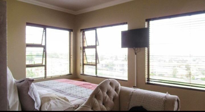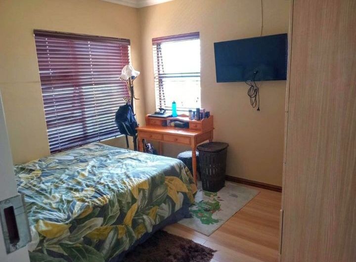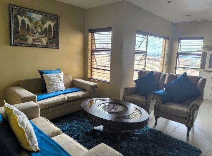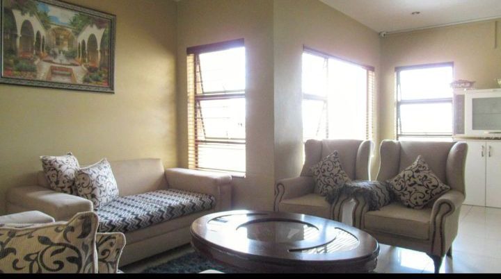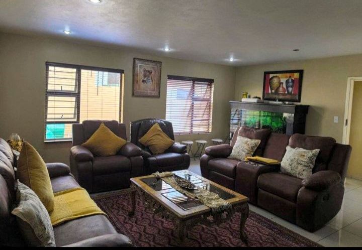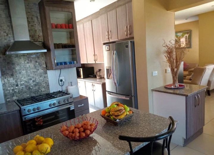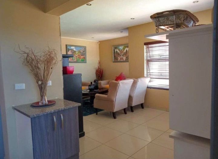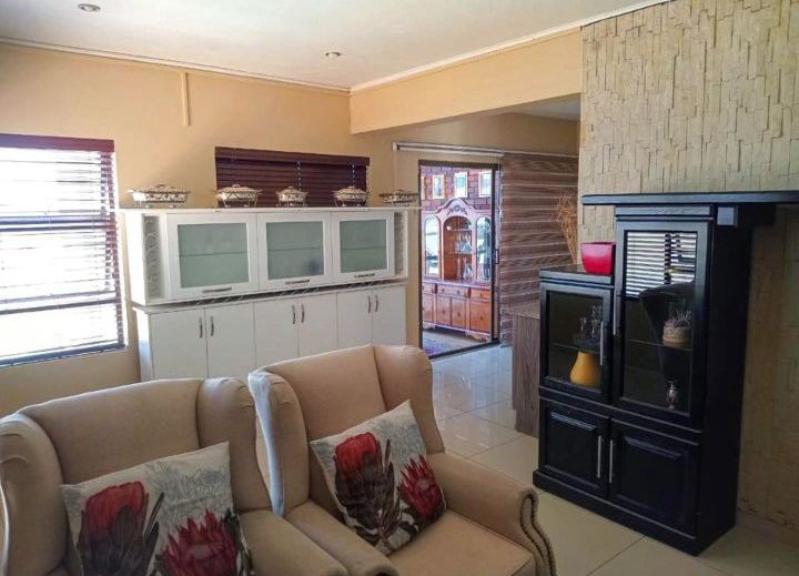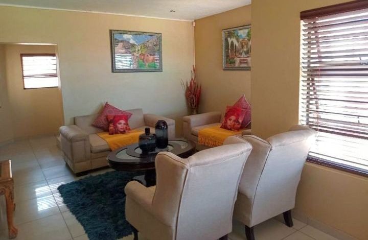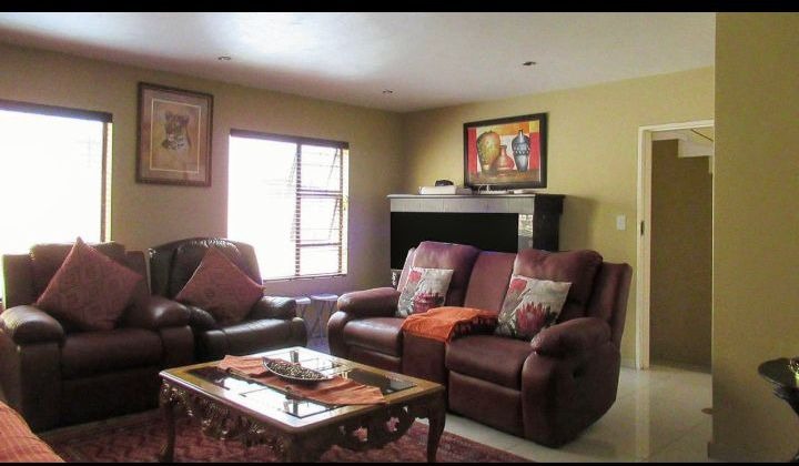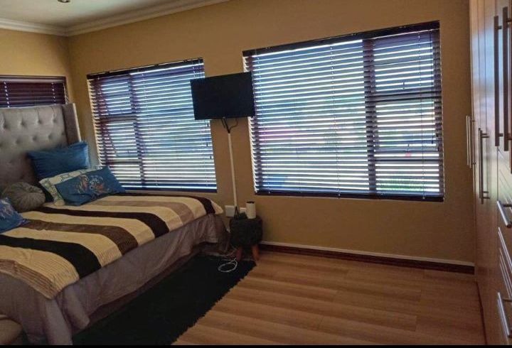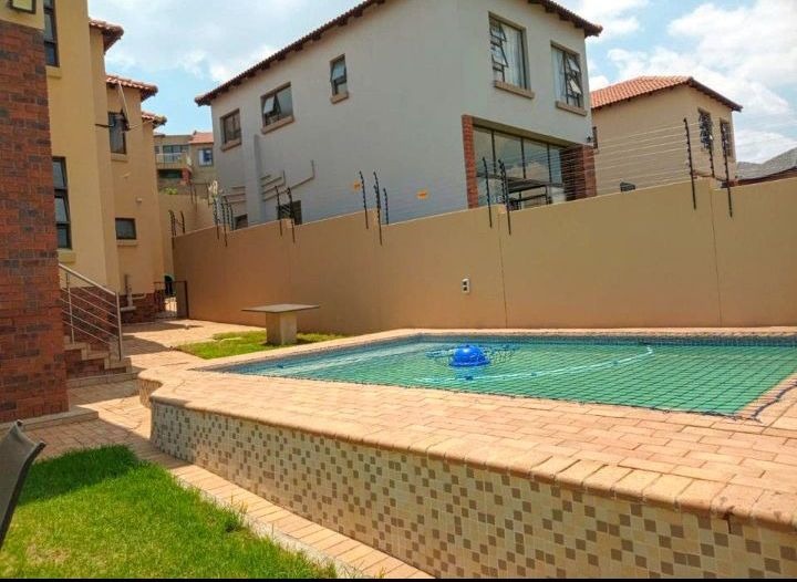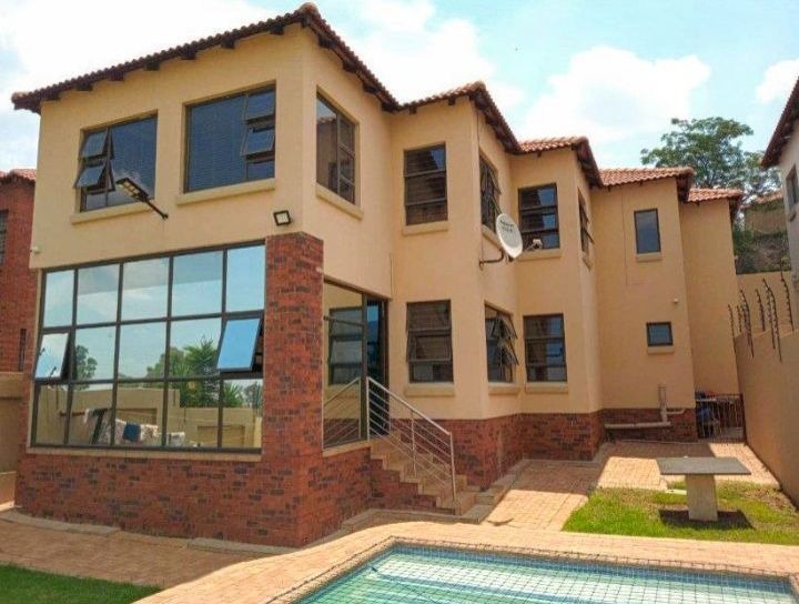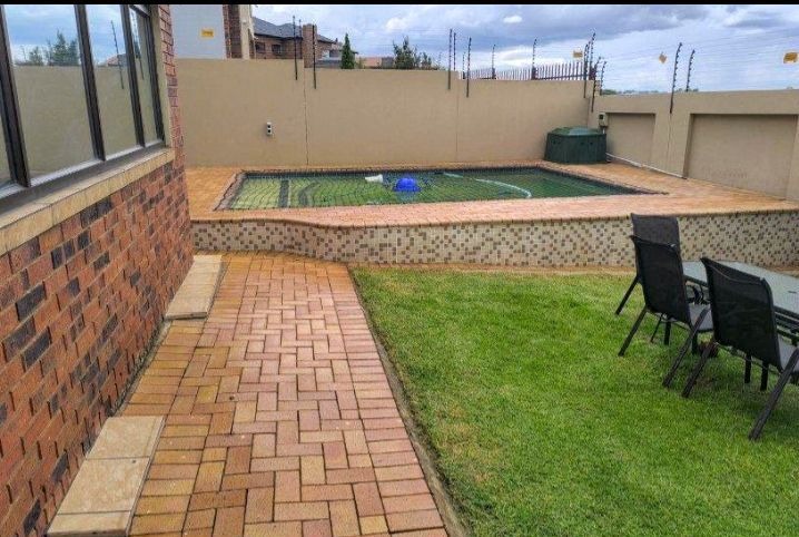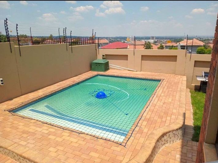 The open-plan layout includes a bright lounge, dining area, and a sleek kitchen with scullery and laundry space. Large windows and patio doors lead to a sparkling pool—ideal for effortless indoor-outdoor living. A private lounge and guest toilet add extra convenience.