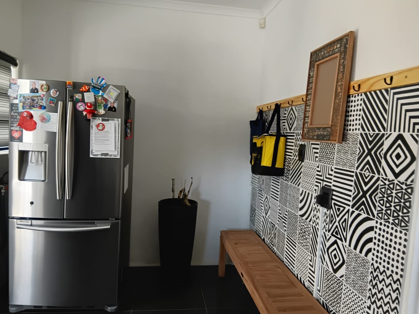 •Patterned tiled backsplash