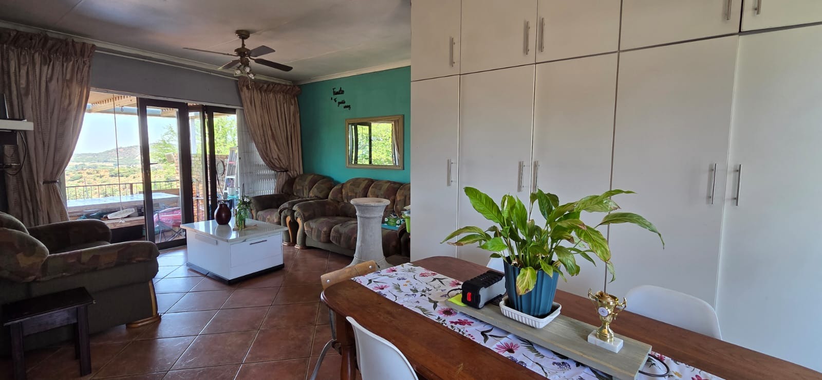 Step inside to a bright and welcoming tiled lounge that seamlessly flows into the dining area. Aluminium stacking doors open onto a covered patio overlooking a beautifully maintained garden — the ideal setting for morning coffee or relaxed weekend gatherings.