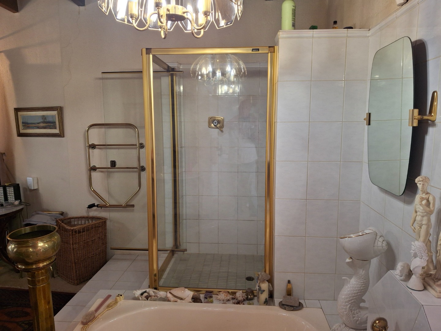The spacious master bedroom includes modern walk-in cupboards, an open plan modern bath, and leads to a private bathroom offering double basins, shower and toilet. Bathroom two has two doors, one leading into a huge bedroom and the other door serves as an entrance for guests, bathroom three is newly tiled and offers a bath, basin and toilet.