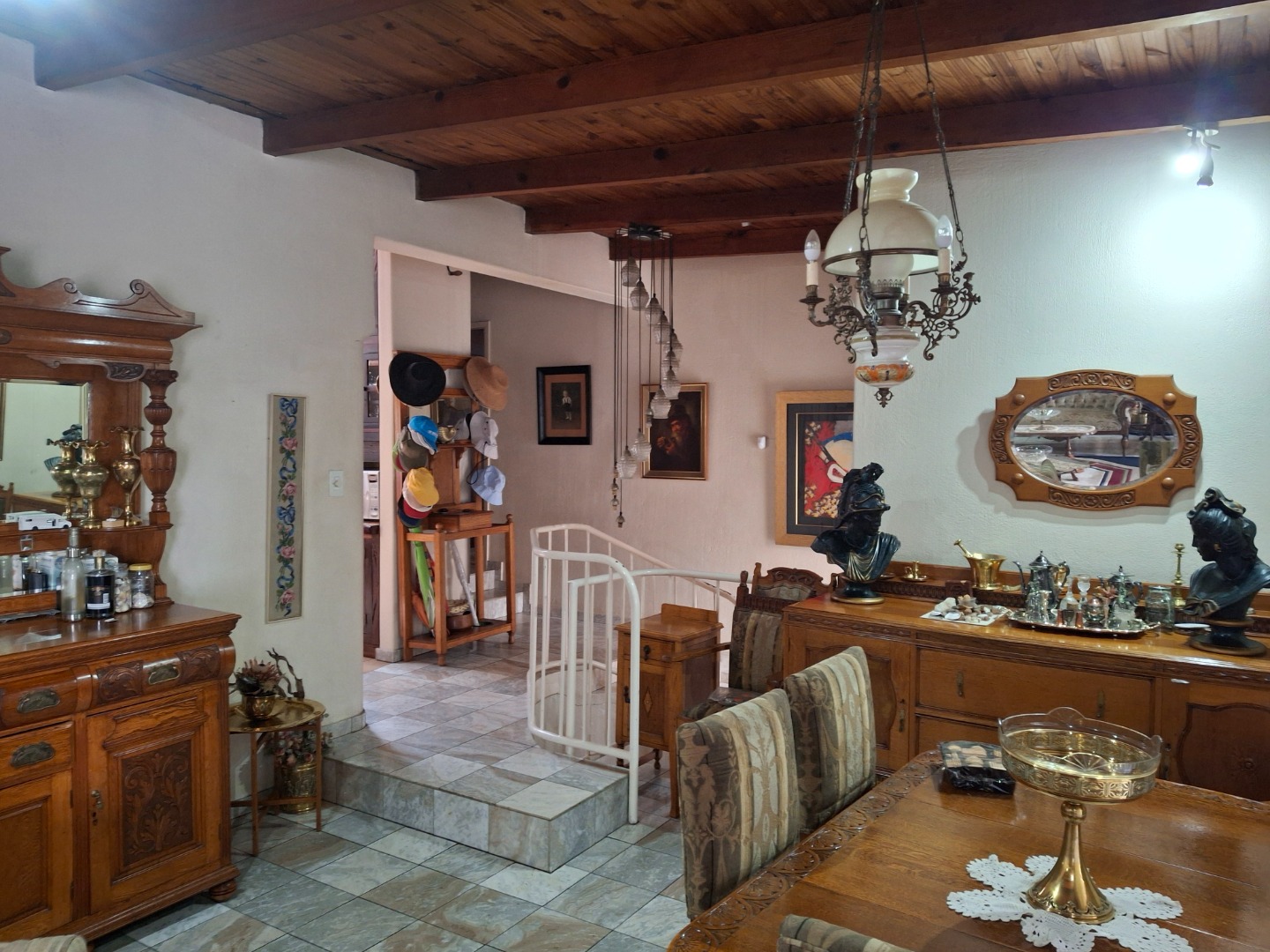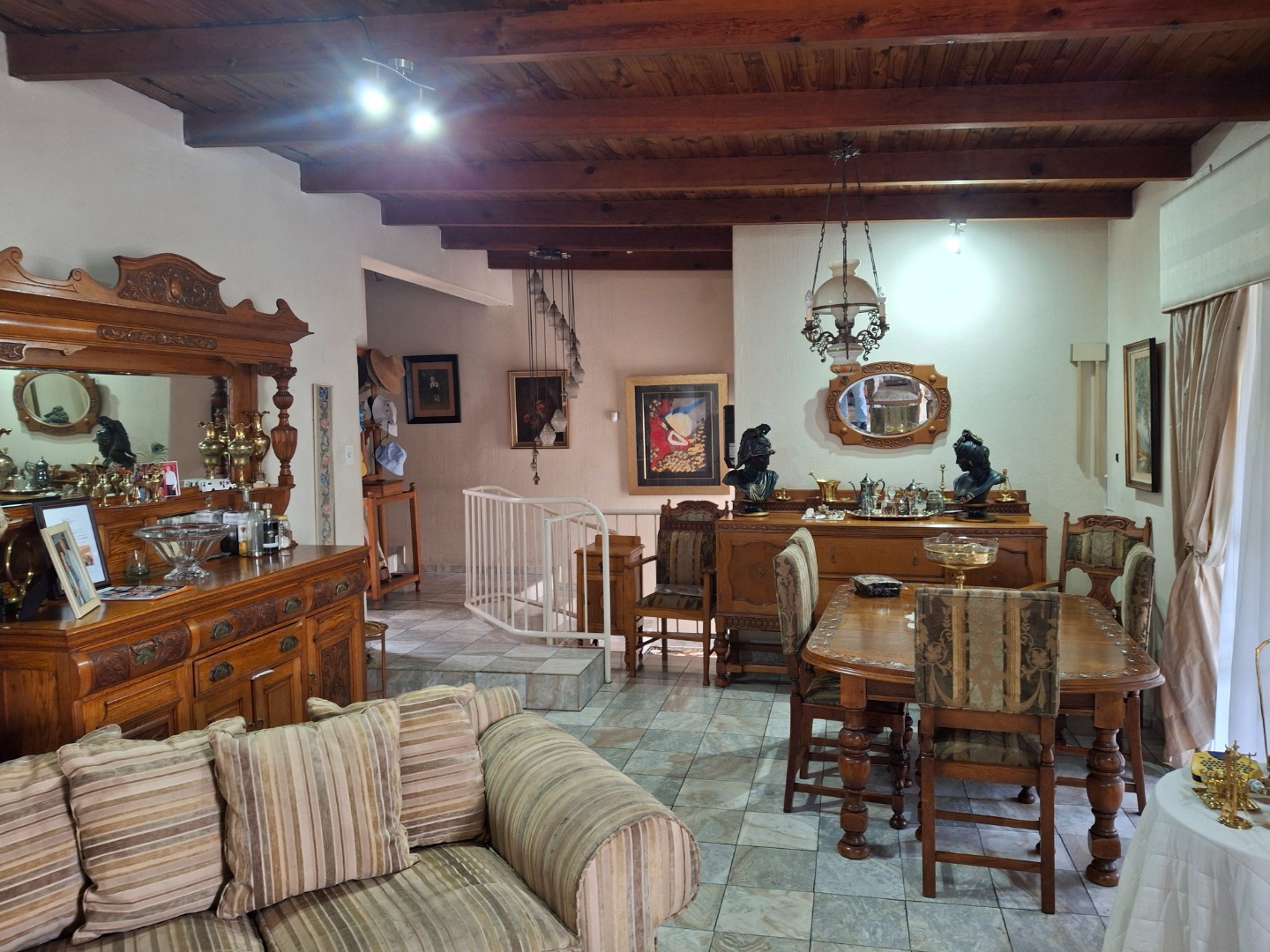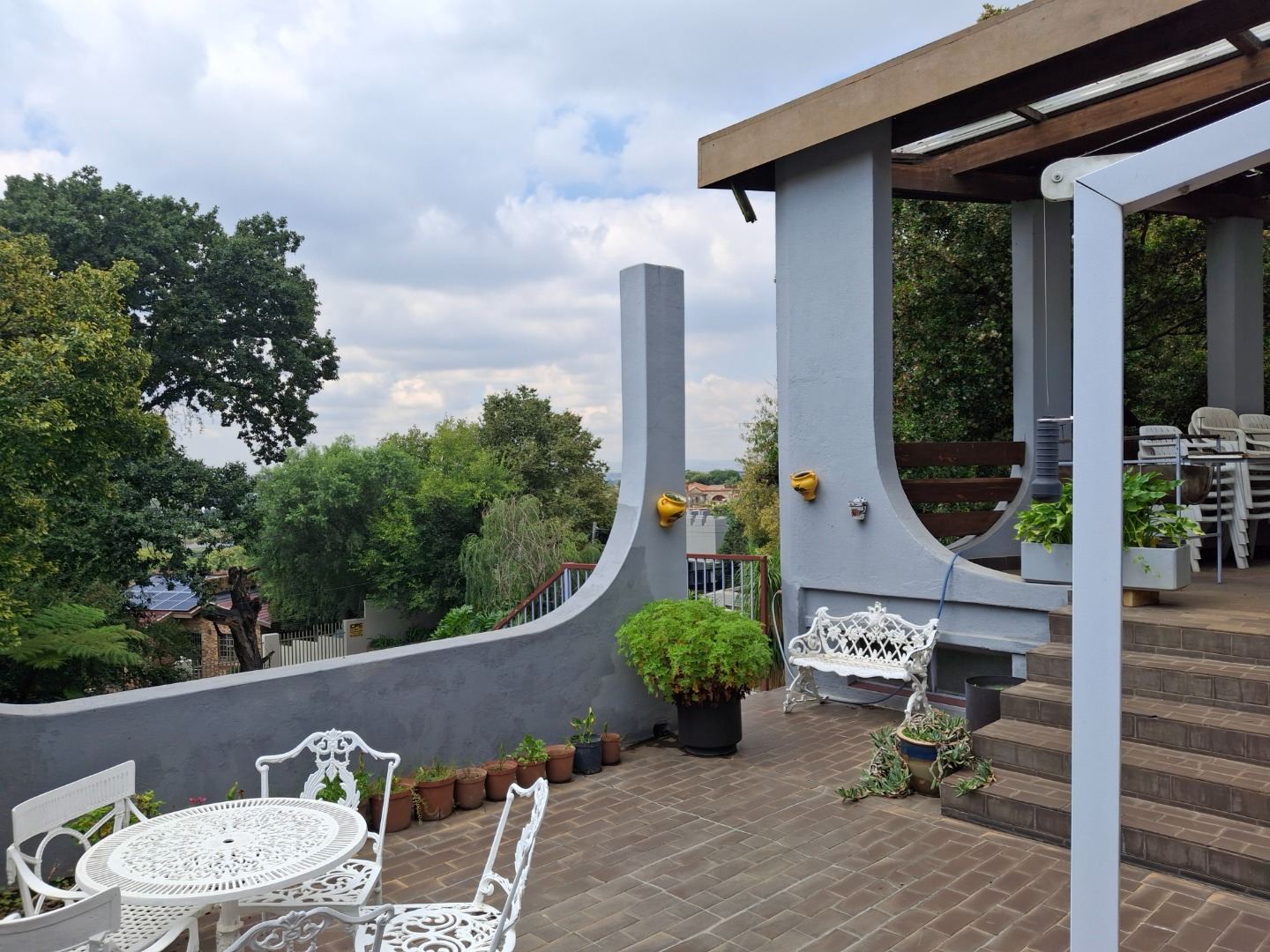 Situated in the prime part of South Crest, surrounded by the most cared for and expensive houses this property offers,5 Large bedrooms,3 bathrooms and 2 huge open plan lounges. The first Lounge forms a L shape with a spacious dining room. This Lounge with a sliding door leads to a massive balcony overlooking Alberton. Here you can entertain as the huge braai, cupboards and dishing table provides everything to host at least 30 guests while everybody can enjoy the view over Alberton and the swimming pool. From the first lounge one walks into the second lounge also in a L shape. This room can be used as a lounge with an open study room. This lounge leads to a huge safe room, the guest bathroom and an on suite double bedroom with plenty cupboards. The lates can all be used as a private suite or as home offices. Lounge 2 also opens up two a separate huge under roof stoep overlooking Alberton. This stoep leads to the braai area. Marble flooring complements these lounges to presents an image of luxury and status.