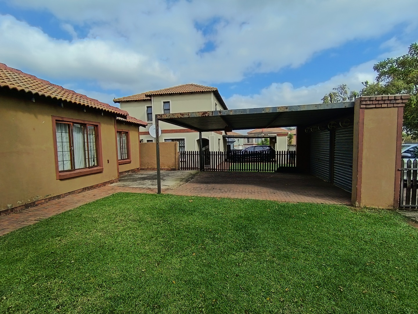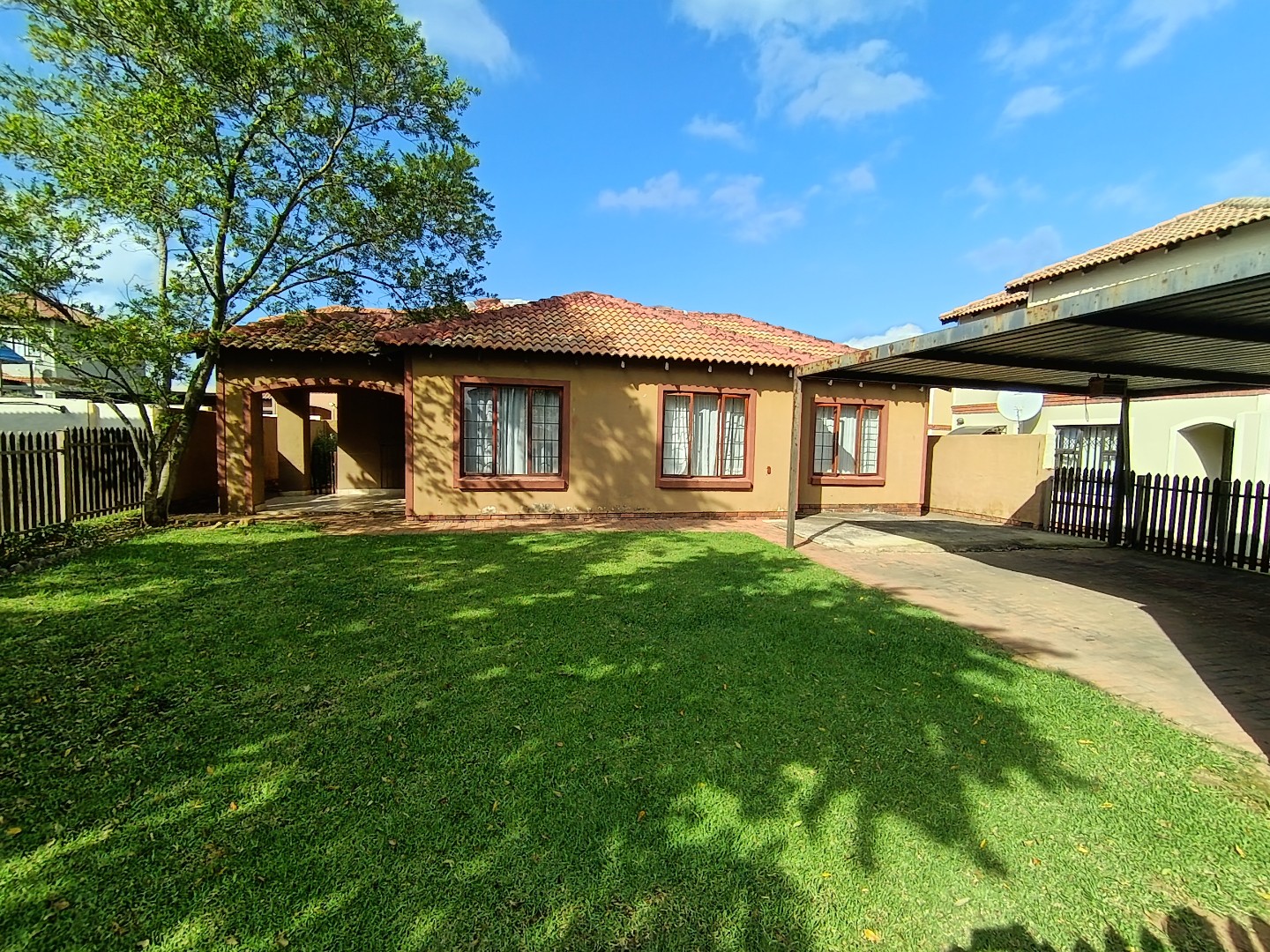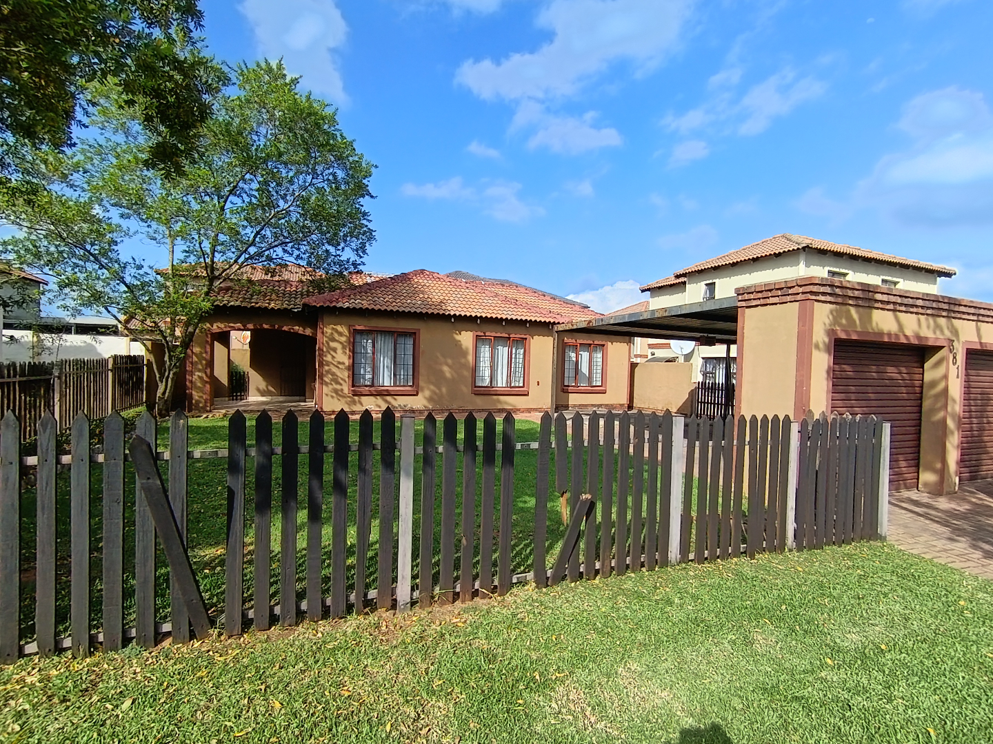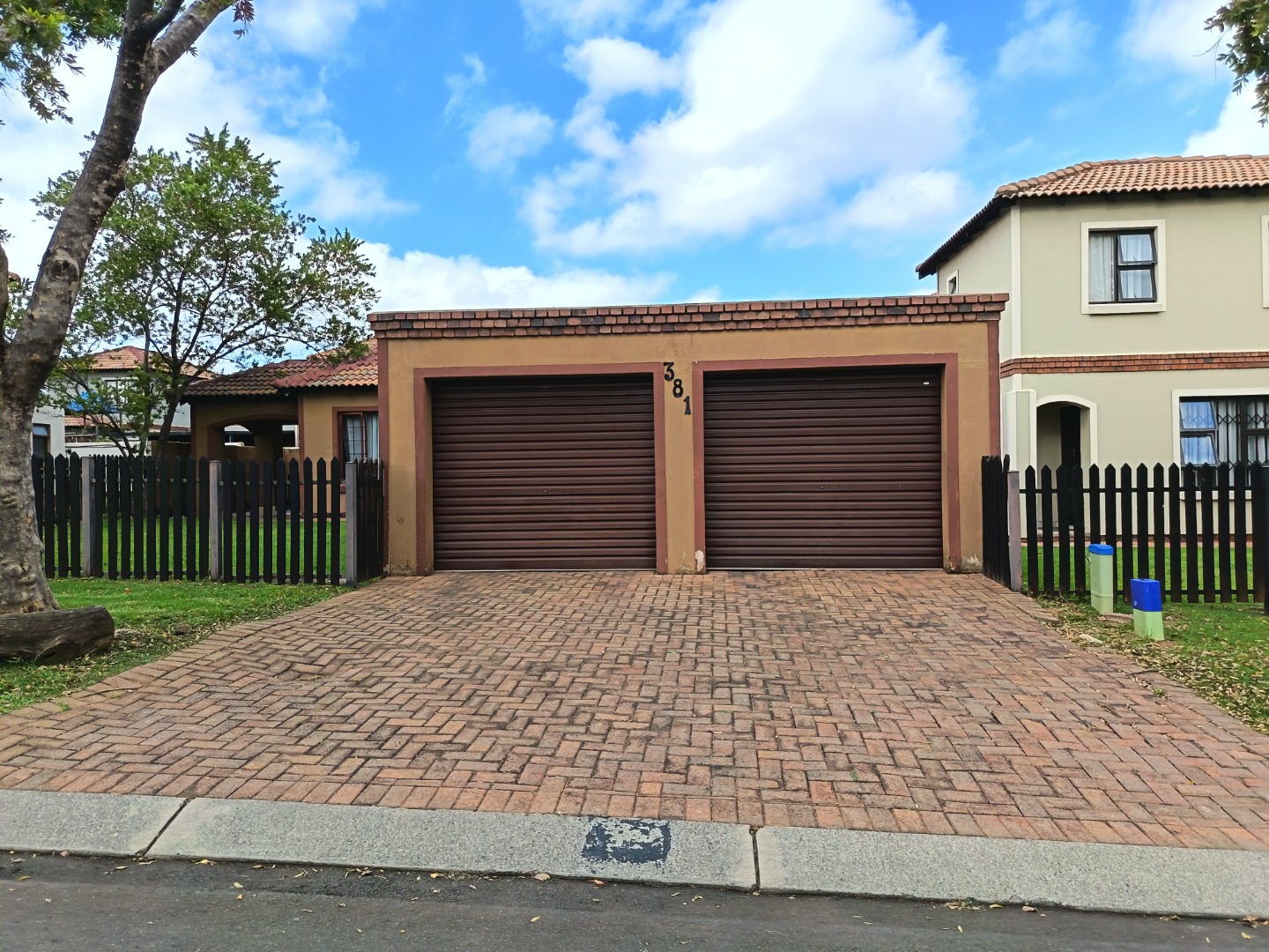 Spanning a floor area of 126 sqm on a generous 300 sqm erf, the property includes a double garage, offering secure parking and additional storage. The exterior boasts a private garden and paved areas, creating an ideal outdoor space for leisure and for pets, as the estate is pet-friendly.