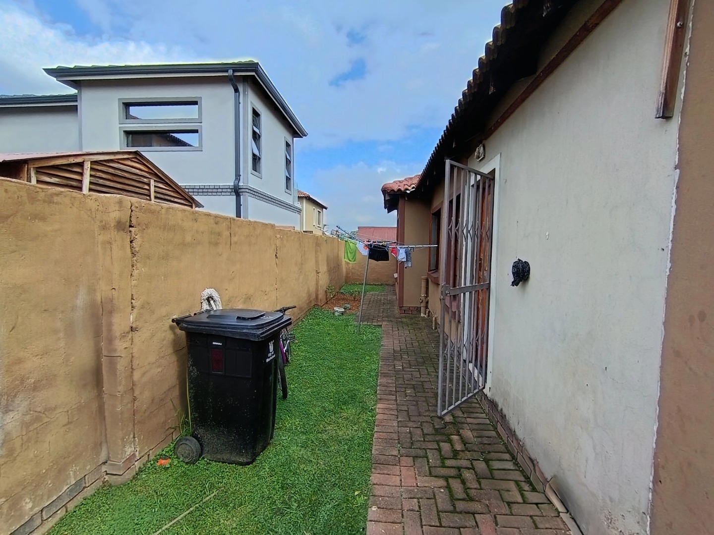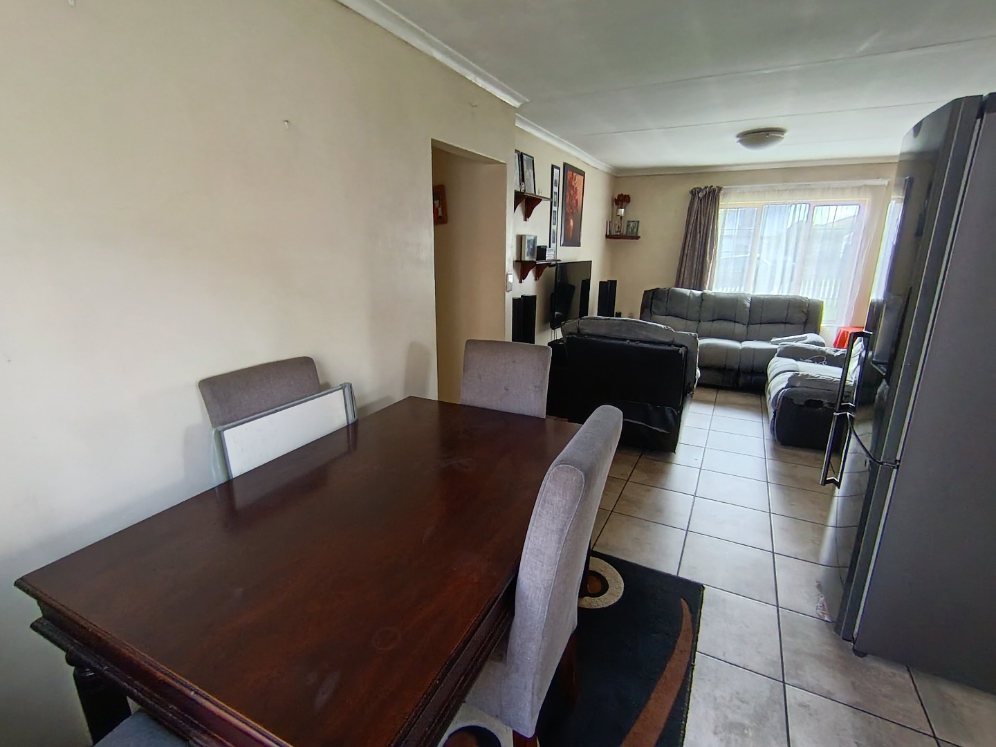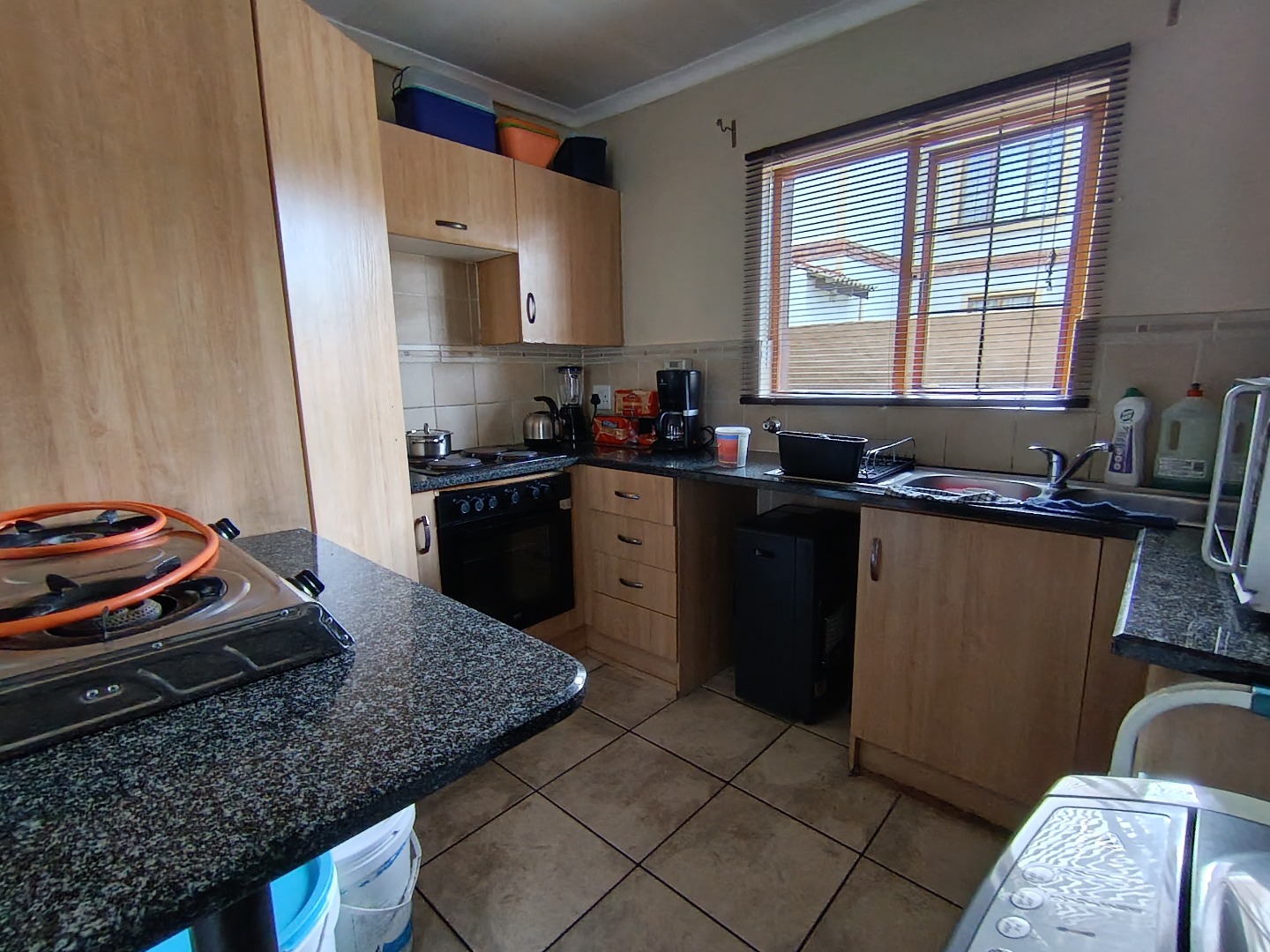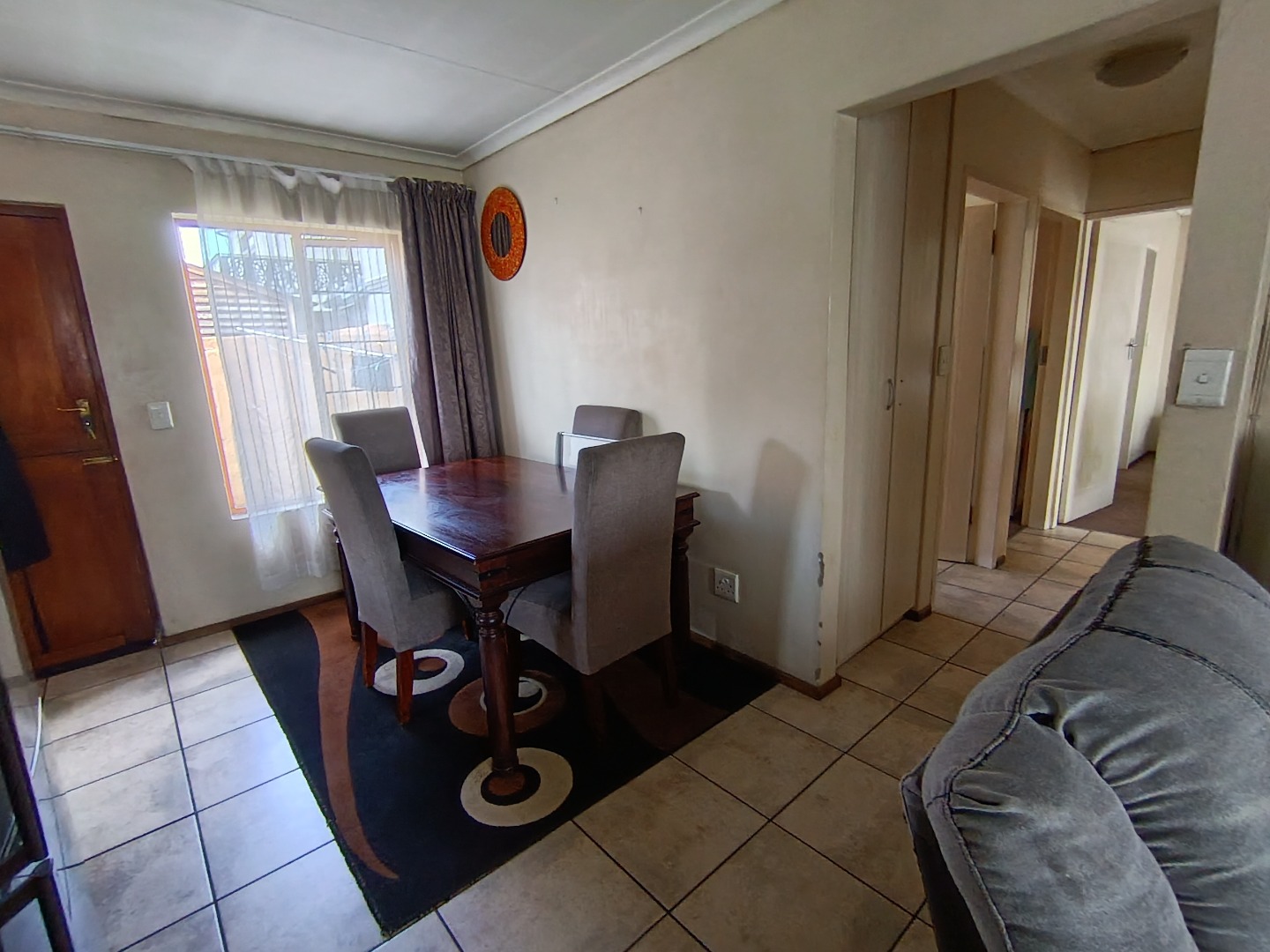 Spanning a floor area of 126 sqm on a generous 300 sqm erf, the property includes a double garage, offering secure parking and additional storage. The exterior boasts a private garden and paved areas, creating an ideal outdoor space for leisure and for pets, as the estate is pet-friendly.