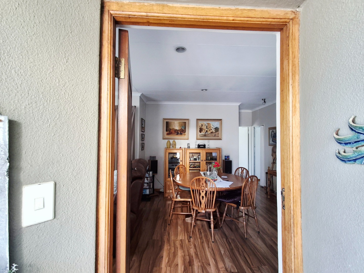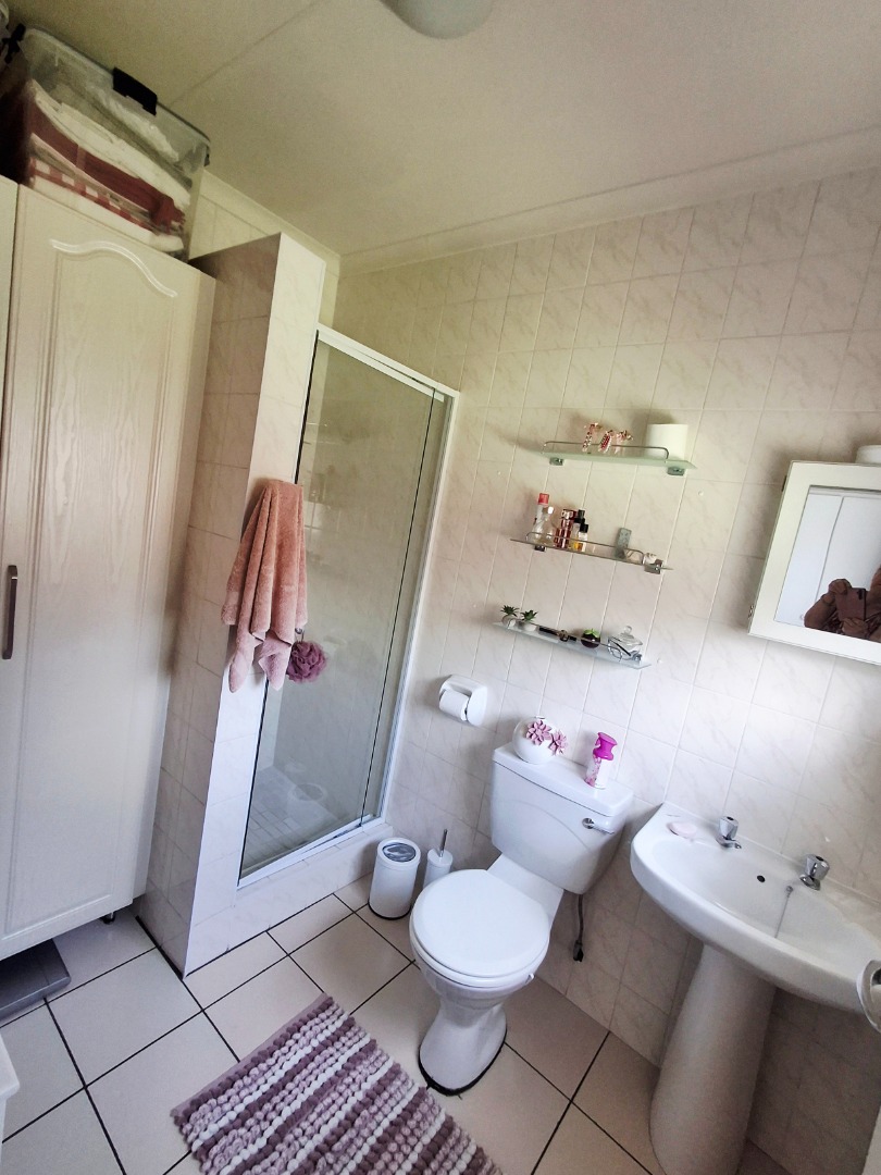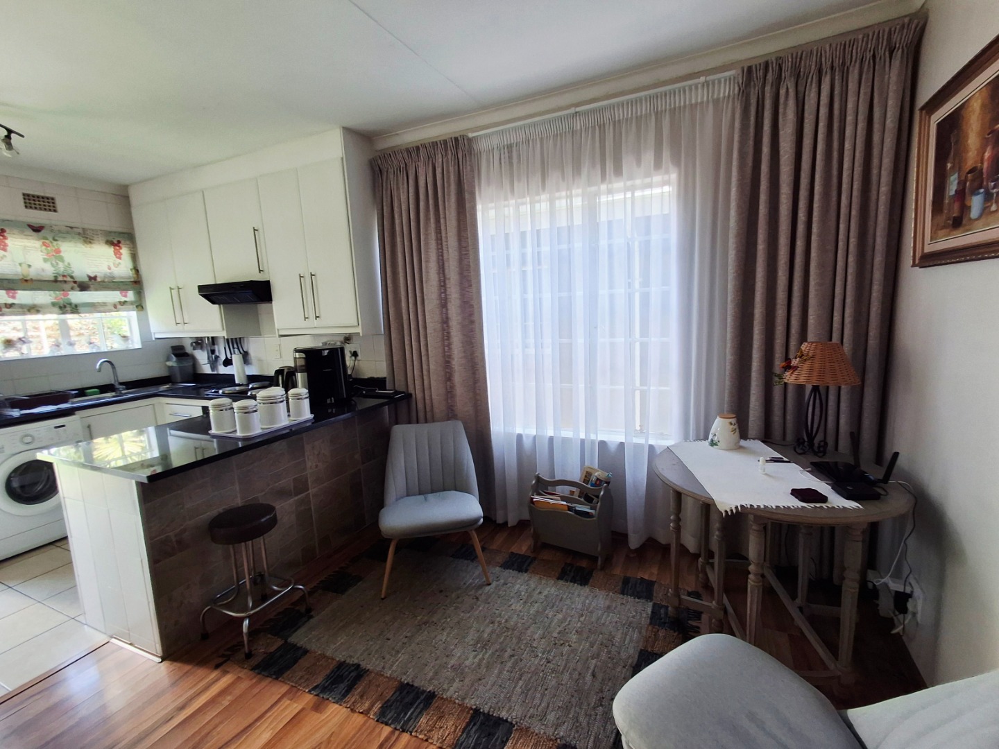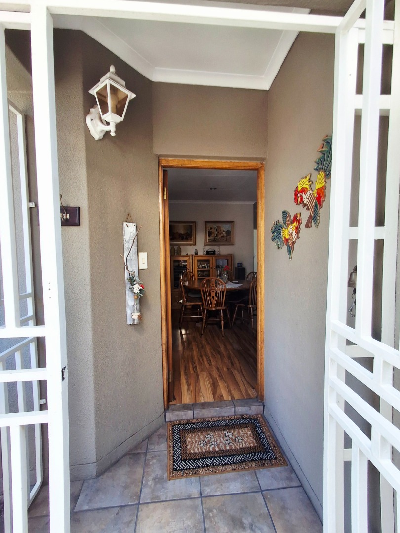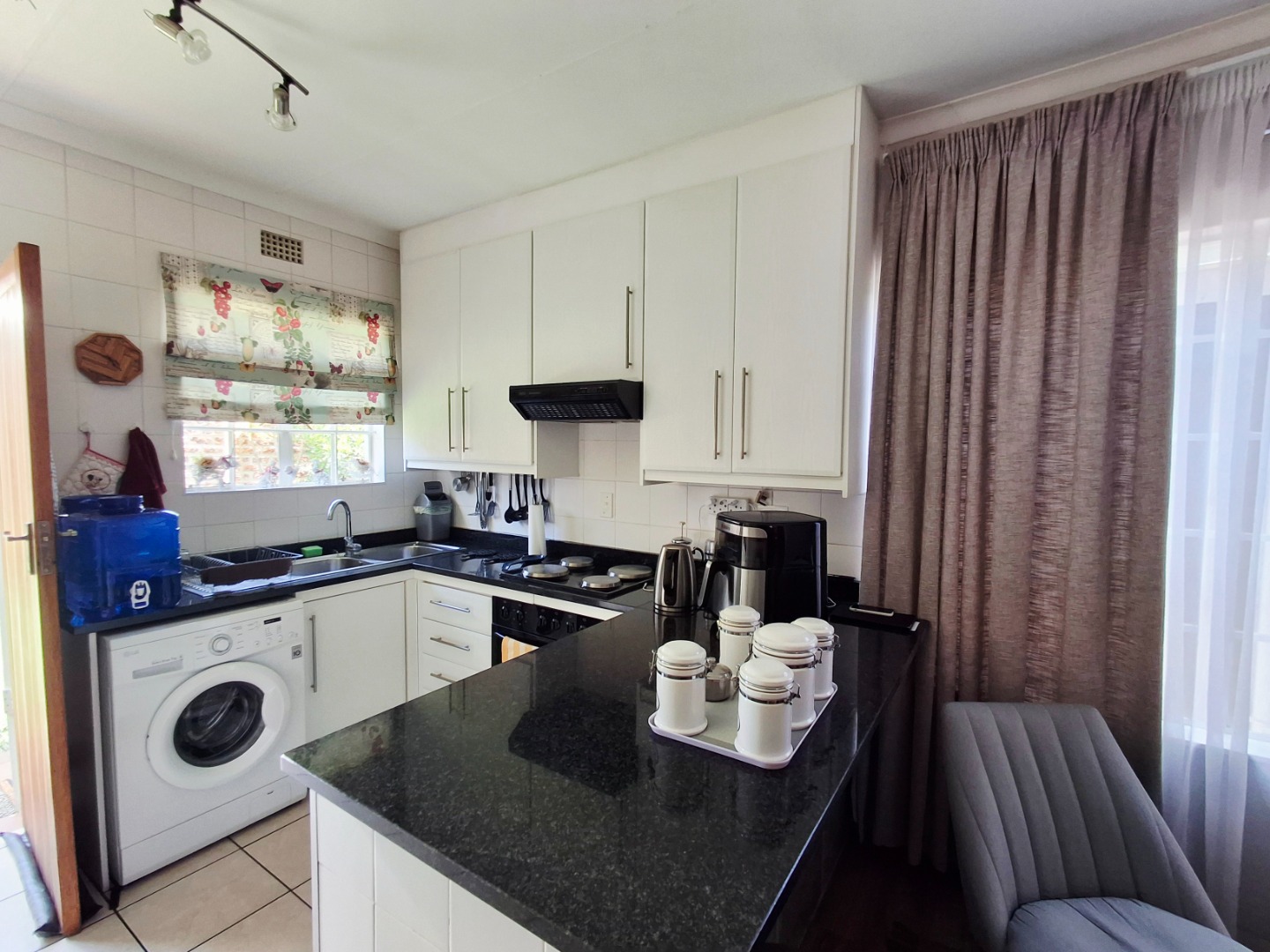 Discover this charming single-story home nestled in the desirable suburban area of Verwoerdpark, Alberton. Boasting an attractive light brown exterior complemented by a distinctive green tiled roof, the property immediately conveys a sense of warmth and meticulous care. A paved driveway leads to a covered carport, secured by an access gate, ensuring convenient and protected parking. The beautifully landscaped garden, featuring mature trees and a manicured lawn, provides a serene outdoor retreat, complete with a welcoming front patio perfect for relaxation. Step inside to an inviting entrance hall that flows seamlessly into the open-plan living and dining areas. These spacious interiors are enhanced by well-maintained wood laminate flooring and neutral wall colours, offering a versatile backdrop for any decor style. Abundant natural light streams through multiple windows, creating a bright and airy atmosphere throughout the main living spaces, which also benefit from recessed lighting for evening ambiance. The functional kitchen is equipped with modern white cabinetry and durable black granite countertops, providing ample storage and generous counter space for meal preparation. It features a built-in stove and oven, an integrated washing machine, and a practical tiled backsplash and floor, all illuminated by natural light from a window. This comfortable residence offers two well-proportioned bedrooms, including one with a private en-suite bathroom, alongside a second full bathroom, catering to both residents and guests. The layout ensures privacy and convenience for all occupants. Situated within a secure complex, the property benefits from a security post and access gate, contributing to a peaceful living environment. Outdoor amenities include a lapa, ideal for entertaining, and a well-kept garden, perfect for outdoor activities. With an erf size of 408 sqm and a floor size of 115 sqm, this home offers a manageable yet comfortable footprint. Key Features: * Two bedrooms, two bathrooms (one en-suite) * Open-plan living and dining areas * Modern kitchen with granite countertops * Consistent wood laminate flooring * Covered carport with security gate * Well-maintained garden and lapa * Security post and access gate within a complex * Erf Size: 408 sqm, Floor Size: 115 sqm