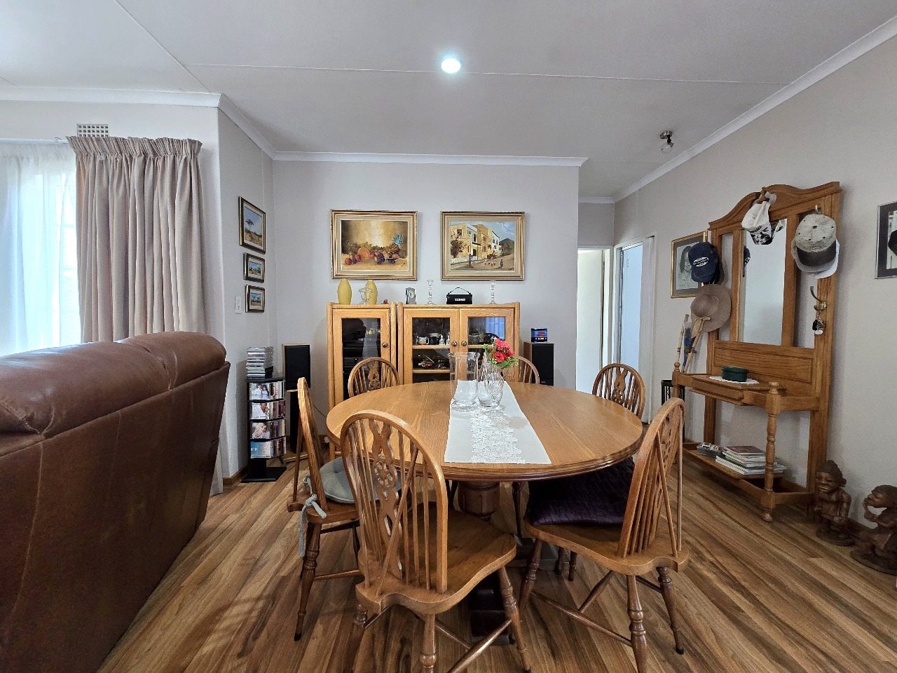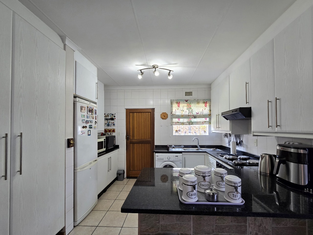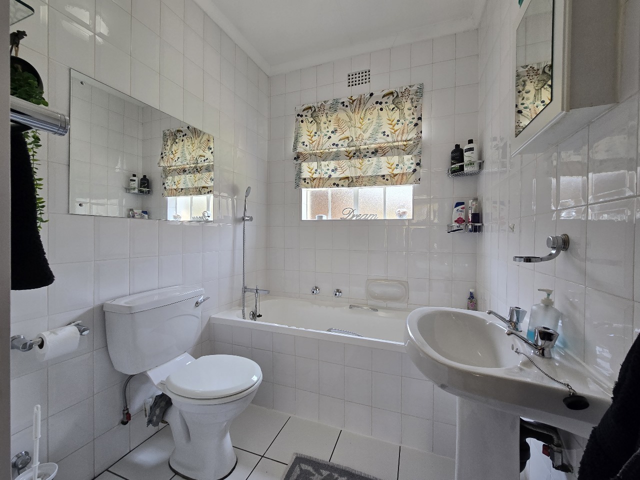 Discover this charming single-story home, ideally situated in a secure complex within the suburban heart of Verwoerdpark, Alberton. Boasting a distinctive green tiled roof and a well-maintained exterior, the property offers immediate kerb appeal with its lush garden, paved driveway, and secure gated entrance leading to a welcoming covered patio. The interior features a bright and airy lounge, complete with hardwood-style flooring, neutral walls, and large windows that invite ample natural light. Security bars on the windows provide peace of mind. Adjacent to this comfortable living space is a dedicated dining room, perfect for family meals and entertaining. The functional kitchen is equipped with white cabinetry, dark granite-look countertops, a white tiled backsplash, an electric stovetop, and a built-in oven, offering good storage and counter space. This residence comprises two well-proportioned bedrooms, each featuring soft carpeting, neutral walls, and ceiling fans for comfort. Ample built-in wardrobes ensure generous storage, while large windows maintain a bright atmosphere. The home includes two fully tiled bathrooms, both fitted with a bathtub and overhead shower, a pedestal sink, and a toilet, providing practical and easy-to-maintain facilities. Outdoor living is a highlight, with a spacious, healthy lawn and a prominent thatched-roof lapa, creating an excellent space for outdoor entertainment and relaxation. A single garage provides secure parking and additional storage. This property, with an erf size of 408 sqm and a floor size of 115 sqm, offers a comfortable and secure lifestyle. Verwoerdpark is a well-established residential area in Alberton, known for its family-friendly environment and convenient access to local amenities, schools, and major transport routes, making it a desirable location for homeowners. Key Features: * Two comfortable bedrooms with built-in wardrobes * Two fully tiled bathrooms with bathtubs * Spacious lounge and dedicated dining room * Functional kitchen with ample storage * Secure gated entrance and paved driveway * Thatched lapa for outdoor entertaining * Well-maintained garden and lawn * Single garage for secure parking * Located in a secure complex * Erf Size: 408 sqm, Floor Size: 115 sqm
