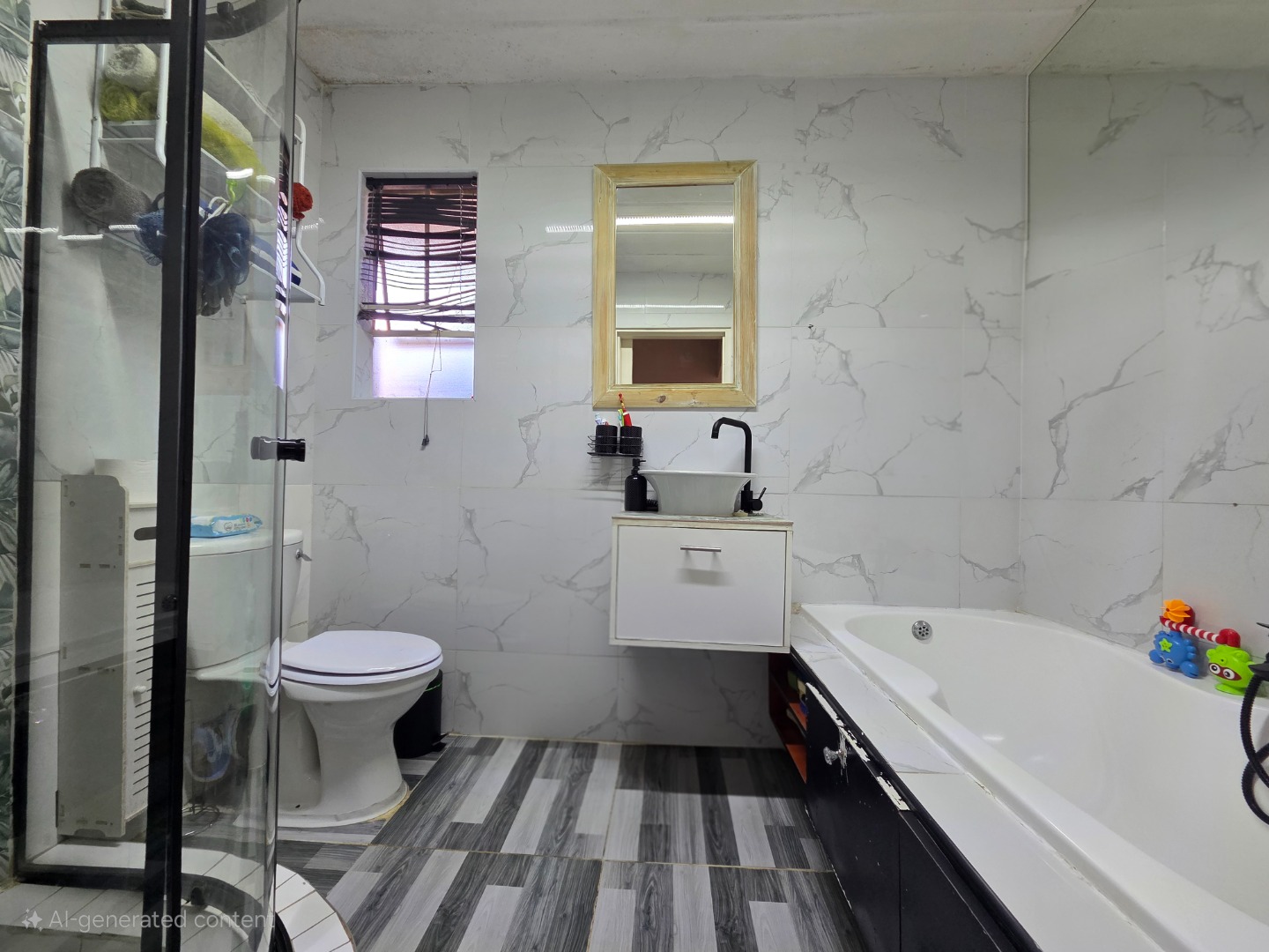 Enjoy three generously sized bedrooms, all tiled and equipped with built-in cupboards. Each room blends comfort, space, and style, with a calming neutral palette that complements any décor, one bathroom with a shower and bath.