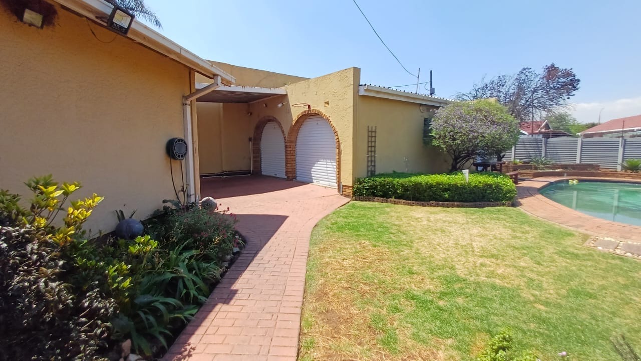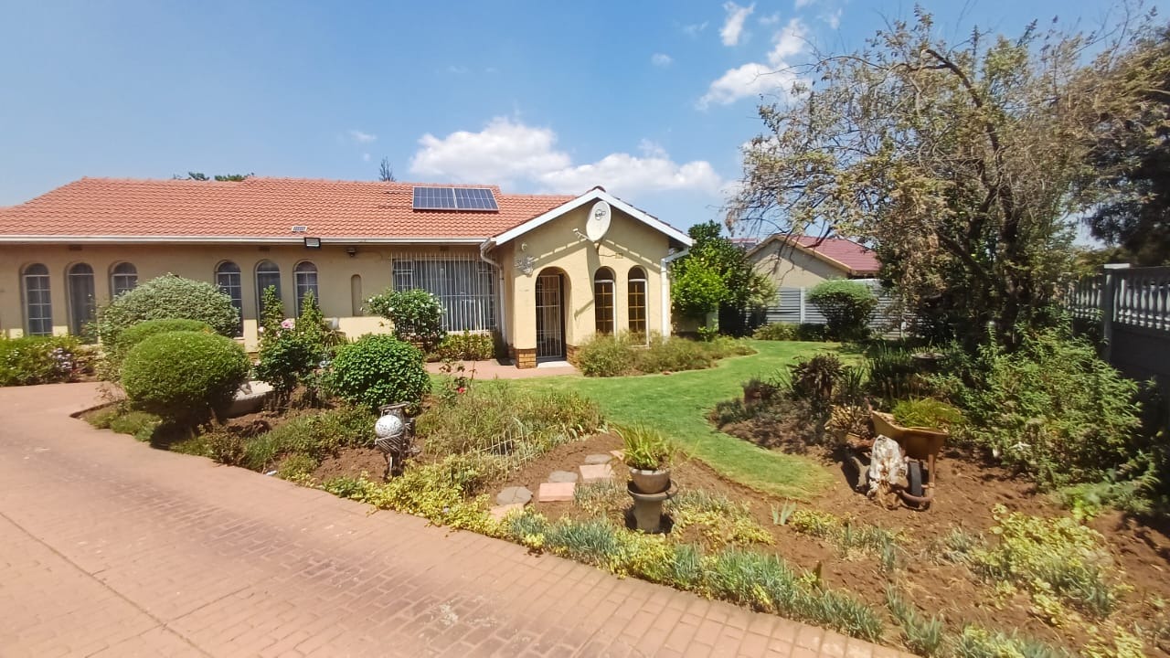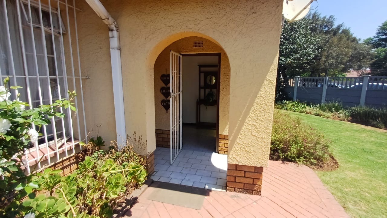 Welcome to this lovely family home nestled in the heart of Van Rhyn SH, Benoni, offering a relaxed suburban lifestyle with all the conveniences of metropolitan living. This charming property immediately catches your eye with its well-maintained exterior, featuring a distinct architectural style with arched windows and a classic tiled roof. The mature front garden, complete with a neat lawn and manicured shrubs, creates a welcoming first impression, while a long paved brick driveway leads to ample parking and a double garage.