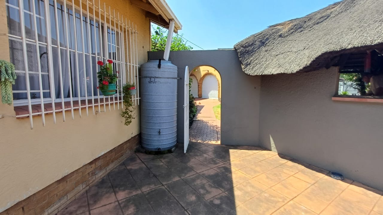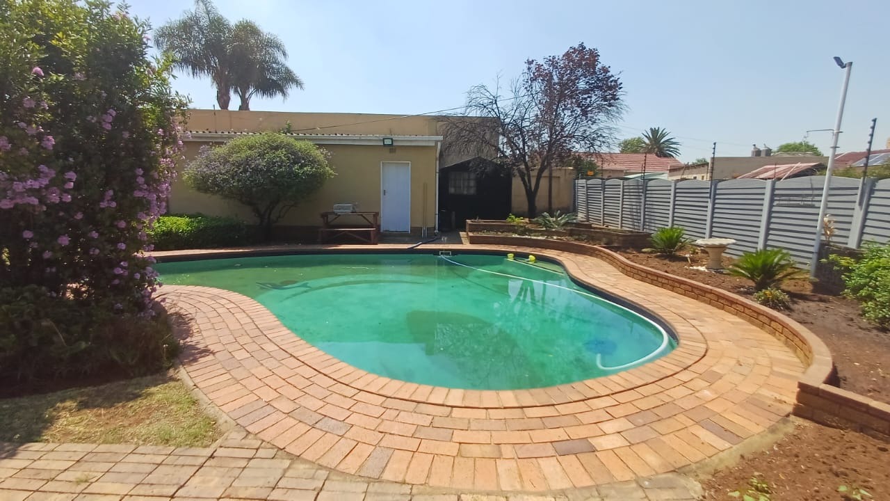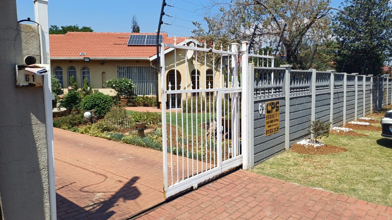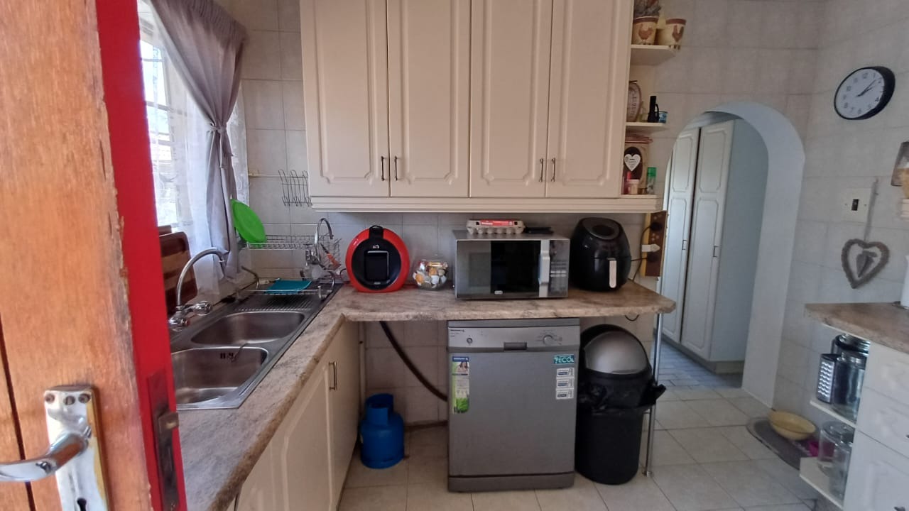 Welcome to this lovely family home nestled in the heart of Van Rhyn SH, Benoni, offering a relaxed suburban lifestyle with all the conveniences of metropolitan living. This charming property immediately catches your eye with its well-maintained exterior, featuring a distinct architectural style with arched windows and a classic tiled roof. The mature front garden, complete with a neat lawn and manicured shrubs, creates a welcoming first impression, while a long paved brick driveway leads to ample parking and a double garage.