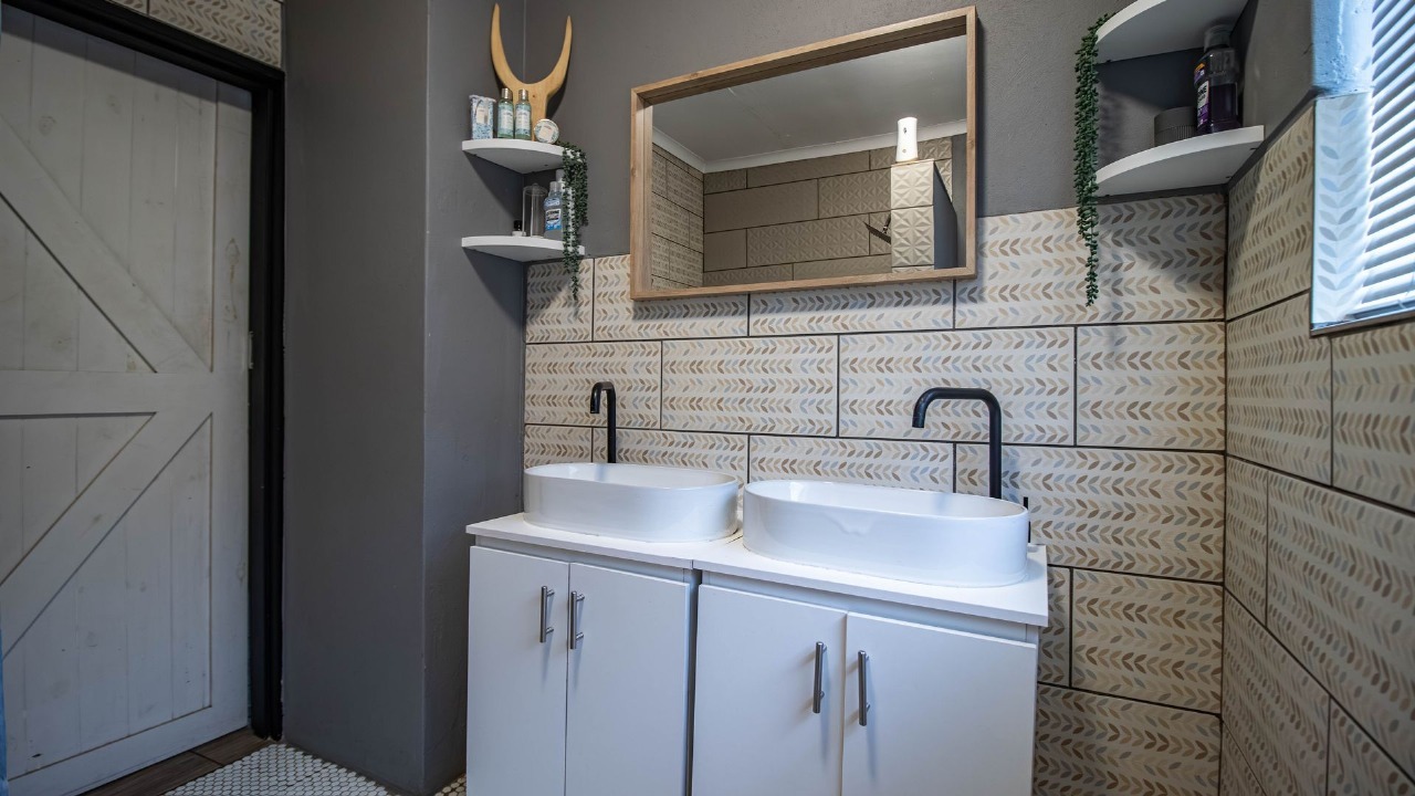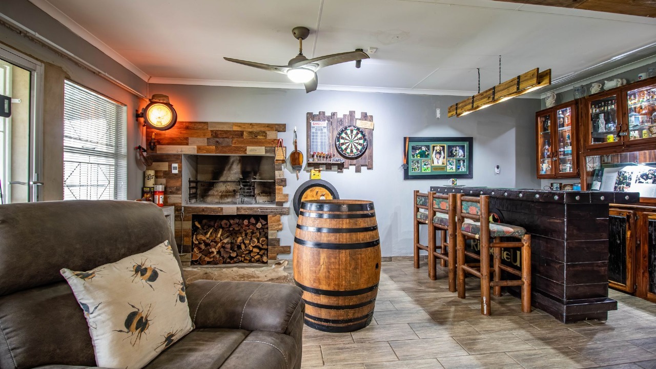 Discover this inviting 4-bedroom, 2-bathroom family home nestled in the suburban heart of Verwoerdpark, Alberton, offering a generous 301 sqm of living space on an 892 sqm erf. The residence boasts a modern, open-plan kitchen featuring sleek blue cabinetry, warm wood accents, and a marble-look island with breakfast bar seating, seamlessly flowing into the living areas. Two comfortable lounges provide ample space for relaxation, complemented by a dedicated entertainment room complete with a built-in braai, a fully equipped bar, and a dartboard for social gatherings. Step outside to a well-maintained swimming pool, perfect for cooling off on warm days, surrounded by an extensive tiled patio ideal for outdoor living. A covered entertainment area with a picnic table and BBQ offers additional space for alfresco dining. The property prioritizes security with window and door grilles, while solar panels on the roof contribute to energy efficiency. A double garage provides convenient parking and storage. Verwoerdpark is a well-established suburban community in Alberton, known for its family-friendly atmosphere and convenient access to local amenities. Key Features: * 4 Bedrooms, 2 Bathrooms (1 En-suite) * Modern Kitchen with Blue Cabinetry * 2 Lounges & Dedicated Entertainment Room * Built-in Braai & Bar Area * Swimming Pool & Tiled Patio * Covered Outdoor BBQ Area * Solar Panels for Energy Efficiency * Security Grilles & Bars * 1 Garage * 892 sqm Erf Size