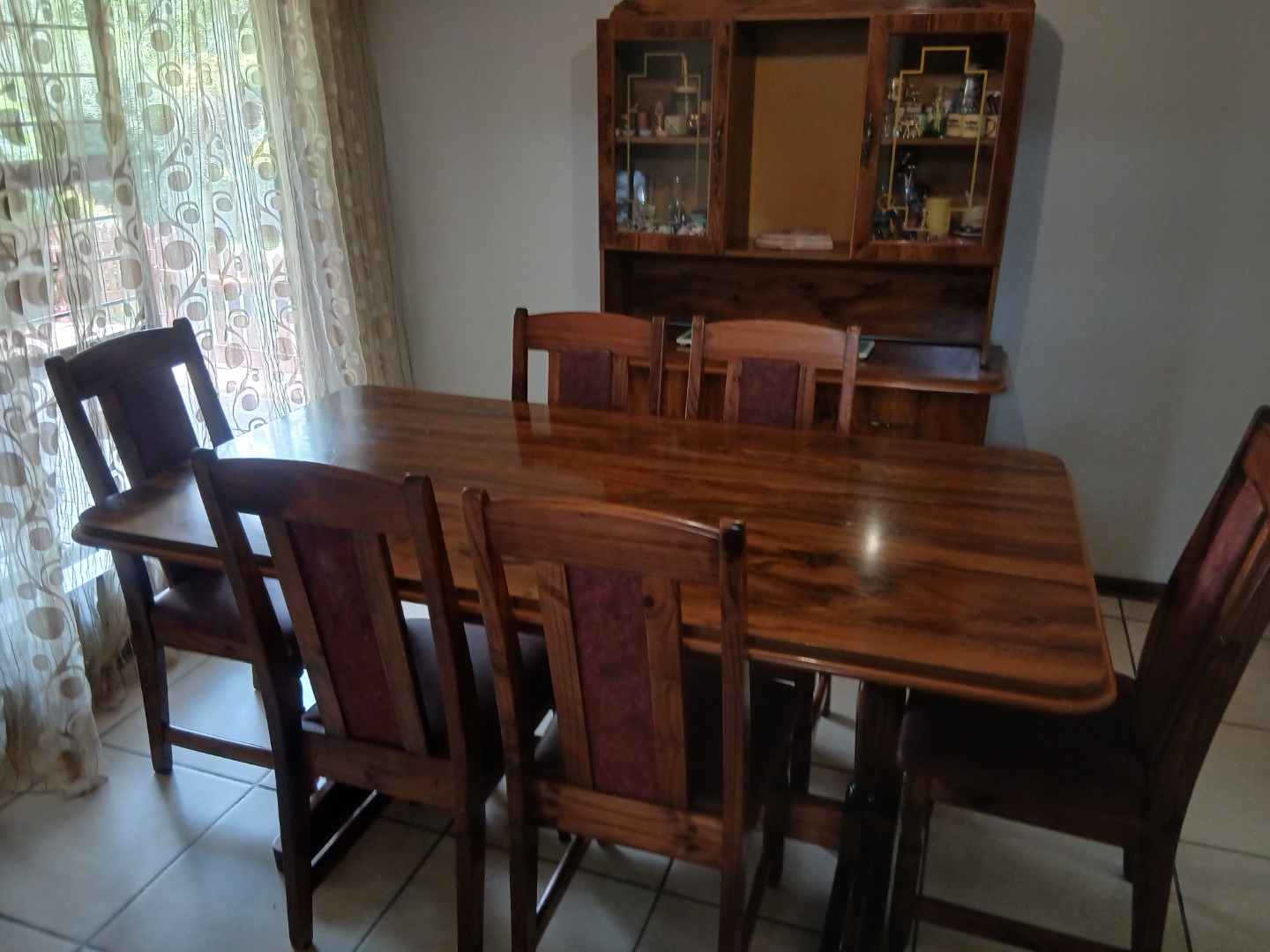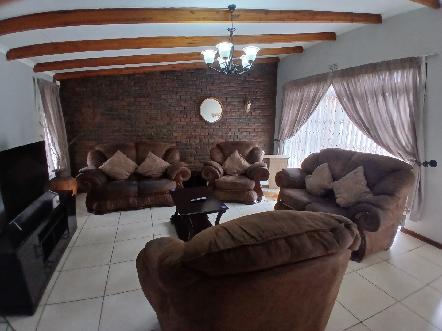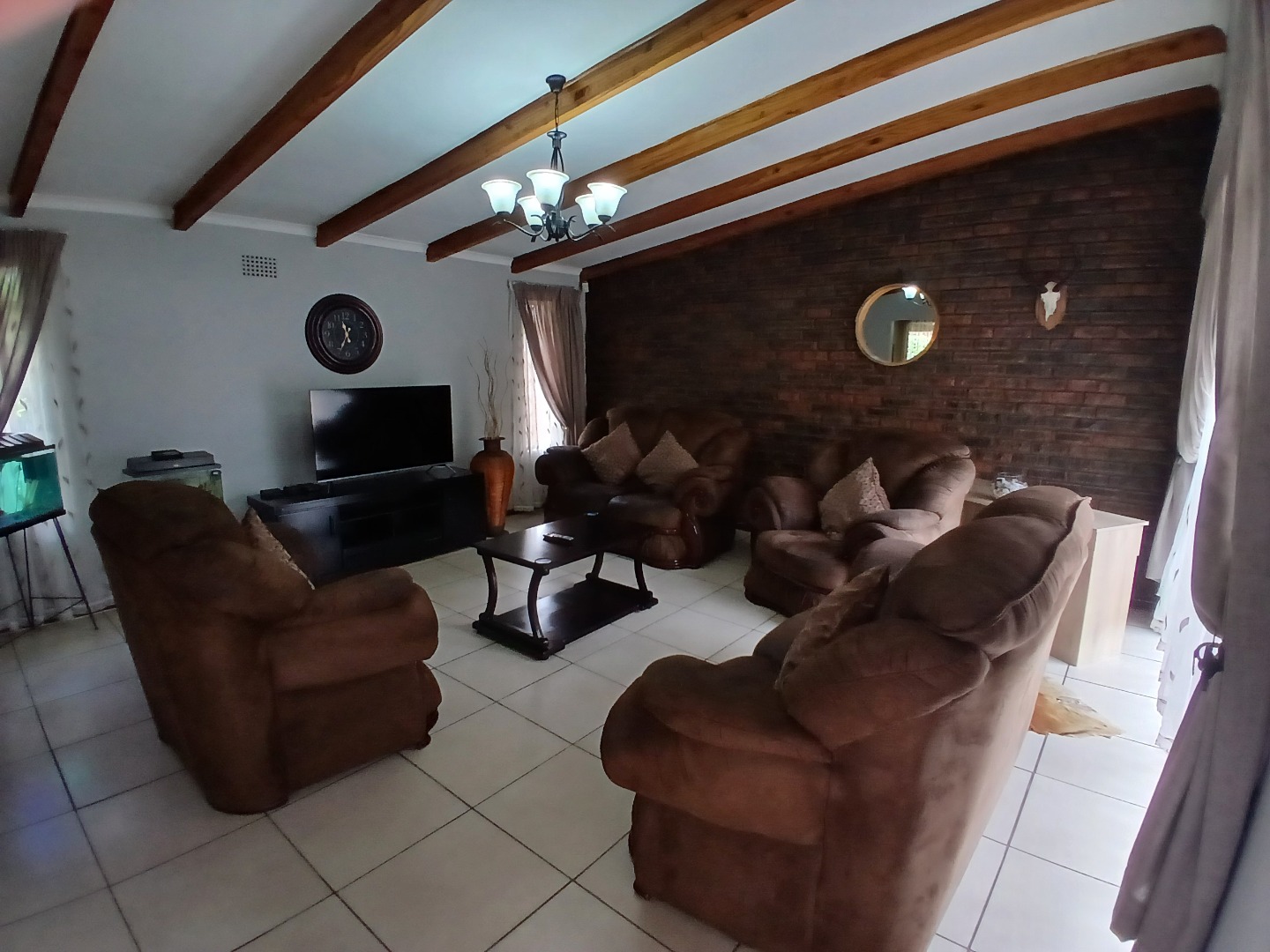 The home welcomes you with beautifully maintained grounds, featuring a sparkling swimming pool and an enclosed entertainment deck with a built-in braai, ideal for hosting family and friends.