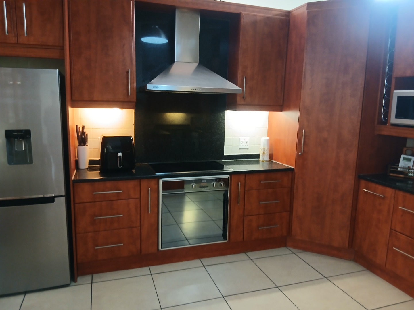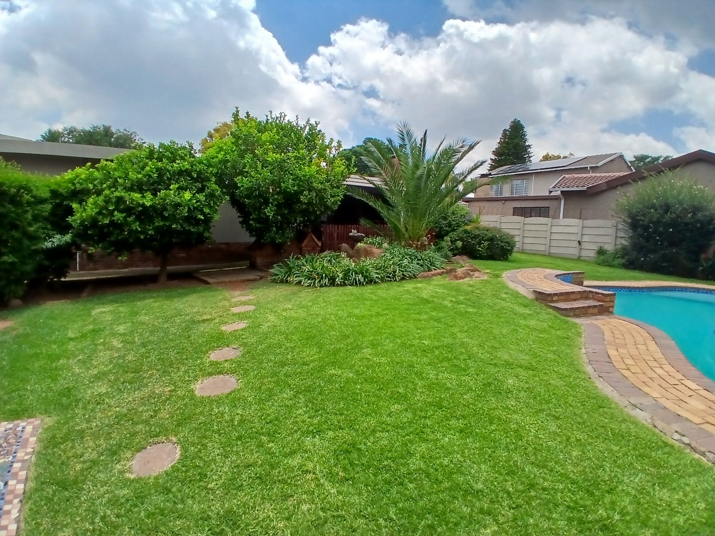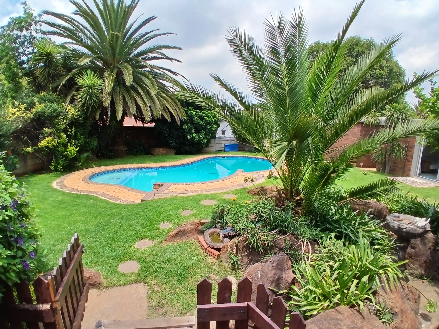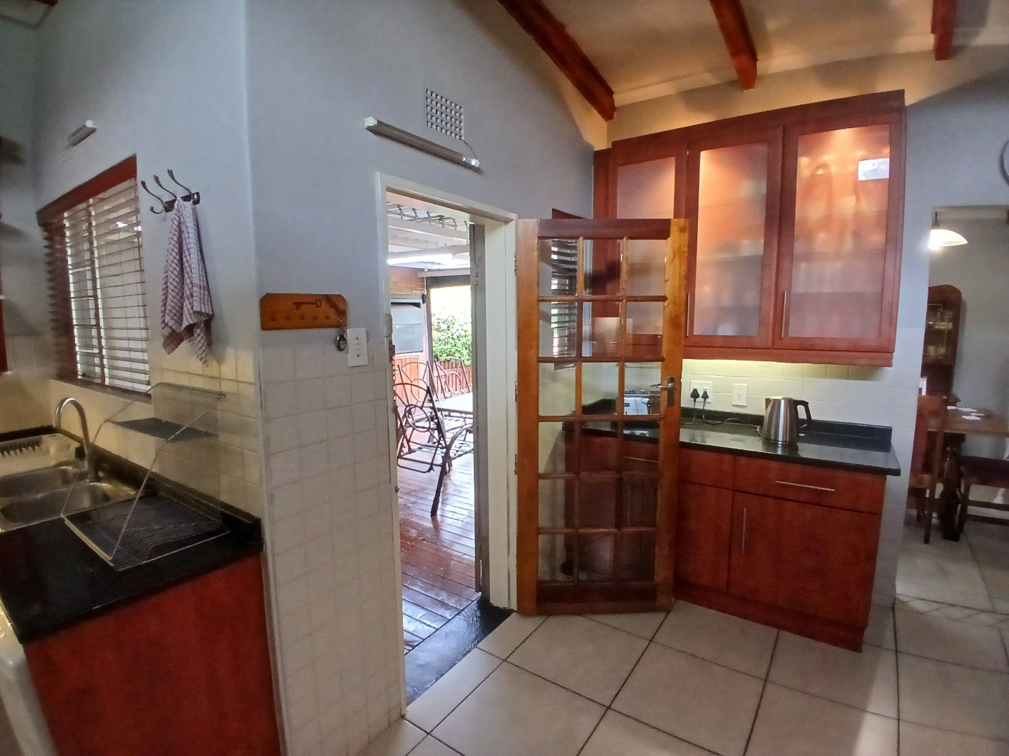 The home welcomes you with beautifully maintained grounds, featuring a sparkling swimming pool and an enclosed entertainment deck with a built-in braai, ideal for hosting family and friends.