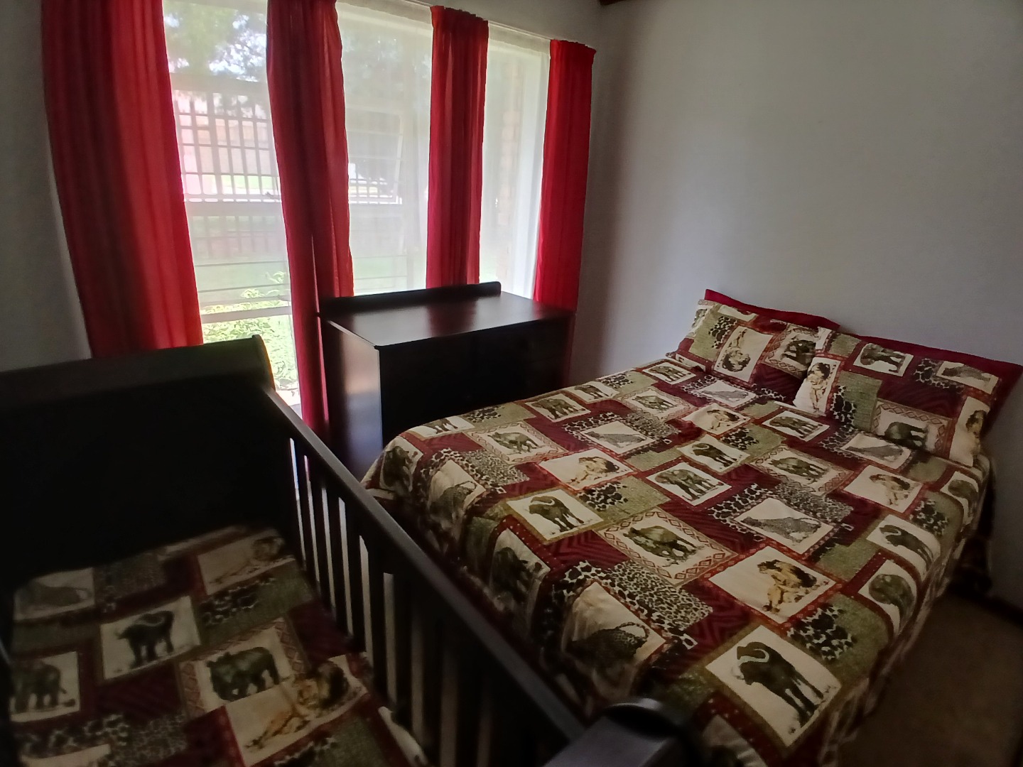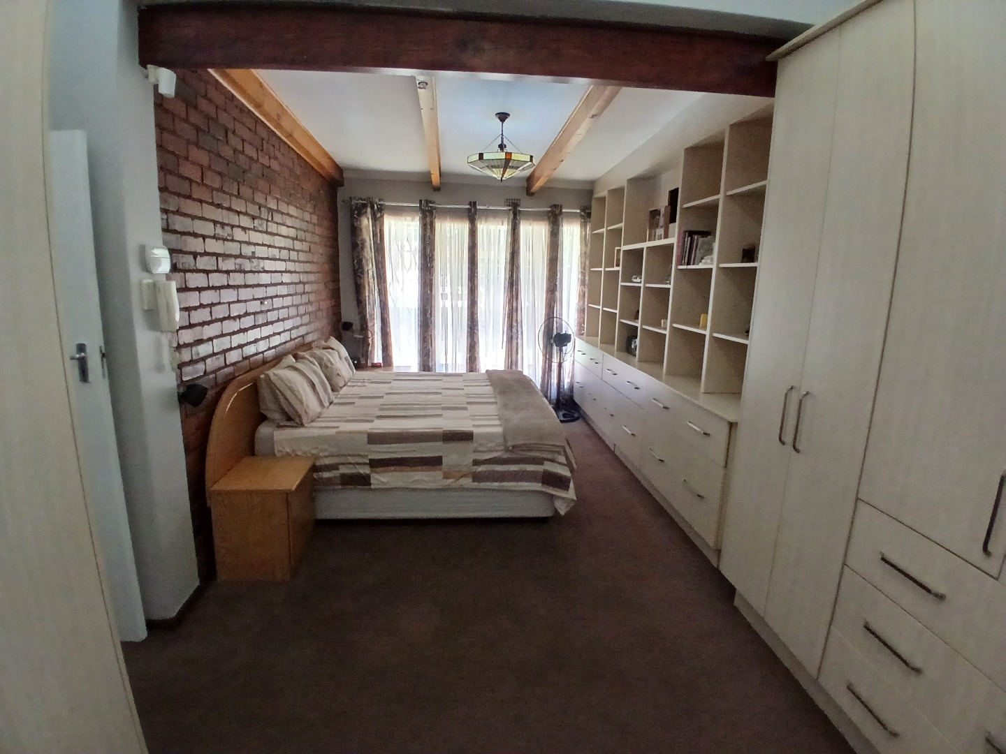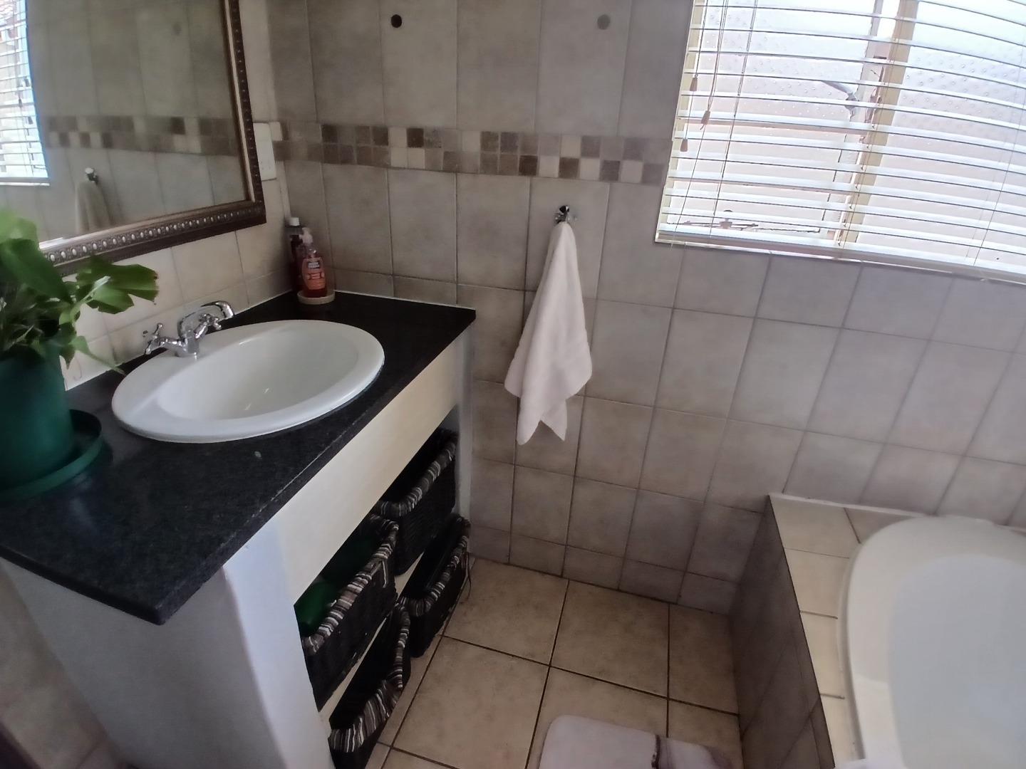 The main bedroom is generously sized with abundant built-in cupboards and a bright, full en-suite bathroom. Three additional bedrooms also feature built-in cupboards and are serviced by a modern bathroom fitted with a walk-in shower, basin, and toilet.
