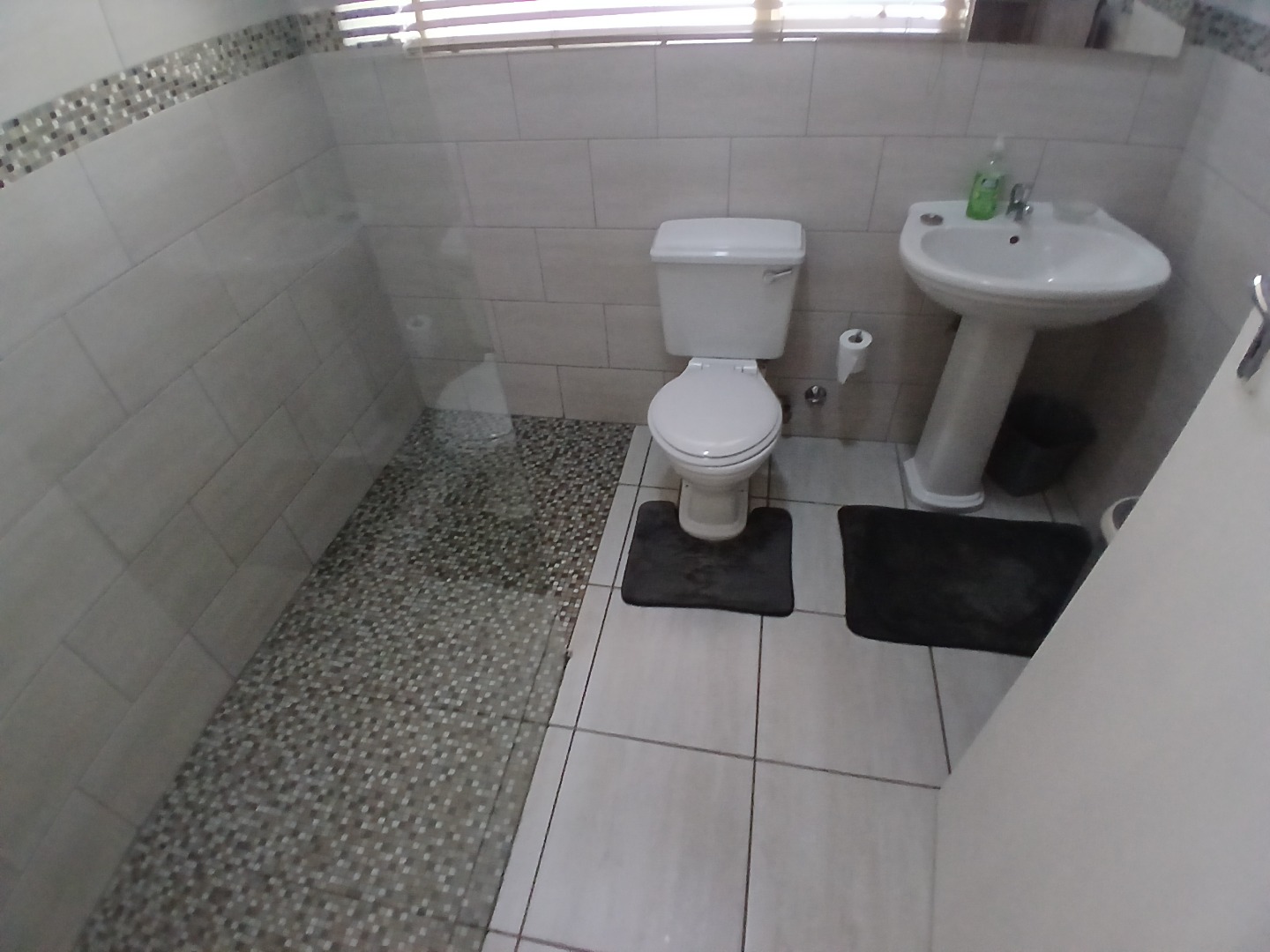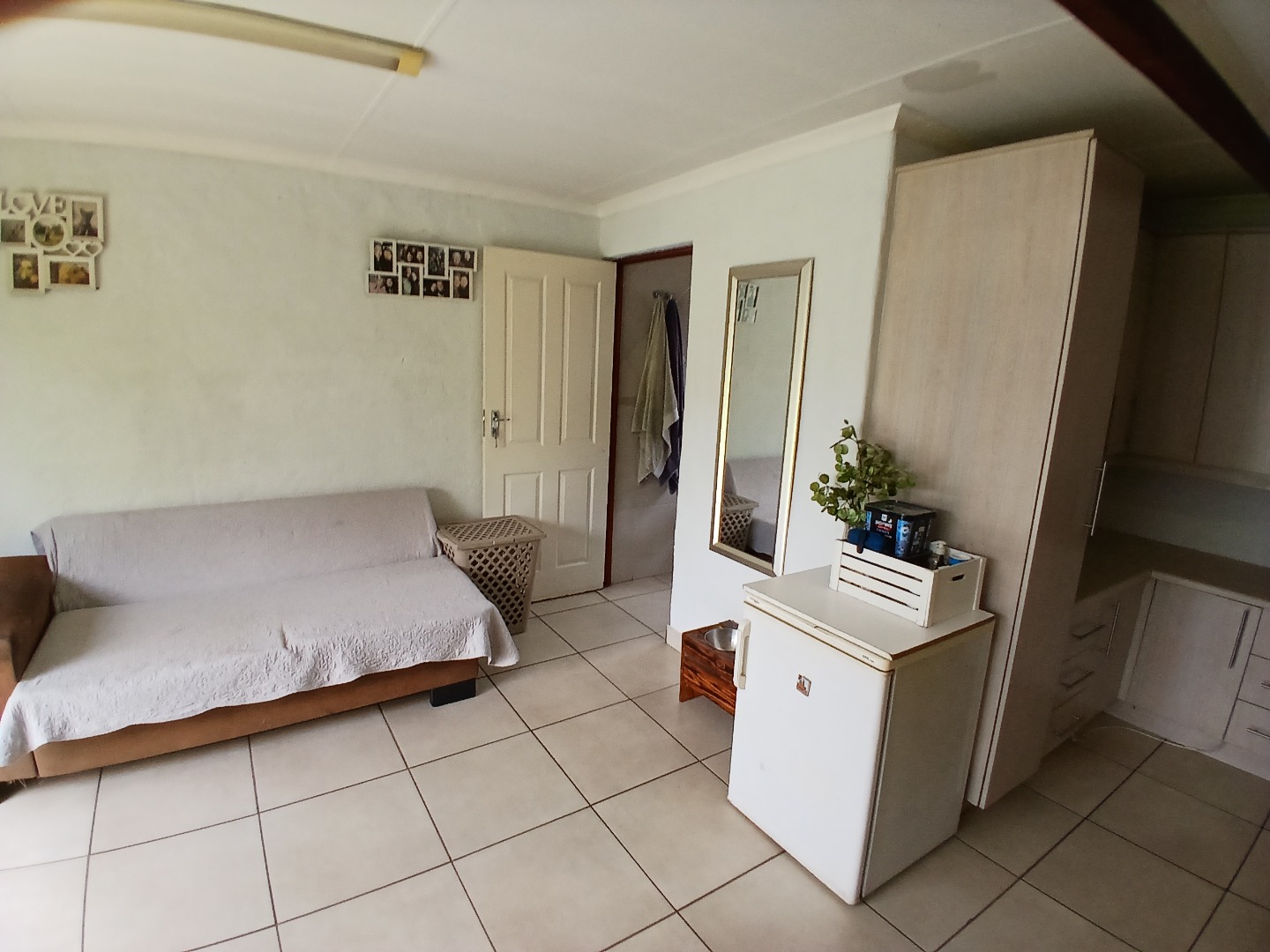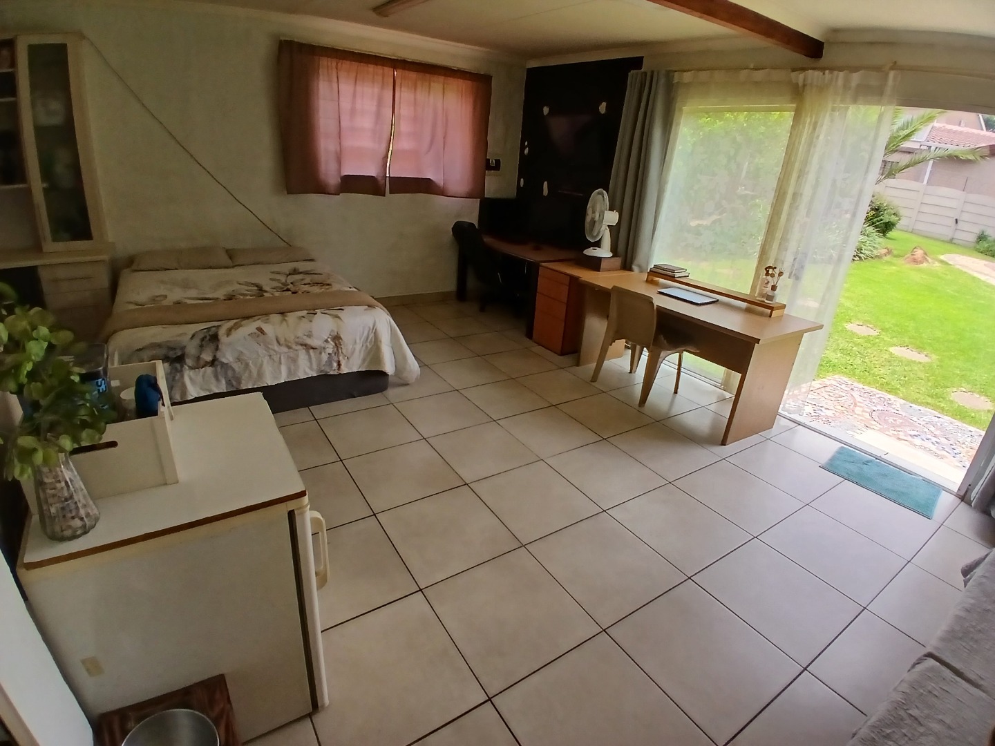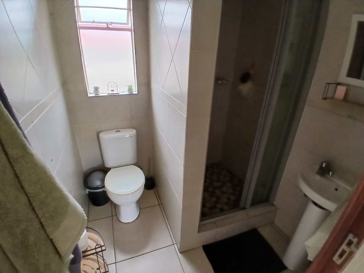 At the back of the property is a neat, tiled garden flat with an open-plan layout comprising a kitchen, lounge, and bedroom. The flat includes a bathroom with a shower, basin, and toilet—ideal for extended family, guests, or rental income.