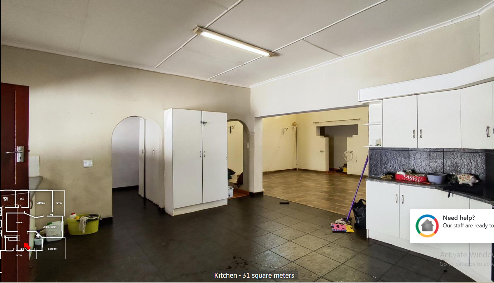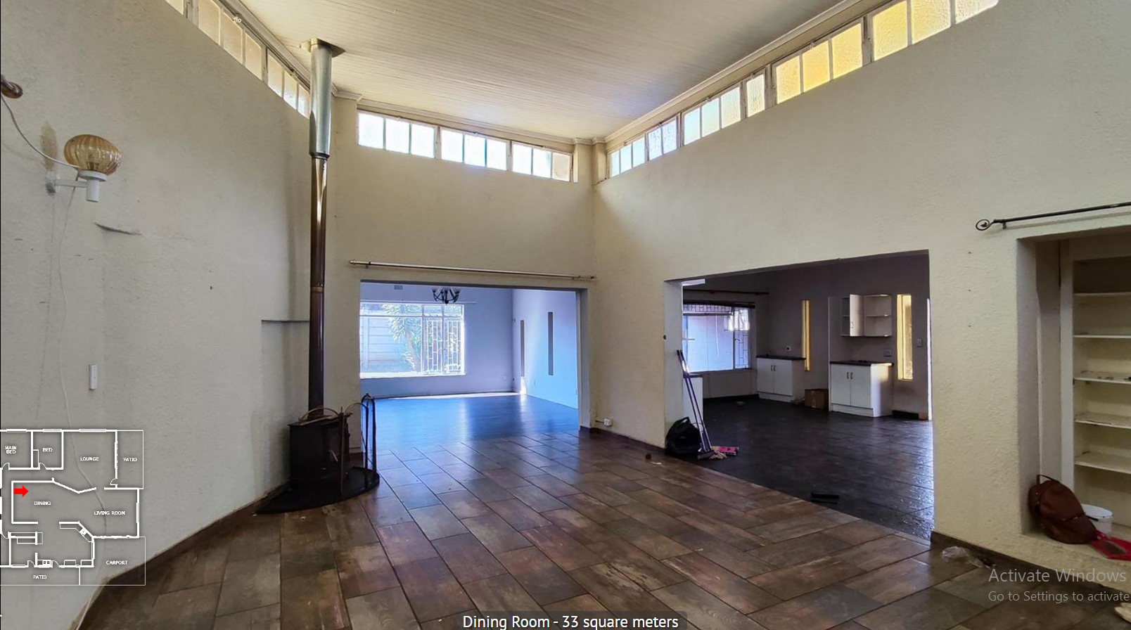 Open-plan living areas with tiled flooring