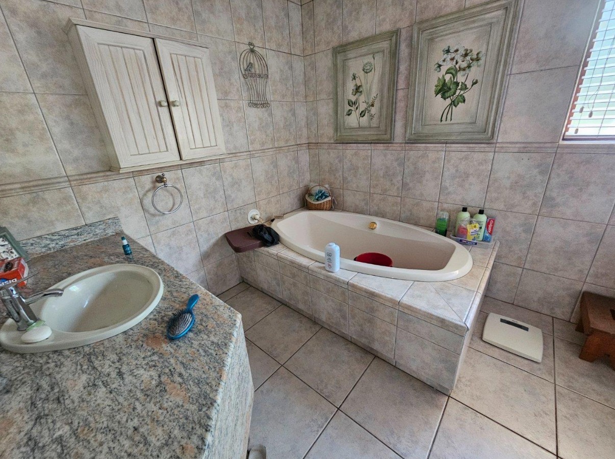 Discover this charming suburban residence located in the desirable area of Rynfield, Benoni. This property offers a harmonious blend of comfortable living and outdoor enjoyment, set on a generous 1965 sqm erf. The home presents a welcoming brick exterior with a grand, columned entrance, ensuring a strong first impression and excellent kerb appeal.