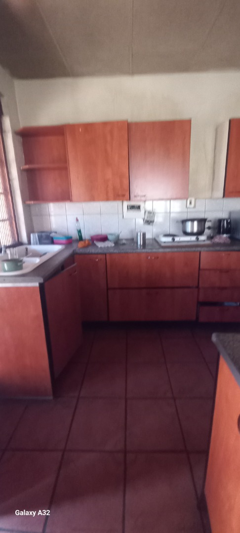 Discover this spacious family home located in the suburban heart of Boksburg South. The interior boasts a functional layout designed for comfortable living, featuring two distinct lounges and two dining rooms, providing ample space for relaxation and entertaining. The kitchen, a central hub, showcases a rustic charm with its natural wood cabinetry, exposed wooden ceiling beams, and terracotta-style tiled flooring. Equipped with a built-in oven and gas hob, alongside generous granite-look countertops and a practical L-shaped configuration, it offers significant storage and a warm, inviting atmosphere. The open-plan design seamlessly connects the kitchen to adjacent living areas, enhancing the flow of the home. Accommodation comprises four well-proportioned bedrooms, ensuring comfort and privacy for the entire family. These are complemented by three bathrooms, catering to the needs of a busy household. While offering a functional foundation, the home presents an excellent opportunity for personalization and modern updates to align with contemporary tastes. Set on a generous 600 sqm erf, the property provides a substantial outdoor footprint. Parking is abundant with two garages and an additional four open parking spaces, accommodating multiple vehicles with ease. A covered outdoor area offers a versatile utility space, ideal for various household needs or as a potential carport. Situated in the established suburban area of Boksburg South, this home offers convenient access to local amenities and transport routes. It represents a solid investment for families seeking a well-located property with significant potential. Key Features: * Four spacious bedrooms * Three functional bathrooms * Two comfortable lounges * Two dedicated dining rooms * Rustic-style kitchen with built-in oven and gas hob * Double garage and four additional parking spaces * Generous 600 sqm erf size * Located in a desirable suburban setting