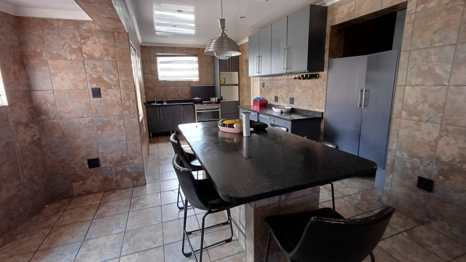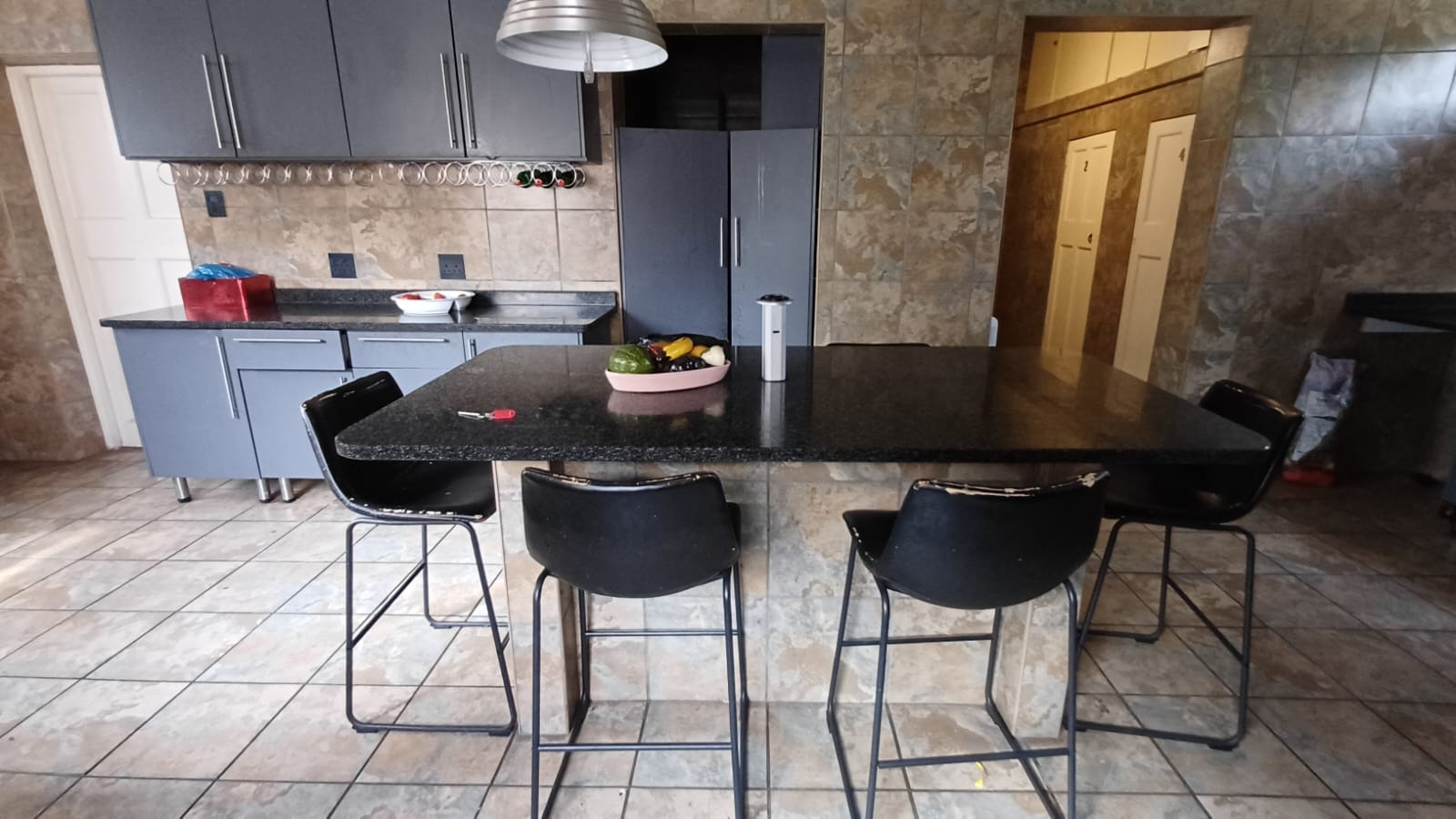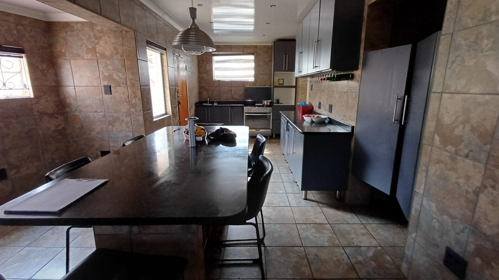 Discover this expansive property in Boksburg West, offering a substantial 1888 sqm erf. The main house presents an attractive stone facade and a welcoming covered porch, set amidst a large, well-maintained lawn and mature trees. A separate outbuilding provides versatile potential, ideal for a flatlet or additional utility space. The property boasts an impressive 20 parking spaces, including a paved driveway leading to a double garage, ensuring ample room for vehicles and guests. Step inside to a thoughtfully designed interior spanning 362 sqm. The residence features a welcoming entrance hall and a dedicated reception area, leading into a comfortable lounge complete with a cozy fireplace, perfect for relaxation. A distinct dining room provides an ideal setting for family meals and entertaining. Additionally, a family/TV room offers extra living space, catering to diverse household needs. The heart of this home is its well-appointed kitchen, showcasing modern dark grey cabinetry complemented by durable granite-look countertops. A large central island serves as both a breakfast bar and an extensive preparation area, featuring an integrated wine rack and built-in oven and hob. The space is fully tiled for practicality and includes a dedicated laundry area and additional storage, ensuring functionality for daily living. While some tiling presents a classic aesthetic, the overall design prioritizes utility and ample workspace. Accommodation comprises four generously sized bedrooms, providing comfortable private retreats for the entire family. The main bedroom benefits from a private en-suite bathroom, offering convenience and privacy. A second well-appointed bathroom serves the remaining bedrooms, and a guest toilet is available for visitors, enhancing the home's practical layout. Beyond the interiors, the property extends to a private patio, perfect for outdoor enjoyment and entertaining. The expansive garden, secured by a fence, offers a safe and pleasant environment for outdoor activities and is pet-friendly. The presence of outside toilets adds to the convenience for garden gatherings. Security is well-addressed with an alarm system, burglar bars, and security gates, providing peace of mind. A gas geyser contributes to energy efficiency. Located in the established suburban area of Boksburg West, this metropolitan property offers a scenic view and convenient access to local amenities and transport routes, making it an ideal family residence. Key Features: * 4 Bedrooms, 2 Bathrooms (1 En-suite) * Spacious 1888 sqm Erf with Large Garden * Modern Kitchen with Granite-look Countertops & Island * Lounge with Fireplace, Dining Room & Family/TV Room * Double Garage & 20 Parking Spaces * Separate Outbuilding (Potential Flatlet) * Patio, Laundry, and Storage Facilities * Alarm System, Burglar Bars & Security Gates * Gas Geyser & Pet-Friendly Environment