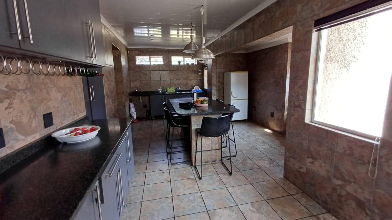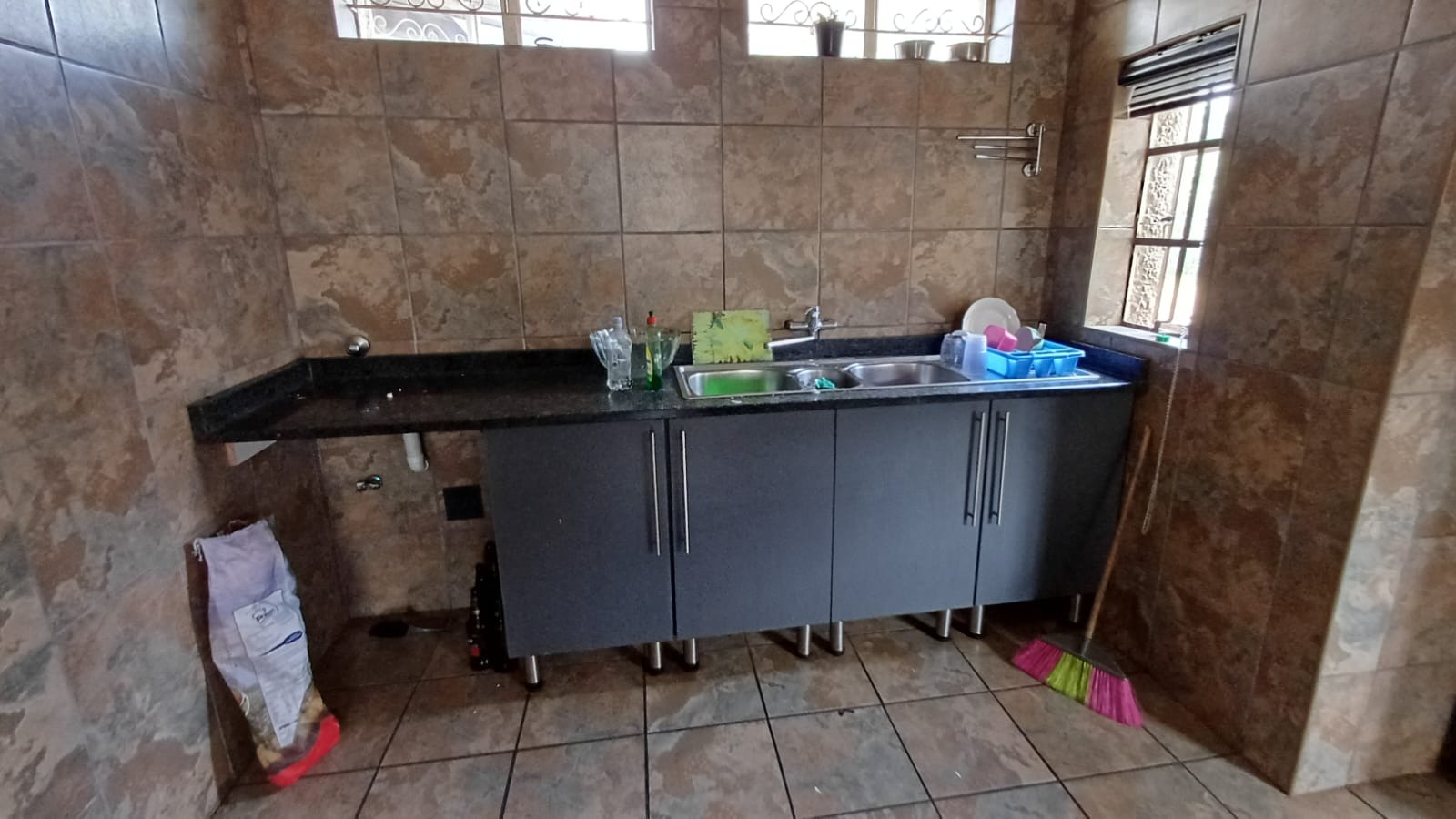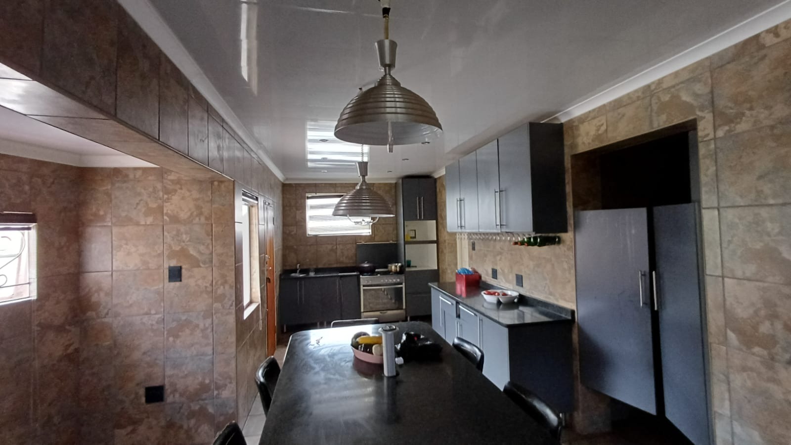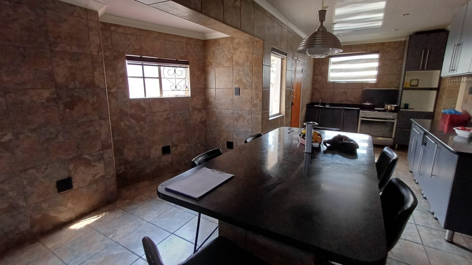 Discover this expansive property in Boksburg West, offering a substantial 1888 sqm erf. The main house presents an attractive stone facade and a welcoming covered porch, set amidst a large, well-maintained lawn and mature trees. A separate outbuilding provides versatile potential, ideal for a flatlet or additional utility space. The property boasts an impressive 20 parking spaces, including a paved driveway leading to a double garage, ensuring ample room for vehicles and guests. Step inside to a thoughtfully designed interior spanning 362 sqm. The residence features a welcoming entrance hall and a dedicated reception area, leading into a comfortable lounge complete with a cozy fireplace, perfect for relaxation. A distinct dining room provides an ideal setting for family meals and entertaining. Additionally, a family/TV room offers extra living space, catering to diverse household needs. The heart of this home is its well-appointed kitchen, showcasing modern dark grey cabinetry complemented by durable granite-look countertops. A large central island serves as both a breakfast bar and an extensive preparation area, featuring an integrated wine rack and built-in oven and hob. The space is fully tiled for practicality and includes a dedicated laundry area and additional storage, ensuring functionality for daily living. While some tiling presents a classic aesthetic, the overall design prioritizes utility and ample workspace. Accommodation comprises four generously sized bedrooms, providing comfortable private retreats for the entire family. The main bedroom benefits from a private en-suite bathroom, offering convenience and privacy. A second well-appointed bathroom serves the remaining bedrooms, and a guest toilet is available for visitors, enhancing the home's practical layout. Beyond the interiors, the property extends to a private patio, perfect for outdoor enjoyment and entertaining. The expansive garden, secured by a fence, offers a safe and pleasant environment for outdoor activities and is pet-friendly. The presence of outside toilets adds to the convenience for garden gatherings. Security is well-addressed with an alarm system, burglar bars, and security gates, providing peace of mind. A gas geyser contributes to energy efficiency. Located in the established suburban area of Boksburg West, this metropolitan property offers a scenic view and convenient access to local amenities and transport routes, making it an ideal family residence. Key Features: * 4 Bedrooms, 2 Bathrooms (1 En-suite) * Spacious 1888 sqm Erf with Large Garden * Modern Kitchen with Granite-look Countertops & Island * Lounge with Fireplace, Dining Room & Family/TV Room * Double Garage & 20 Parking Spaces * Separate Outbuilding (Potential Flatlet) * Patio, Laundry, and Storage Facilities * Alarm System, Burglar Bars & Security Gates * Gas Geyser & Pet-Friendly Environment