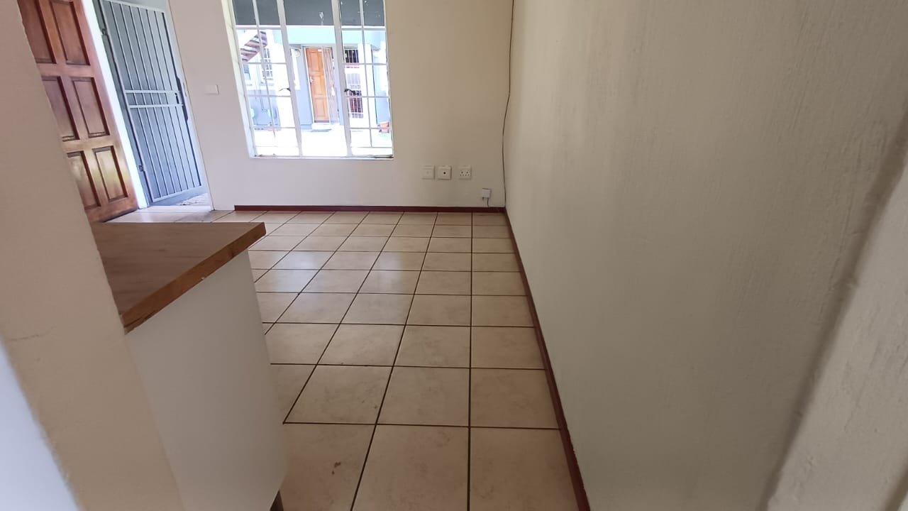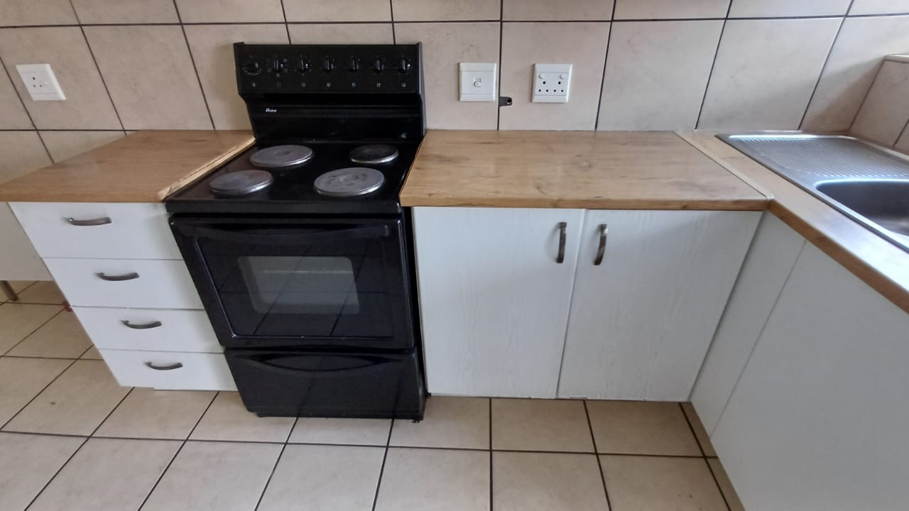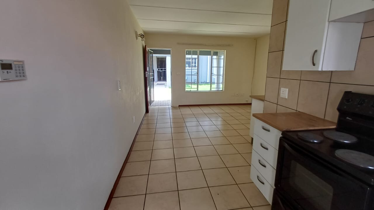 Discover secure and convenient living in this well-appointed 1-bedroom unit, ideally situated within a security complex in Comet, Boksburg. This compact 41 sqm residence offers an open-plan layout, seamlessly connecting the lounge to a functional kitchen. The kitchen features tiled flooring, white base cabinets, a freestanding electric stove, and ample countertop space, with direct access to a private paved outdoor area. No Bond Costs and Transfer Fees!
