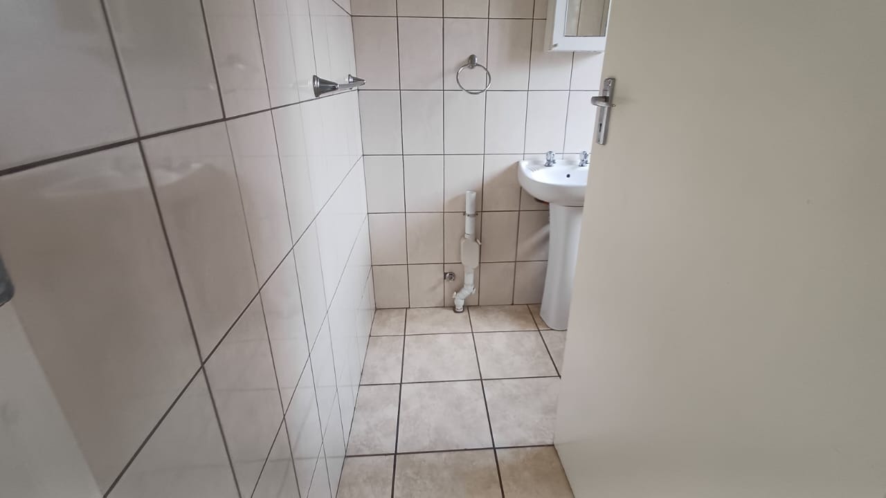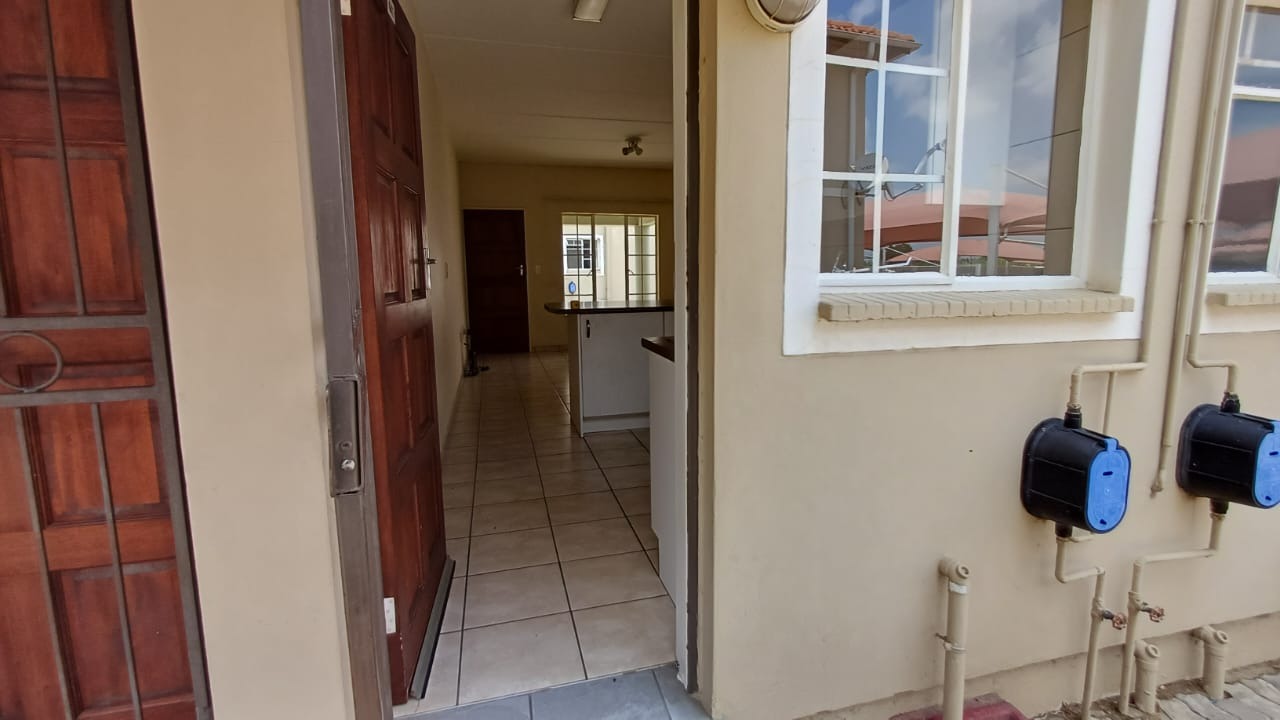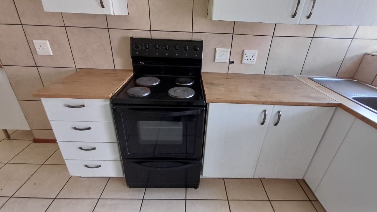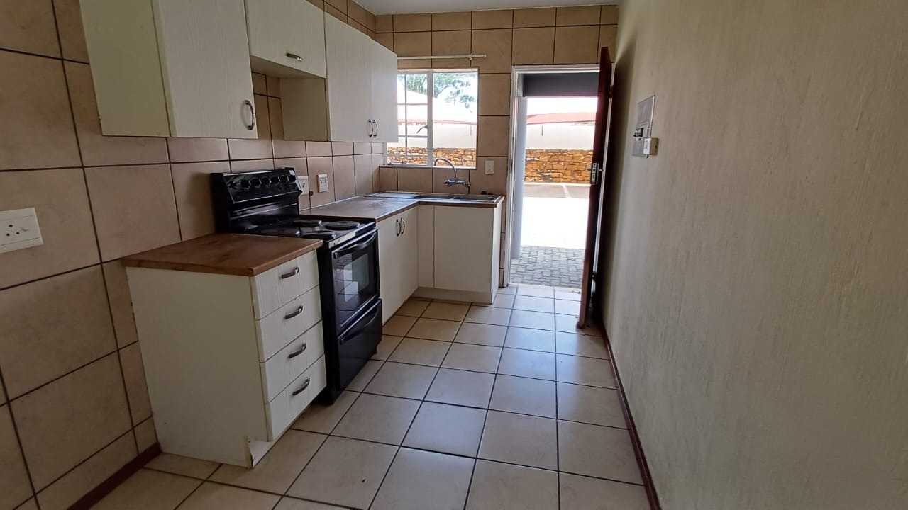 Discover secure and convenient living in this well-appointed 1-bedroom unit, ideally situated within a security complex in Comet, Boksburg. This compact 41 sqm residence offers an open-plan layout, seamlessly connecting the lounge to a functional kitchen. The kitchen features tiled flooring, white base cabinets, a freestanding electric stove, and ample countertop space, with direct access to a private paved outdoor area. No Bond Costs and Transfer Fees!