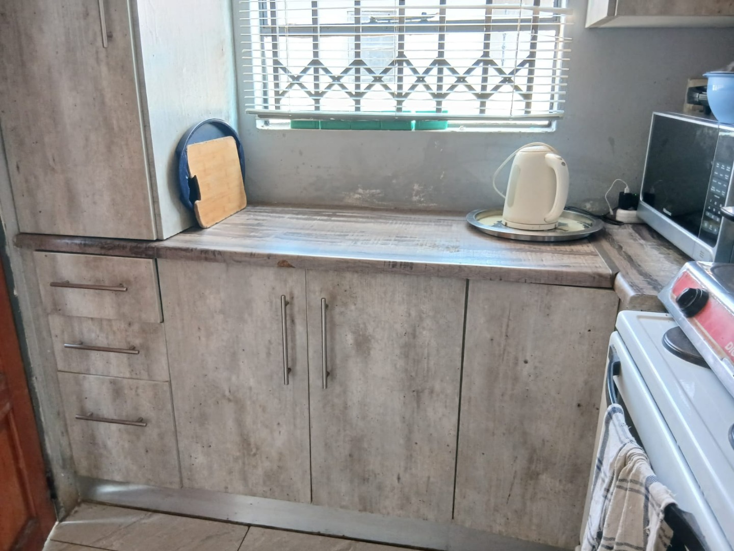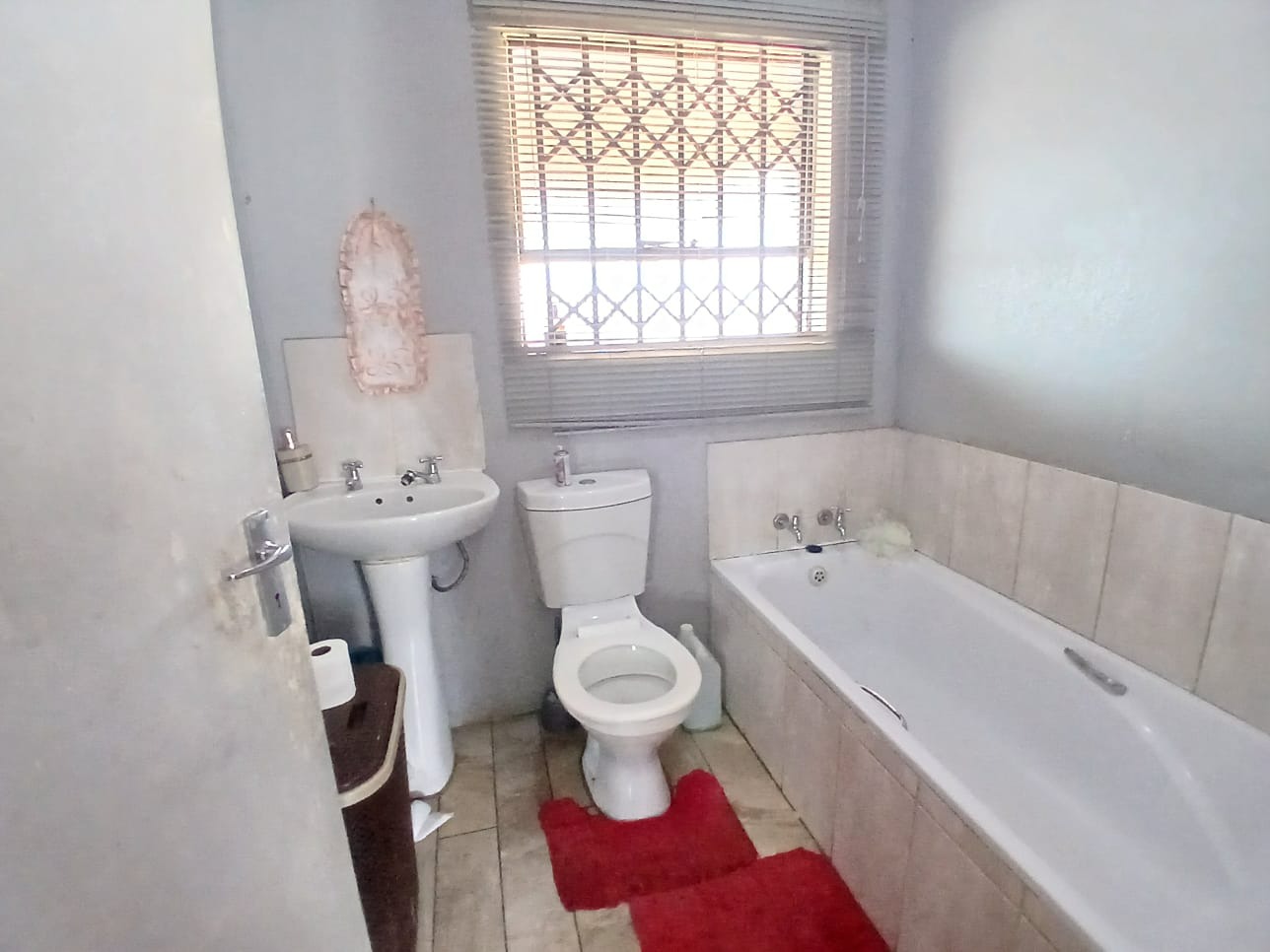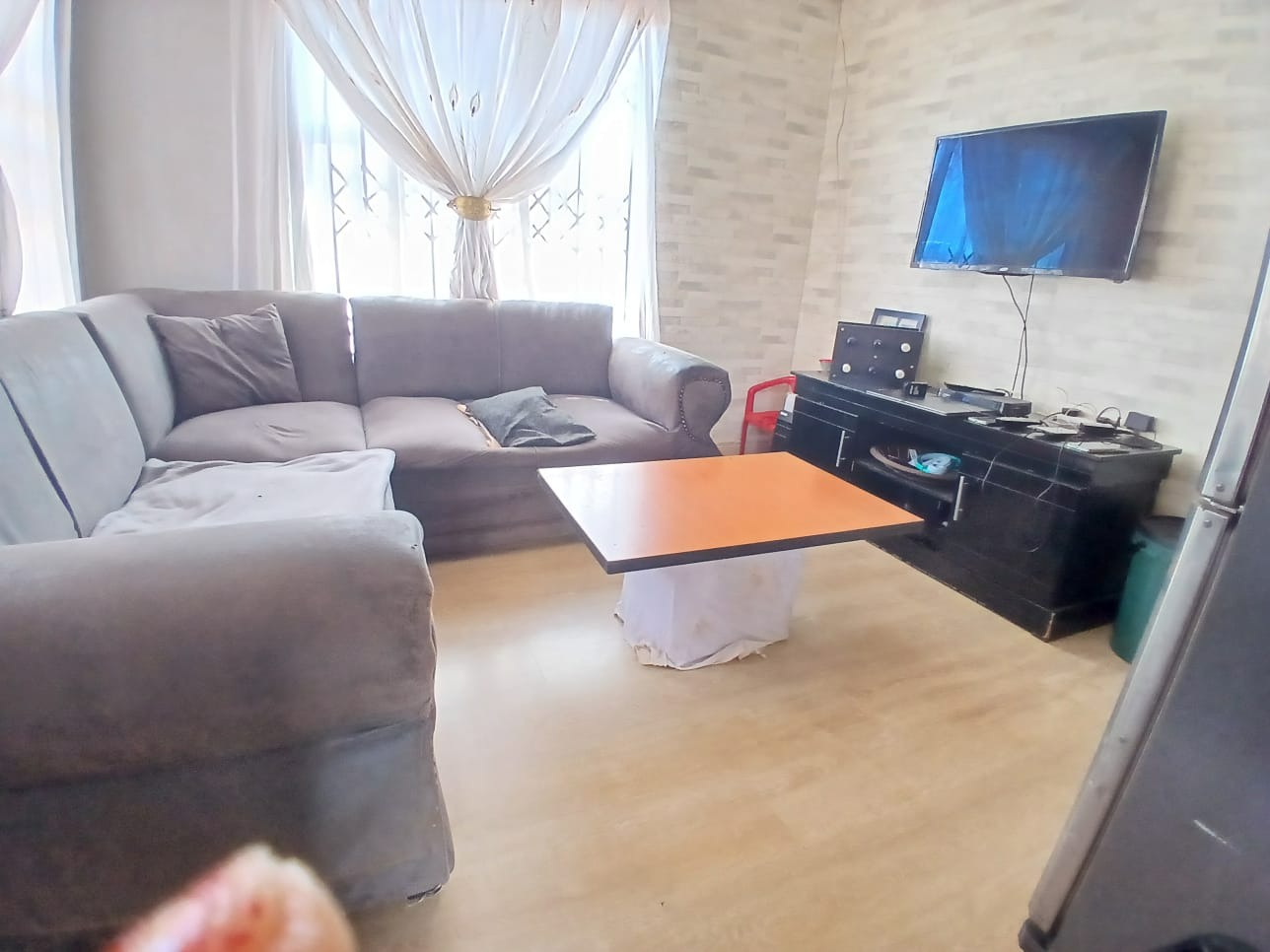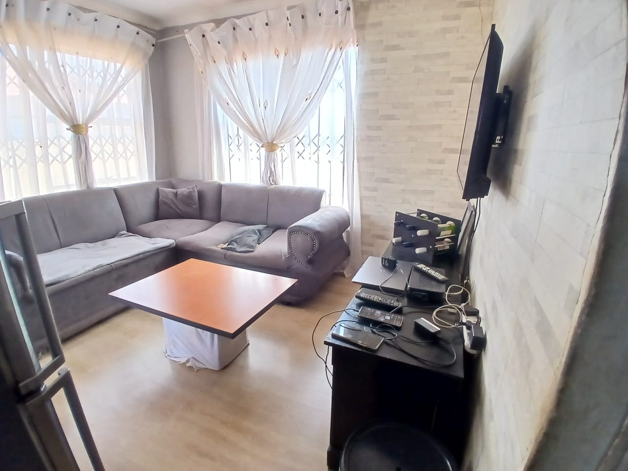 Discover this inviting two-bedroom home situated within a secure gated community in Dawn Park, Boksburg, South Africa. The property immediately presents a welcoming kerb appeal with a paved driveway and a secure gated entrance, leading to a generous 375 sqm erf that offers ample space for future landscaping and outdoor enjoyment. Security bars on all visible windows provide an enhanced sense of safety and peace of mind. Step inside to a bright and functional interior, featuring an open-plan lounge area that boasts modern wood-look laminate flooring and a distinctive brick-patterned accent wall, creating a warm and inviting atmosphere. Natural light floods the space through multiple windows, ensuring a cheerful living environment. The well-equipped kitchen provides practical counter and cabinet storage, ready for your personal touch and culinary endeavours. This residence offers two comfortable bedrooms, each designed as a private retreat and secured with window bars. A single, well-appointed bathroom serves these living spaces, ensuring convenience for residents and guests alike. Beyond the interiors, the expansive outdoor area presents a versatile canvas for gardening enthusiasts or those desiring space for recreation and expansion. A separate outbuilding, ideal for staff quarters, adds valuable functionality and flexibility to the property. Practical amenities include two dedicated parking spaces, complementing the secure access gate and robust perimeter fencing with barbed wire. Key Features: * 2 Bedrooms, 1 Bathroom * 1 Lounge, 1 Kitchen * 375 sqm Erf Size * Gated Community * 2 Parking Spaces * Staff Quarters * Paved Outdoor Areas * Security Bars on Windows * Perimeter Fencing * Open-Plan Living Area