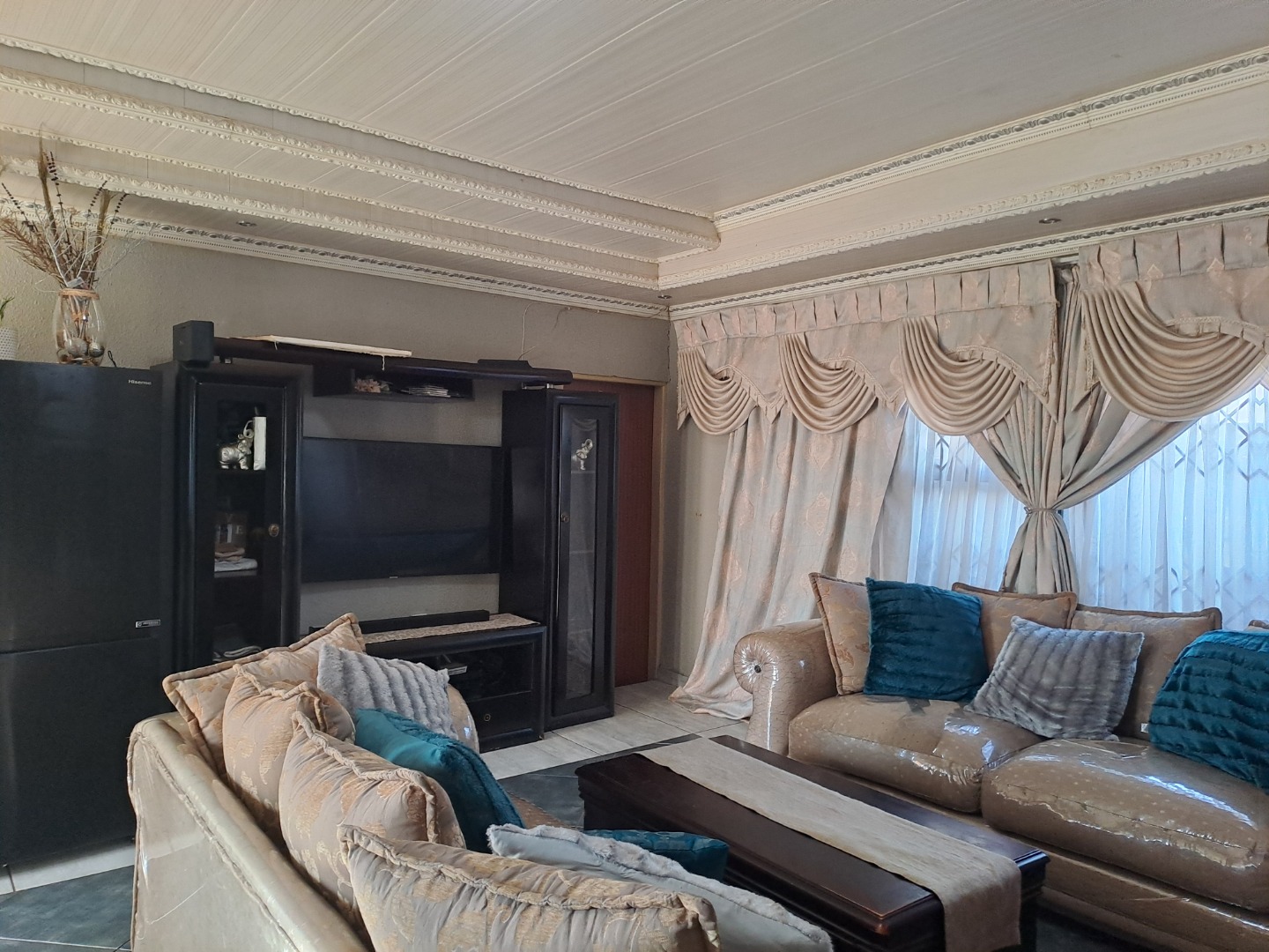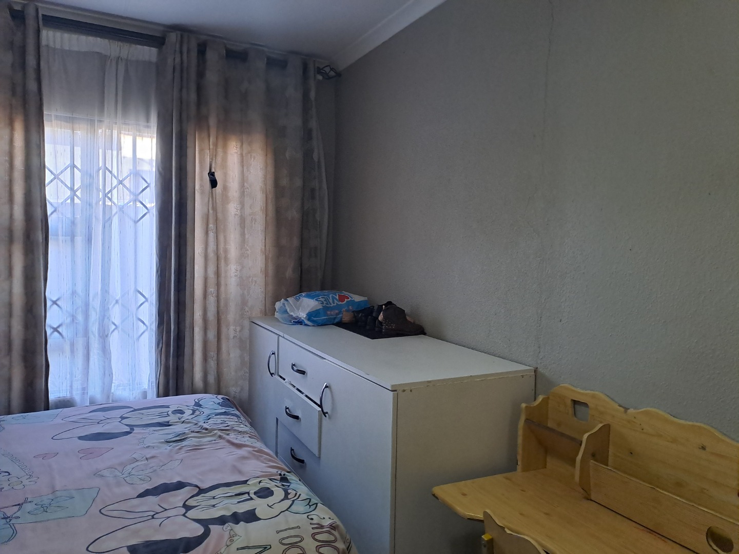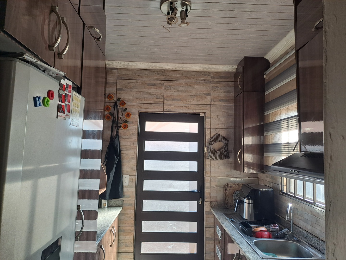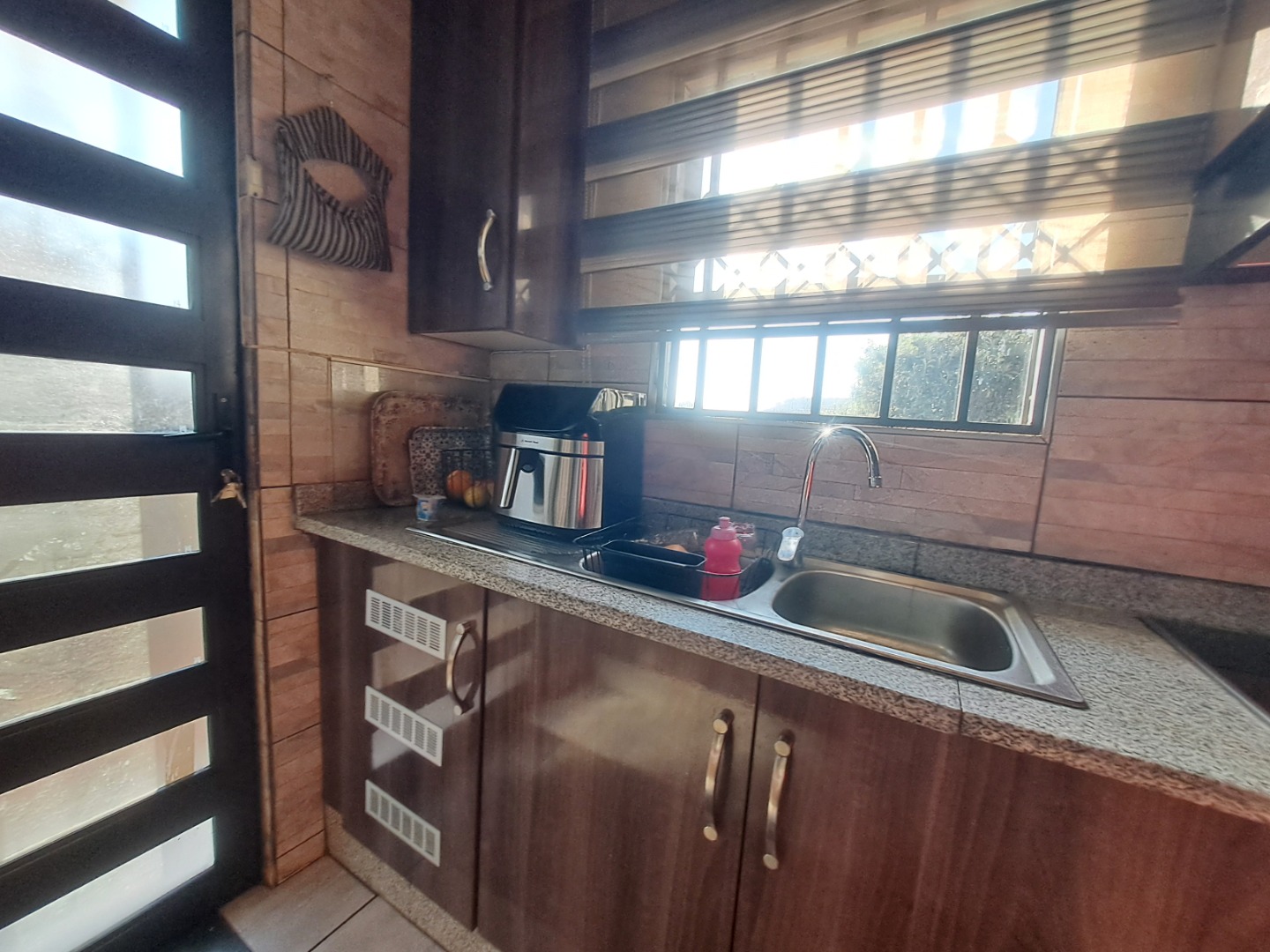 Outside, the home is paved is all-round with a bit of grass at the back of the house. From the lounge you can acces the double garage with an automated door. The home, windows are all aluminum even the kitchen door, also it has an aluminum awning. There's also extra parking space in the yard. This home safety features include burglar bars on the windows and a high barrier wall for security and safety.