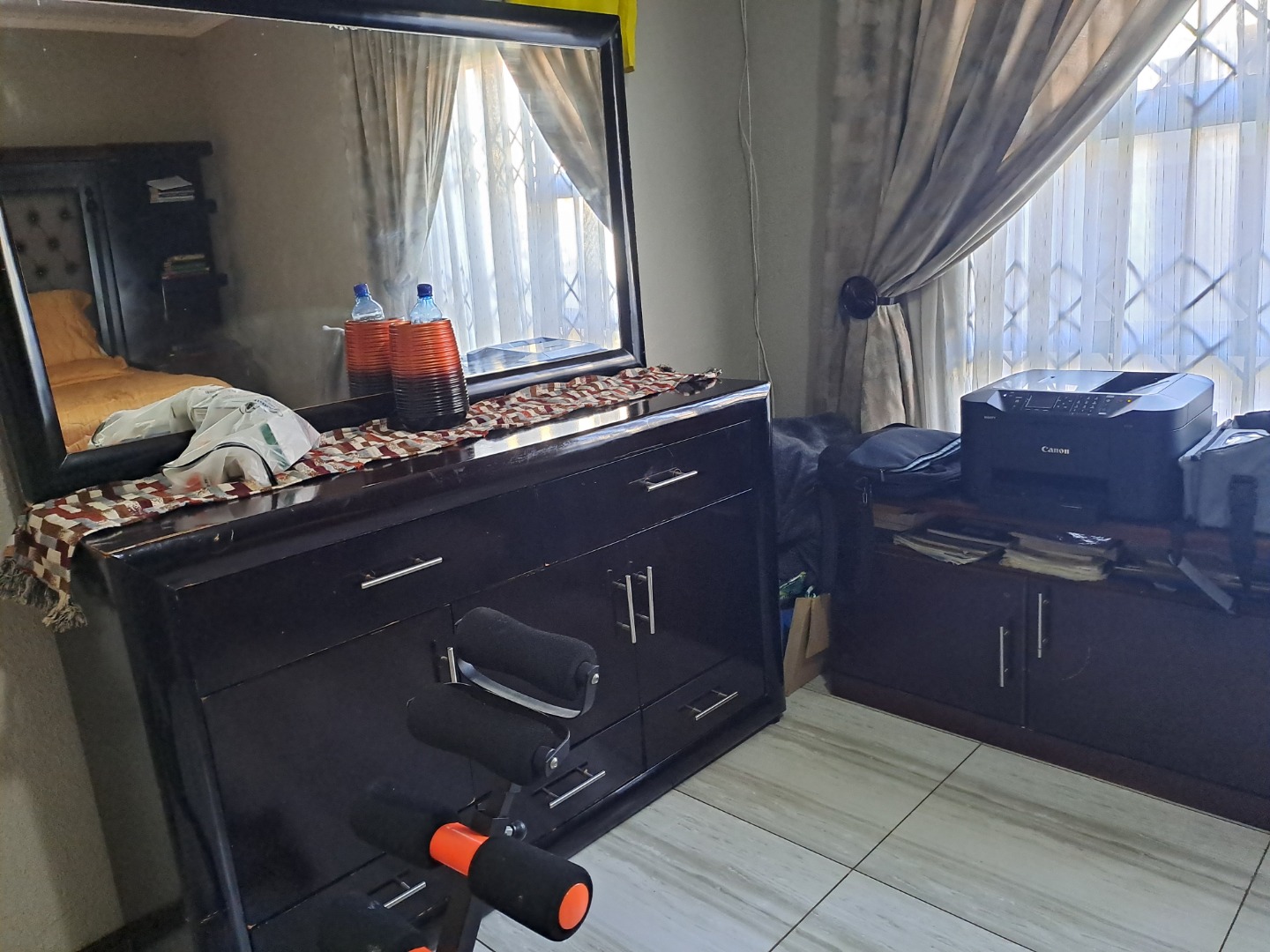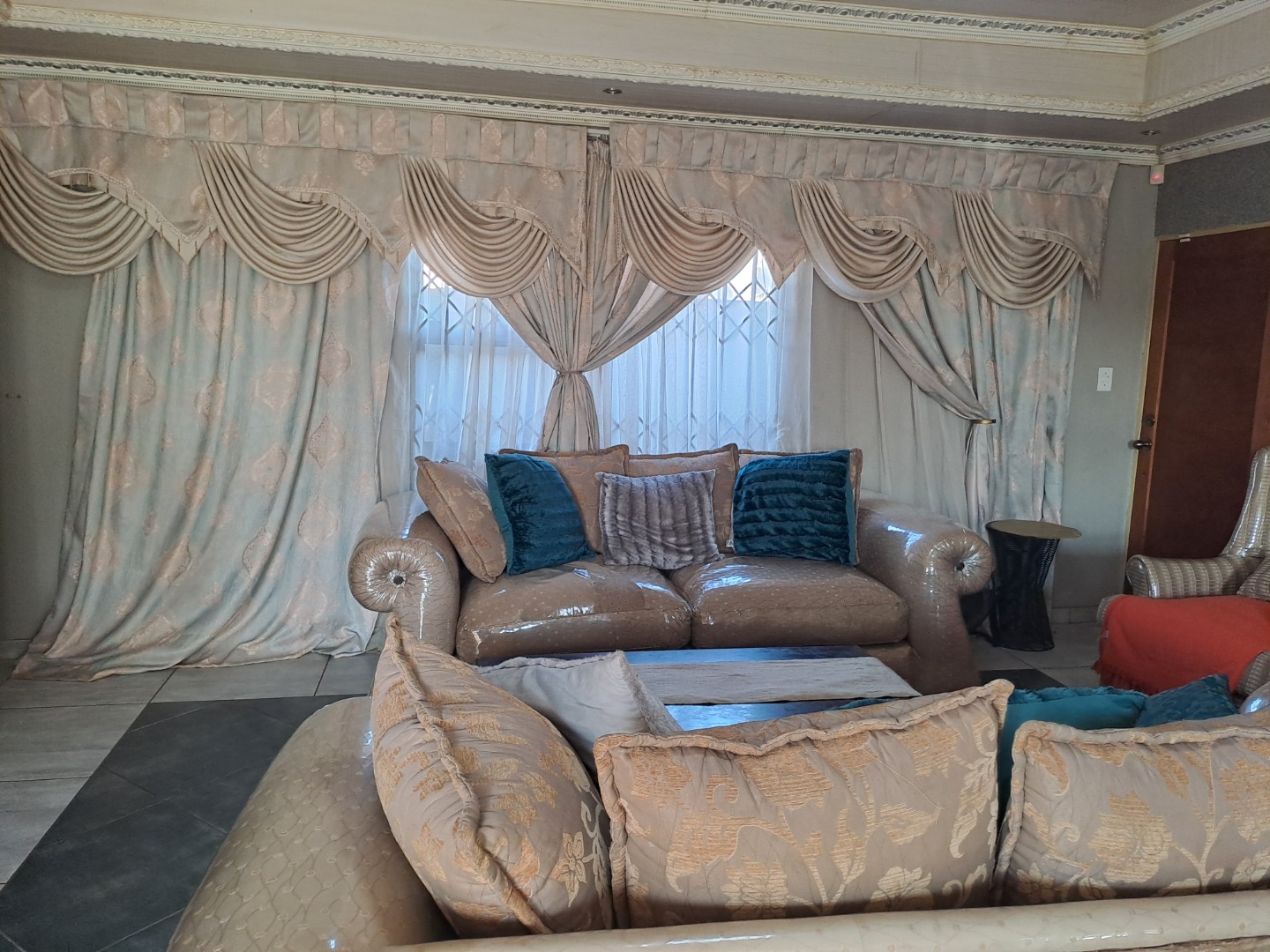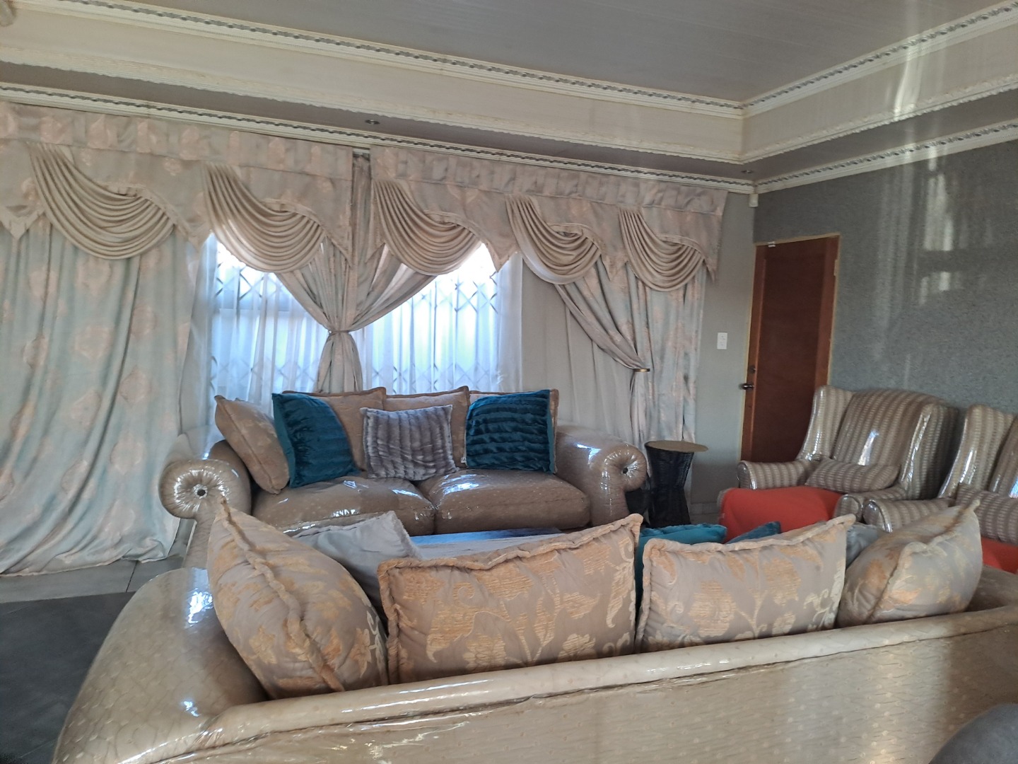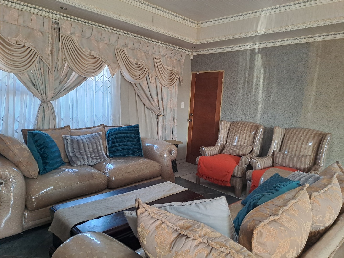 Outside, the home is paved is all-round with a bit of grass at the back of the house. From the lounge you can acces the double garage with an automated door. The home, windows are all aluminum even the kitchen door, also it has an aluminum awning. There's also extra parking space in the yard. This home safety features include burglar bars on the windows and a high barrier wall for security and safety.