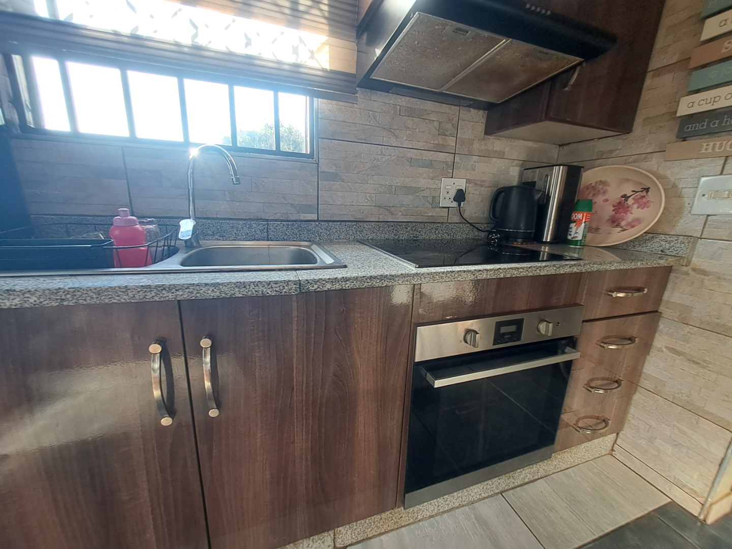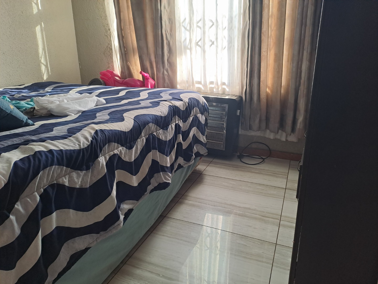This home boasts three spacious bedrooms and tiled floors. The main bedroom has a modern onsuite half bathroom with a bath, basin and toilet and a walk in closet. The other modern bathroom which is shared by the two bedrooms , bath, basin and toilet. The home enjoys a newly fitted kitchen with an electric stove with a hob. The open lounge and dining area is well sized to entertain guests. The design and finishes to this home calls for a move in, plus itbisnfibre ready. Unpack and enjoy your new home.