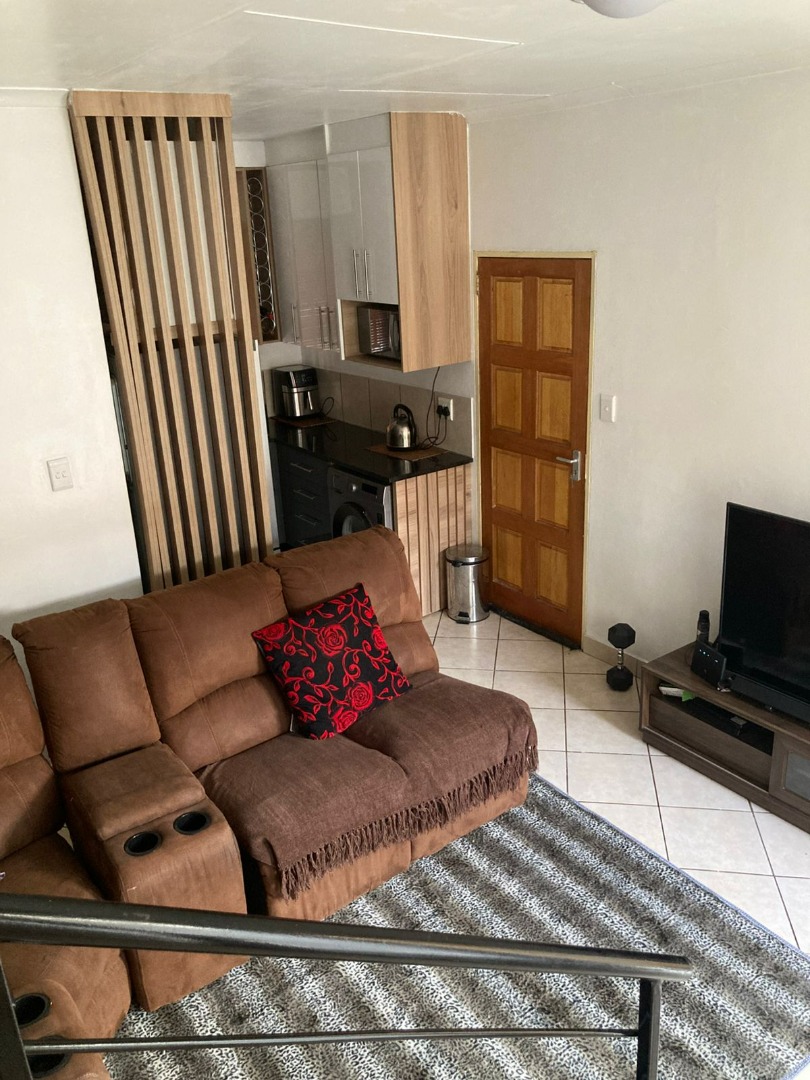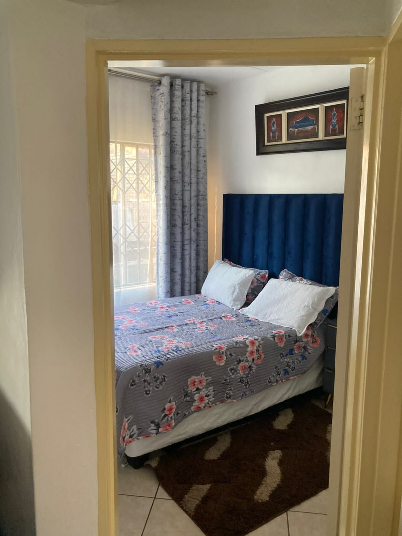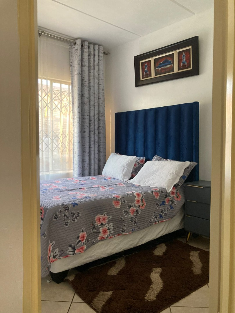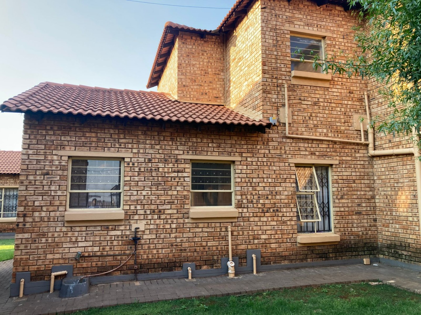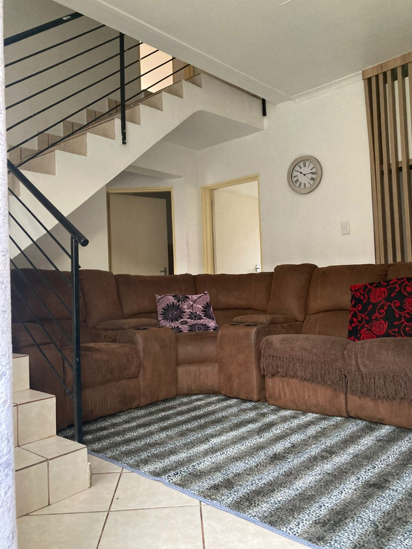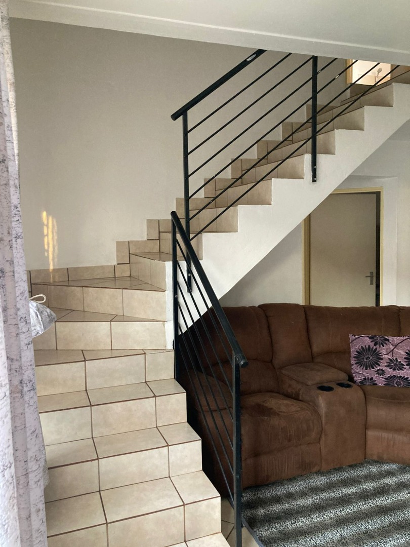 Discover this inviting residential property located within a secure estate in Dawn Park, Boksburg. This two-story home, constructed with durable reddish-brown brick and a tiled roof, offers a practical and comfortable living environment. The exterior features security bars on windows and a security gate, complemented by a paved outdoor area and a garden, ensuring both safety and low maintenance. A notable sustainability feature is the rooftop solar geyser, contributing to energy efficiency. Step inside to an open-plan living area, characterized by light tiled floors and neutral walls, creating a bright and adaptable space. The lounge area is spacious, accommodating comfortable seating, and seamlessly connects to the modern kitchen. The kitchen boasts contemporary grey and light wood-effect cabinetry, an integrated washing machine, and is subtly separated from the living space by a stylish wooden slatted divider. A modern open-riser staircase with sleek black metal railings serves as a central design element, leading to the upper level. The residence comprises three well-proportioned bedrooms and two bathrooms, including one en-suite, providing ample accommodation for a family. The property offers two dedicated parking spaces, enhancing convenience for residents. Situated in Dawn Park, Boksburg, this home benefits from its estate location, providing an added layer of security and community. This property presents a balanced blend of functional design, security, and modern amenities, ideal for those seeking a well-maintained home in a desirable area. Key Features: * Three Bedrooms * Two Bathrooms (one en-suite) * One Lounge * One Kitchen * Two Parking Spaces * Open-Plan Living Area * Tiled Flooring Throughout * Modern Staircase * Solar Geyser * Security Gate & Window Bars * Garden & Paved Outdoor Area * Estate Living