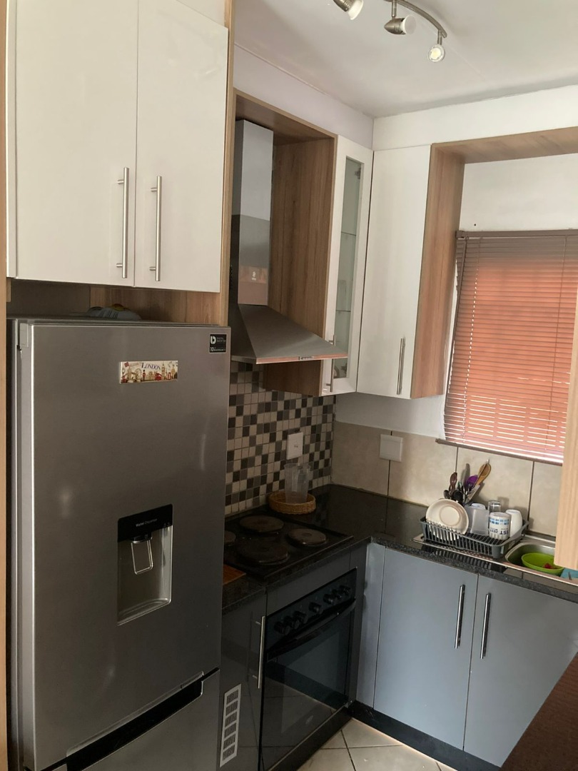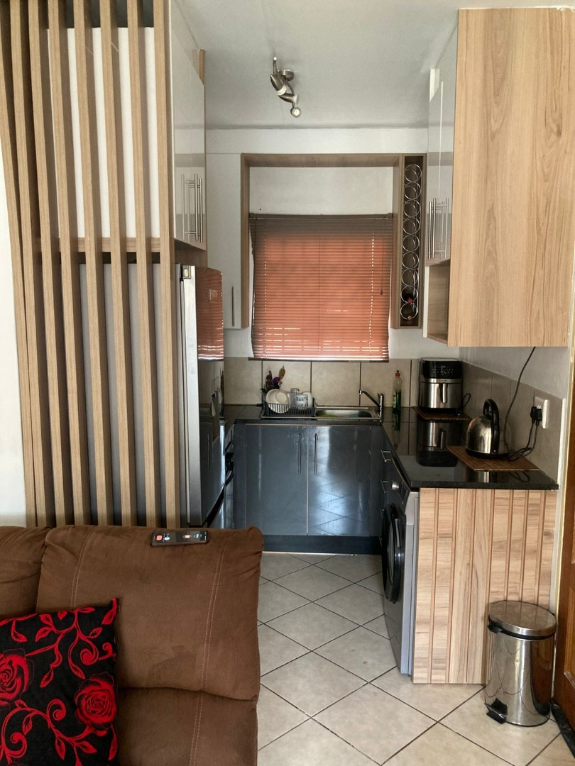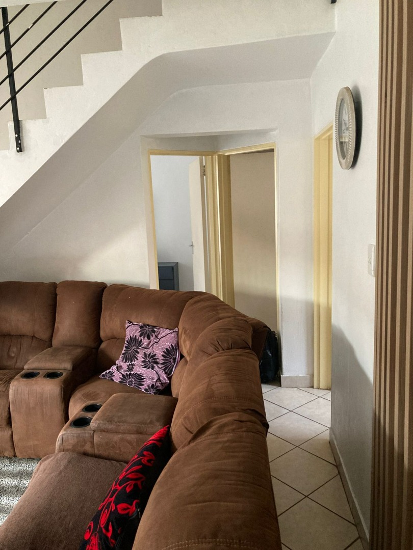 Discover this inviting residential property located within a secure estate in Dawn Park, Boksburg. This two-story home, constructed with durable reddish-brown brick and a tiled roof, offers a practical and comfortable living environment. The exterior features security bars on windows and a security gate, complemented by a paved outdoor area and a garden, ensuring both safety and low maintenance. A notable sustainability feature is the rooftop solar geyser, contributing to energy efficiency. Step inside to an open-plan living area, characterized by light tiled floors and neutral walls, creating a bright and adaptable space. The lounge area is spacious, accommodating comfortable seating, and seamlessly connects to the modern kitchen. The kitchen boasts contemporary grey and light wood-effect cabinetry, an integrated washing machine, and is subtly separated from the living space by a stylish wooden slatted divider. A modern open-riser staircase with sleek black metal railings serves as a central design element, leading to the upper level. The residence comprises three well-proportioned bedrooms and two bathrooms, including one en-suite, providing ample accommodation for a family. The property offers two dedicated parking spaces, enhancing convenience for residents. Situated in Dawn Park, Boksburg, this home benefits from its estate location, providing an added layer of security and community. This property presents a balanced blend of functional design, security, and modern amenities, ideal for those seeking a well-maintained home in a desirable area. Key Features: * Three Bedrooms * Two Bathrooms (one en-suite) * One Lounge * One Kitchen * Two Parking Spaces * Open-Plan Living Area * Tiled Flooring Throughout * Modern Staircase * Solar Geyser * Security Gate & Window Bars * Garden & Paved Outdoor Area * Estate Living