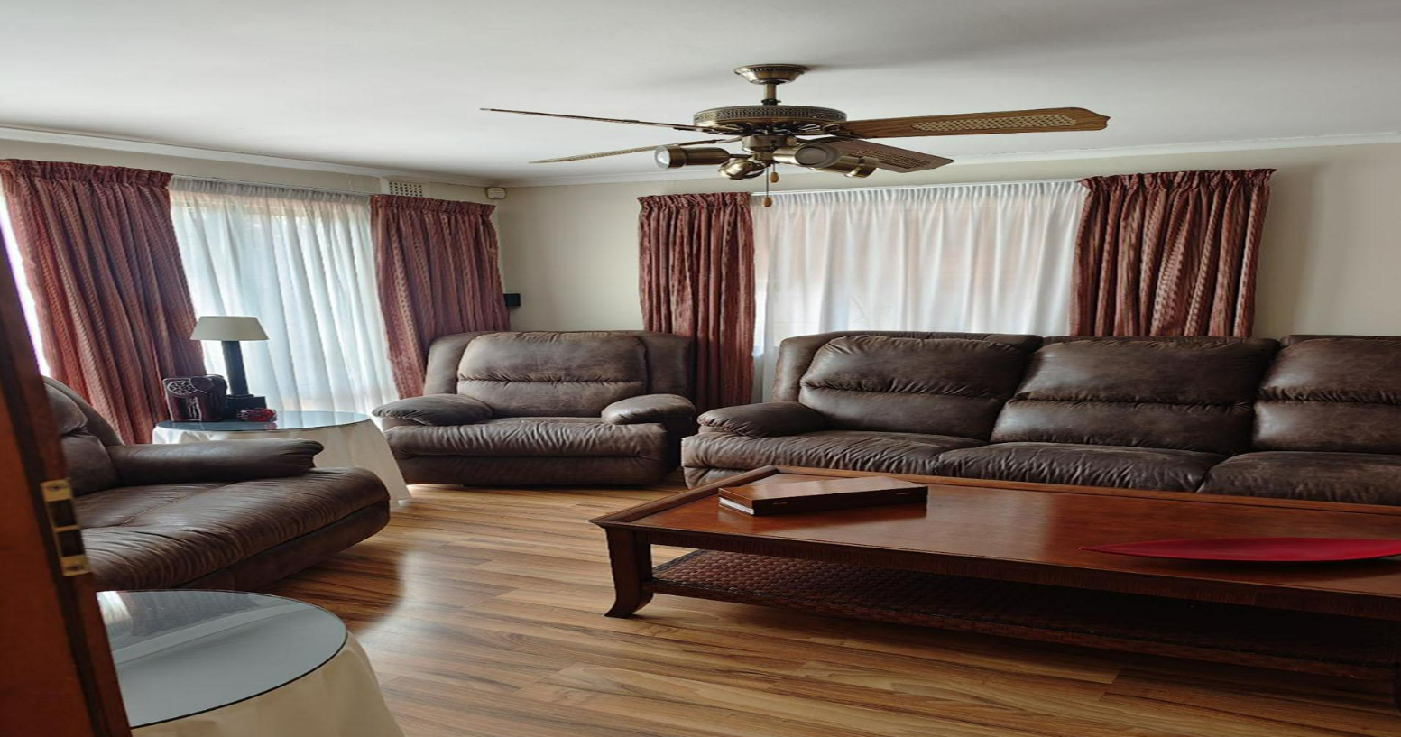 Nestled in the established suburb of Klippoortjie, Boksburg, this residential property offers a comfortable family lifestyle in a convenient South African location. The home presents a welcoming kerb appeal with its light brown stucco exterior, terracotta tiled roof, and a well-maintained lawn complemented by mature landscaping, including a prominent palm tree and a paved driveway leading to a two-car garage. Spanning 188.00 sqm on a generous 1098.00 sqm erf, the interior features a practical layout designed for everyday living. The residence includes one spacious lounge and a dedicated dining room, providing ample space for relaxation and entertaining. Natural light floods the living areas through large windows, enhancing the bright and airy atmosphere. The property boasts a functional kitchen, ready to cater to family needs. Accommodation comprises three comfortable bedrooms and two bathrooms, with one being an en-suite, ensuring privacy and convenience for residents. The living spaces showcase a mix of flooring, including traditional tiles and hardwood-style laminate, offering durability and a classic aesthetic. An enclosed patio extends the living area, providing a versatile space for year-round enjoyment. Outdoor living is a highlight, featuring a private swimming pool surrounded by brick paving, perfect for warm Boksburg days. A thatched lapa offers an ideal spot for outdoor entertaining and relaxation. The expansive garden, with its mature trees and neatly edged beds, provides a serene environment for pets and outdoor activities. The property also benefits from paving around the exterior. Key Features: * 3 Bedrooms, 2 Bathrooms (1 En-suite) * 1 Lounge, 1 Dining Room, 1 Kitchen * Private Swimming Pool with Lapa * Spacious 1098.00 sqm Erf * Two-Car Garage * Paved Driveway and Exterior Paving * Enclosed Patio * Mature Garden with Palm Trees * Pet-Friendly