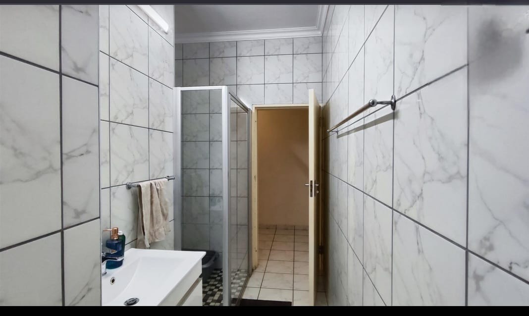 Discover this spacious family home located in the established suburban area of Parkdene, Boksburg, South Africa. Boasting a generous Erf size of 1041 sqm and a floor size of 355 sqm, this property offers ample space for comfortable living and entertaining. The exterior features durable brick construction with a red-tiled roof, complemented by high perimeter walls, an electric fence, and a secure gate, ensuring excellent privacy and security from the street. A paved driveway leads to four garages, providing abundant off-street parking.