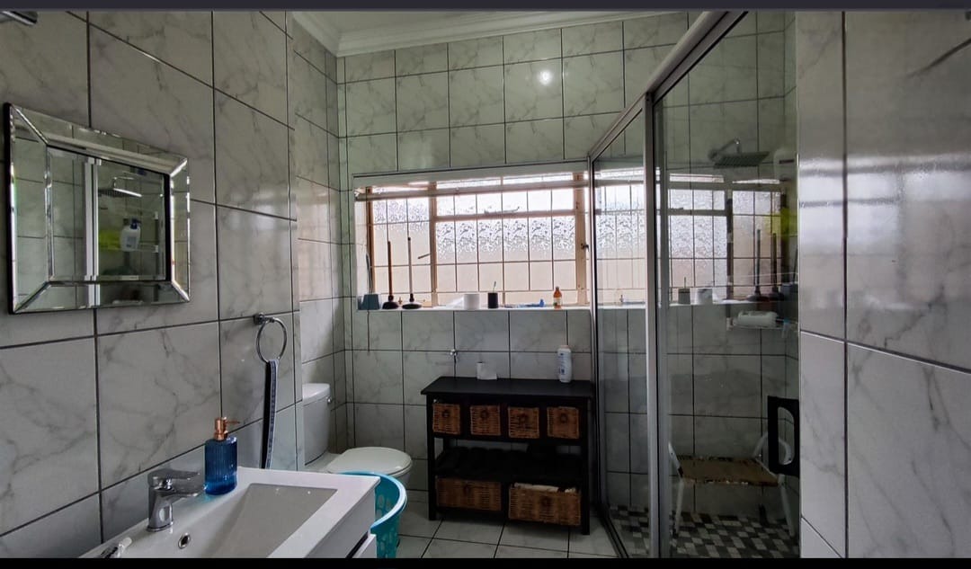 Accommodation comprises four well-proportioned bedrooms, providing private retreats for all family members. There are two bathrooms, with one being an en-suite, adding convenience and privacy. Large windows throughout the home invite natural light, and security bars on all visible windows offer an additional layer of protection.