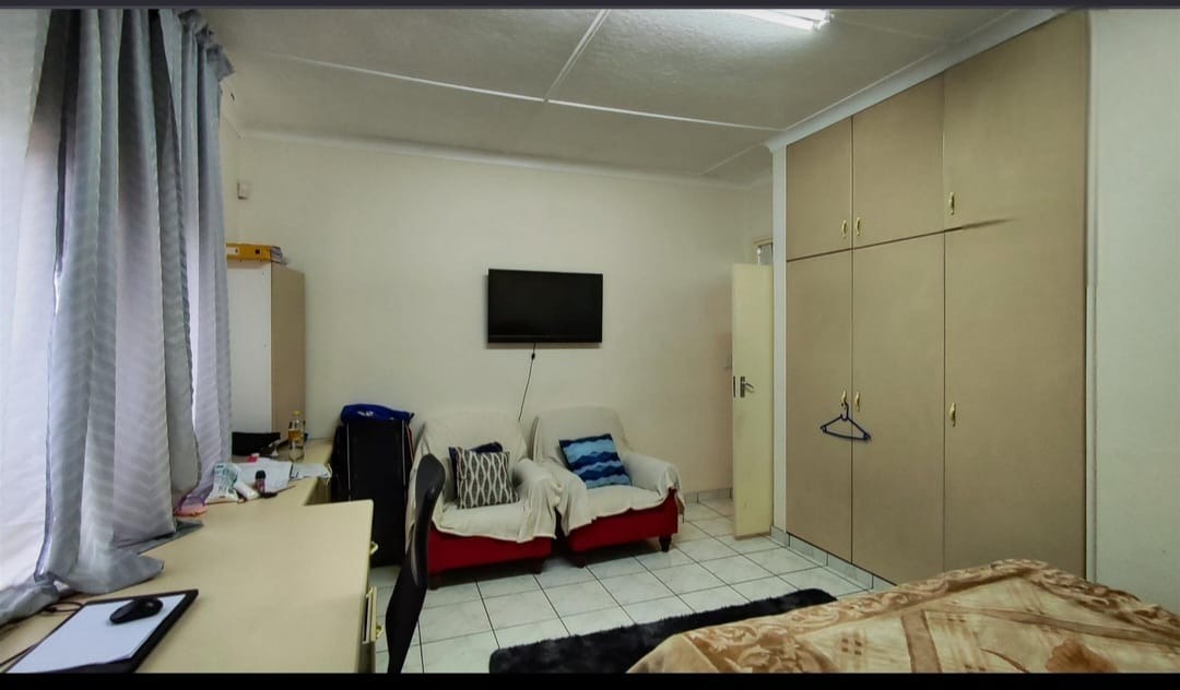 Discover this spacious family home located in the established suburban area of Parkdene, Boksburg, South Africa. Boasting a generous Erf size of 1041 sqm and a floor size of 355 sqm, this property offers ample space for comfortable living and entertaining. The exterior features durable brick construction with a red-tiled roof, complemented by high perimeter walls, an electric fence, and a secure gate, ensuring excellent privacy and security from the street. A paved driveway leads to four garages, providing abundant off-street parking.