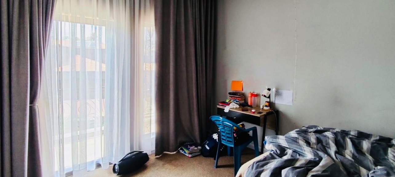 Discover this inviting two-story residence nestled within an estate in Sunward Park, Boksburg, South Africa. This home presents a modern aesthetic with attractive stone accents and features balconies that enhance its kerb appeal. The exterior boasts a lush, well-maintained green lawn, a covered outdoor patio area perfect for relaxation or entertaining, and convenient paved walkways leading around the property, complemented by a private garden. Step inside to a thoughtfully designed interior, featuring a spacious lounge and a dedicated dining room. The heart of the home is its well-appointed kitchen, showcasing warm wooden cabinetry, dark granite countertops, and modern stainless steel appliances, including a gas cooktop and built-in oven/microwave. Ample storage is provided, complemented by a practical pantry. The kitchen's open concept offers a seamless flow into the living area, benefiting from natural light and white tiled floors. This family-friendly home offers four comfortable bedrooms, providing generous space for rest and privacy. There are two well-maintained bathrooms, with one being a private ensuite, ensuring convenience for the occupants. Outdoor living is a delight with a refreshing swimming pool, ideal for warm South African days. The property also includes three garages and three additional parking spaces, catering to multiple vehicles and guests. Pets are allowed, making this an ideal home for animal lovers. The property sits on a generous 631 sqm erf, offering a private garden space. Sunward Park offers a desirable estate living environment within the vibrant city of Boksburg, providing a blend of community and convenience. Key Features: * 4 Bedrooms, 2 Bathrooms (1 Ensuite) * Modern Kitchen with Gas Hob & Built-in Appliances * Open-Plan Lounge & Dining Room * Two-Story Design with Balconies * Covered Outdoor Patio * Private Swimming Pool * Lush Garden & Paved Areas * 3 Garages & 3 Parking Spaces * Pet-Friendly Estate Living
