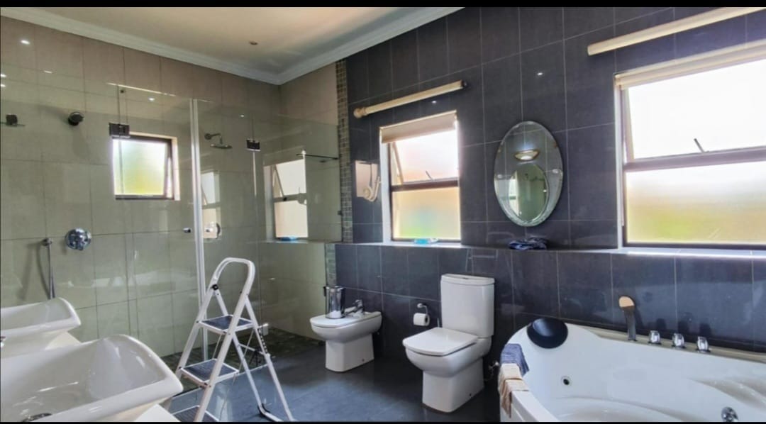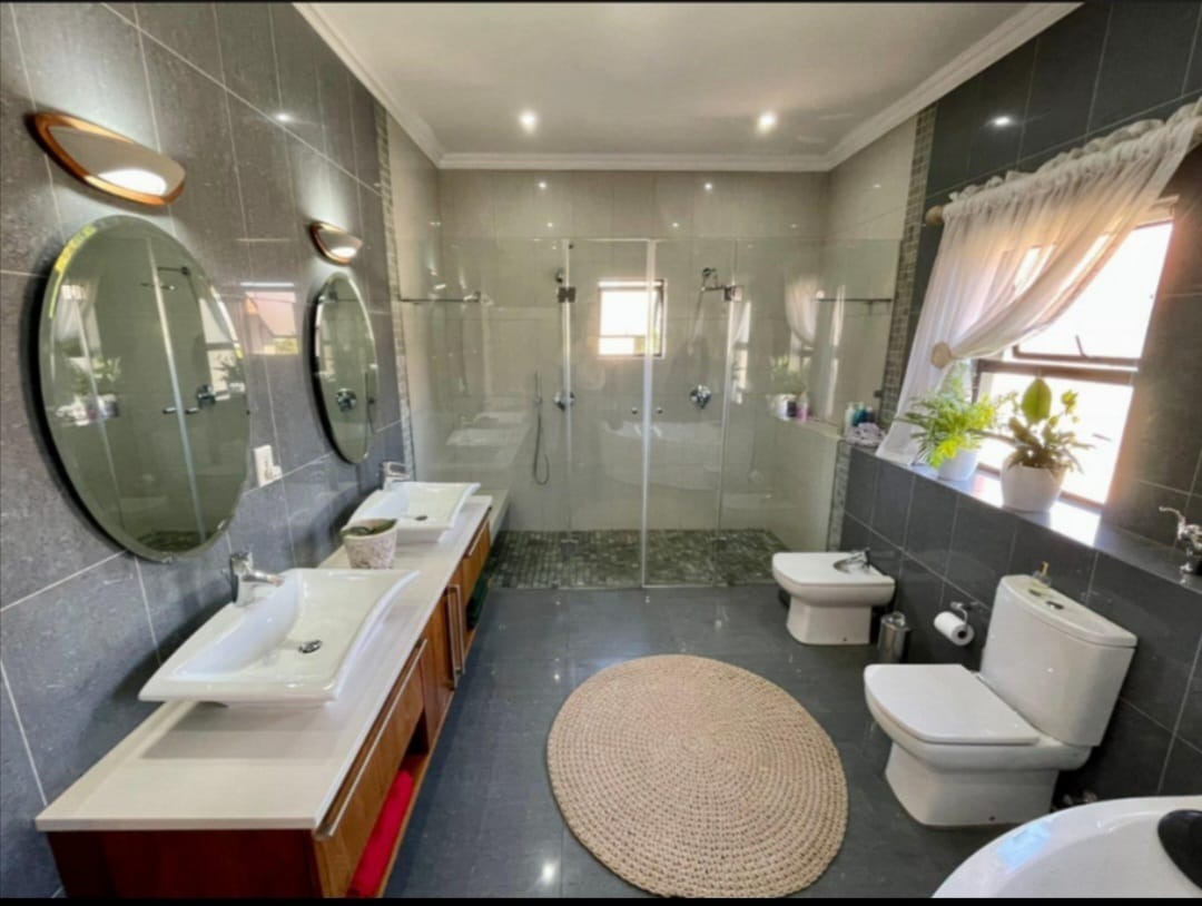 Externally, the property features a private swimming pool, perfect for leisure and recreation, set within an established garden. Paved areas provide practical outdoor space, while the property also enjoys scenic views. Practical amenities include triple garaging and additional parking spaces, ensuring secure accommodation for vehicles. This pet-friendly home within a 24-hour secure complex offers peace of mind and a desirable lifestyle.