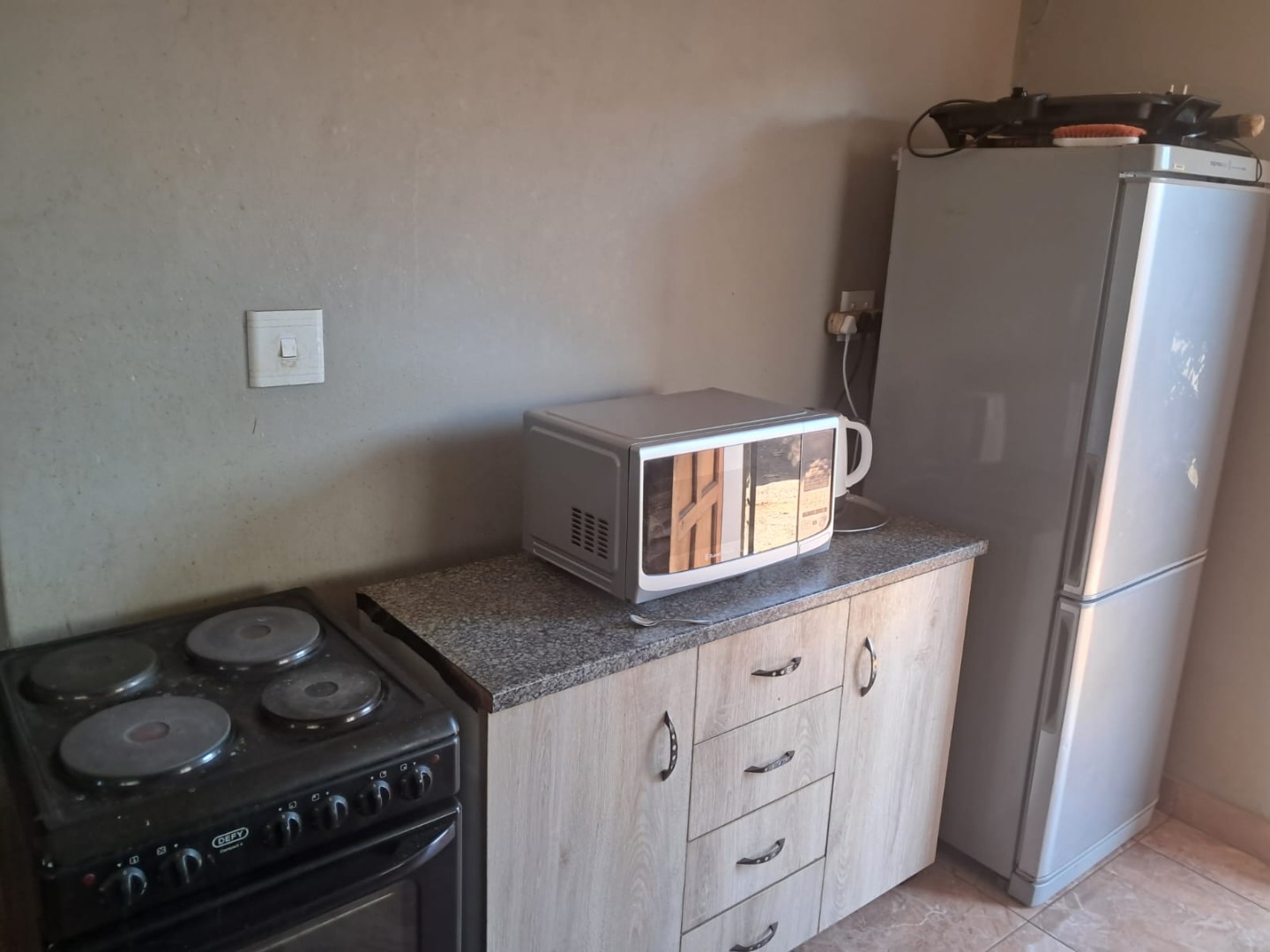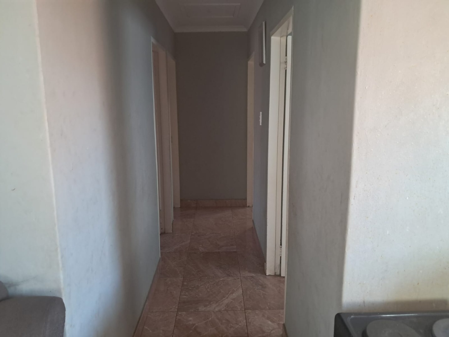 Discover this functional three-bedroom, one-bathroom home situated on a generous 300 sqm erf in Vosloorus Ext 25, Boksburg. The property presents a solid kerb appeal with its tiled roof and light-colored exterior, complemented by security bars on all windows and the main door, ensuring peace of mind for residents. The large yard space offers ample opportunity for future landscaping or outdoor enhancements, providing a blank canvas for your personal touch. Step inside to find a practical layout featuring tiled flooring throughout, promoting easy maintenance and a clean aesthetic. The combined living and kitchen areas are designed for everyday convenience, benefiting from abundant natural light streaming through multiple windows. The kitchen is equipped with essential appliances, including an electric stove with oven, microwave, and refrigerator, alongside functional wooden-look cabinetry and granite-style countertops, catering to your culinary needs. Each of the three bedrooms offers a comfortable retreat, characterized by tiled floors, neutral wall colours, and natural light. Security bars on the windows further enhance safety within these private spaces. The single bathroom is centrally located to serve all bedrooms efficiently. While the interiors are functional, they offer scope for personalization to create your ideal living environment. Outside, the property boasts significant open parking for up to five vehicles, a valuable asset for families or those who entertain. The large plot size provides potential for expansion or the creation of a vibrant garden oasis. This home is a practical choice for those seeking a well-located property with room to grow. Vosloorus Ext 25 offers a convenient suburban lifestyle within the vibrant city of Boksburg, South Africa, providing access to local amenities and transport routes. Key Features: * 3 Bedrooms, 1 Bathroom * 1 Lounge, 1 Kitchen * 300 sqm Erf Size * 5 Open Parking Spaces * Tiled Roof & Exterior * Security Bars on Windows & Doors * Tiled Flooring Throughout * Large Yard Space * Natural Light