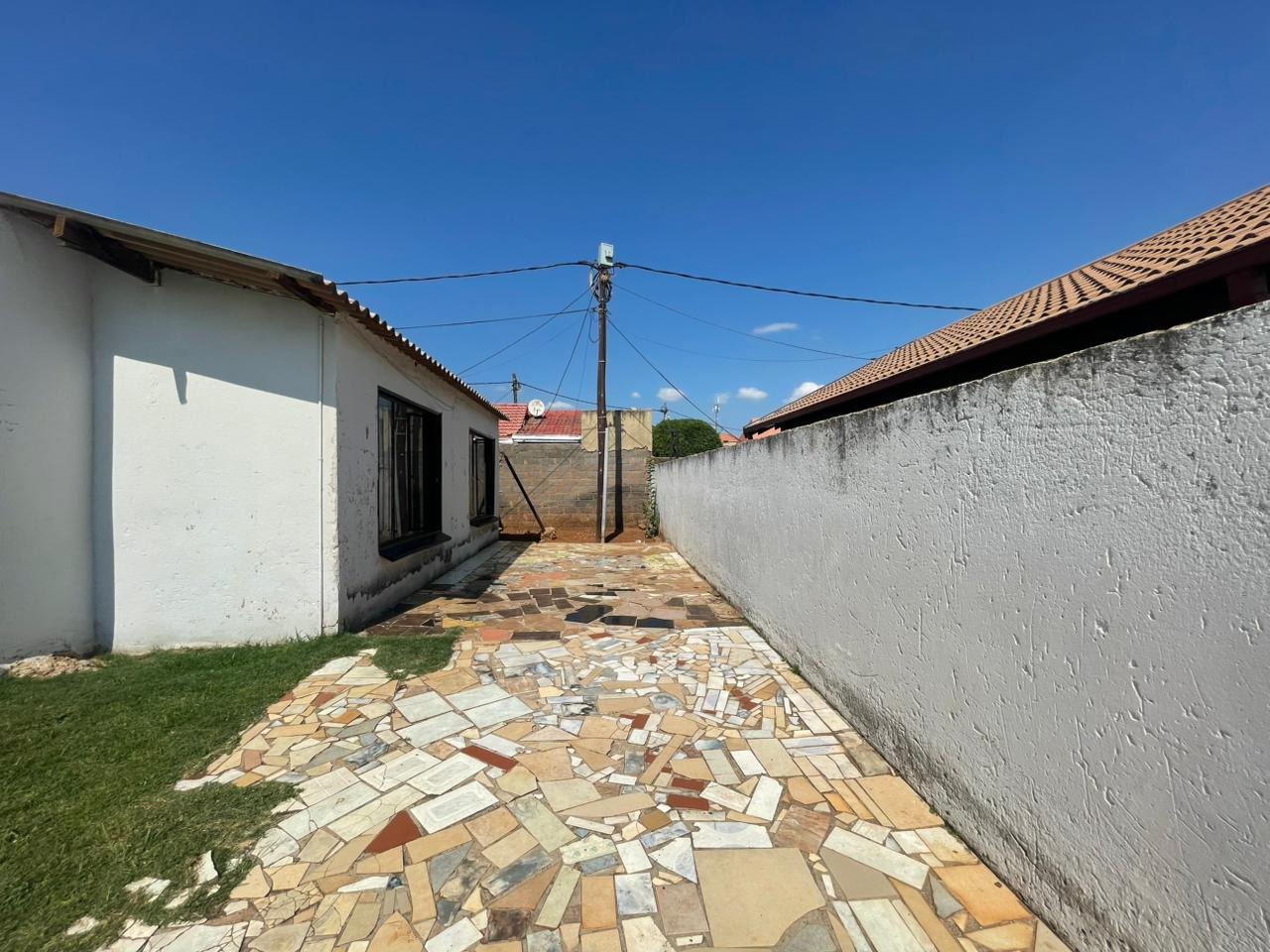 This modest single-story home in Vosloorus, Boksburg, presents a practical and accessible living opportunity within a suburban setting. The property features white exterior walls in a spacious yard for renovations, complemented by both a paved outdoor area and a grassy yard space, offering versatile outdoor use. Security is a key consideration, with windows fitted with burglar bars and a security gate at the entrance, ensuring peace of mind for residents.