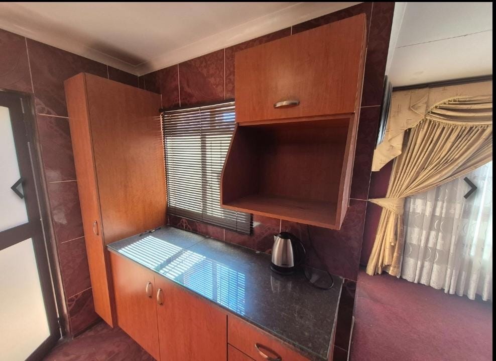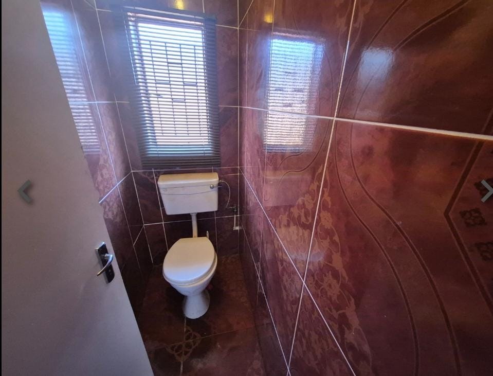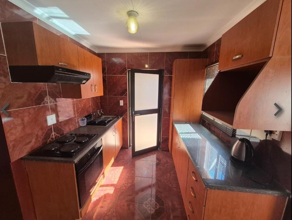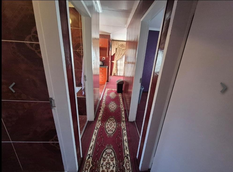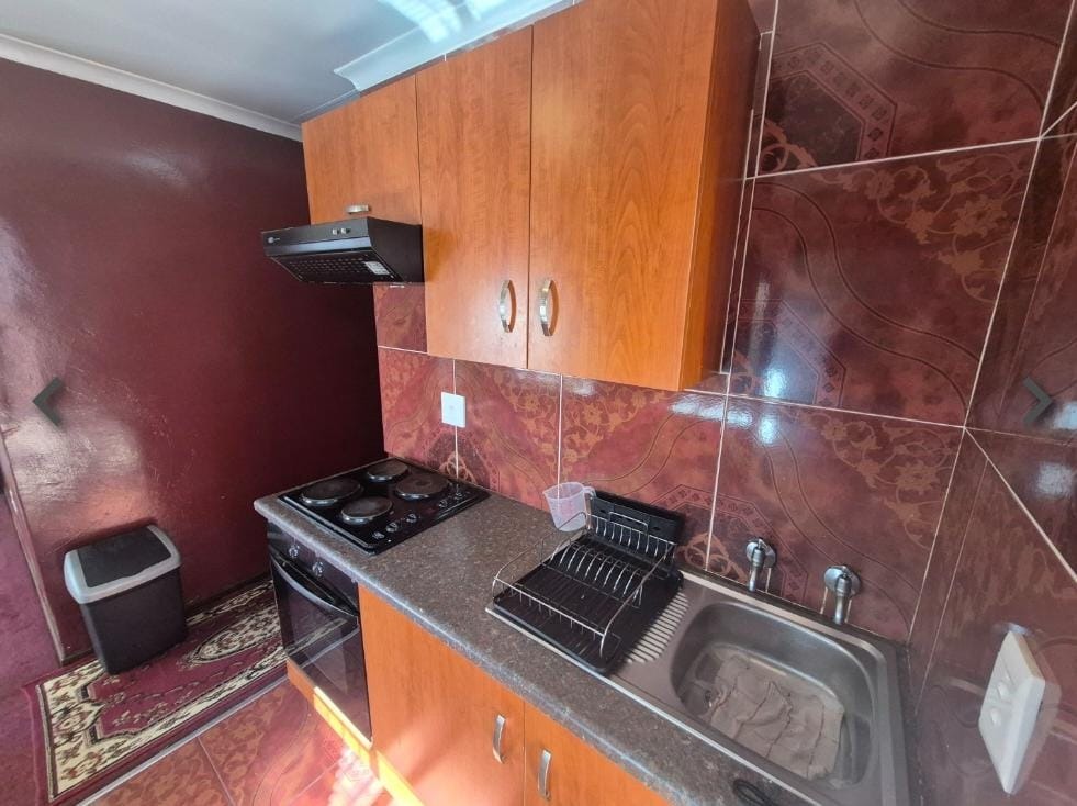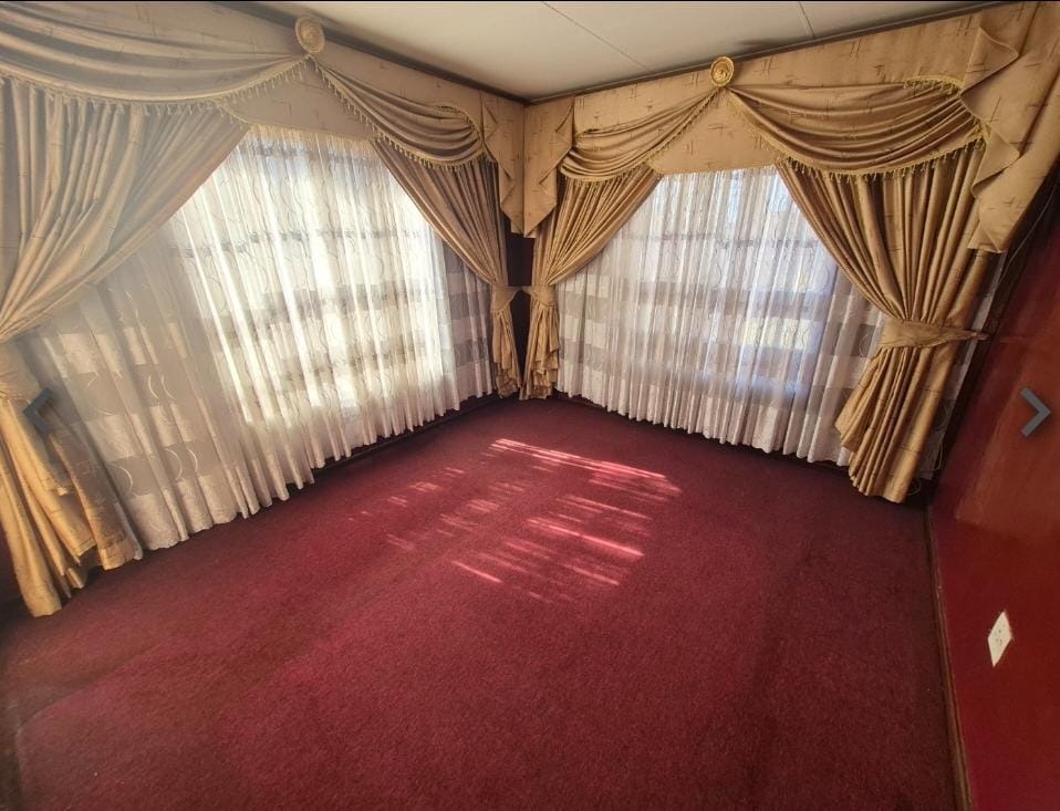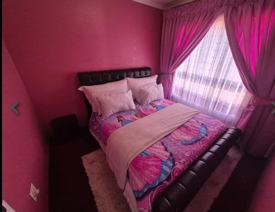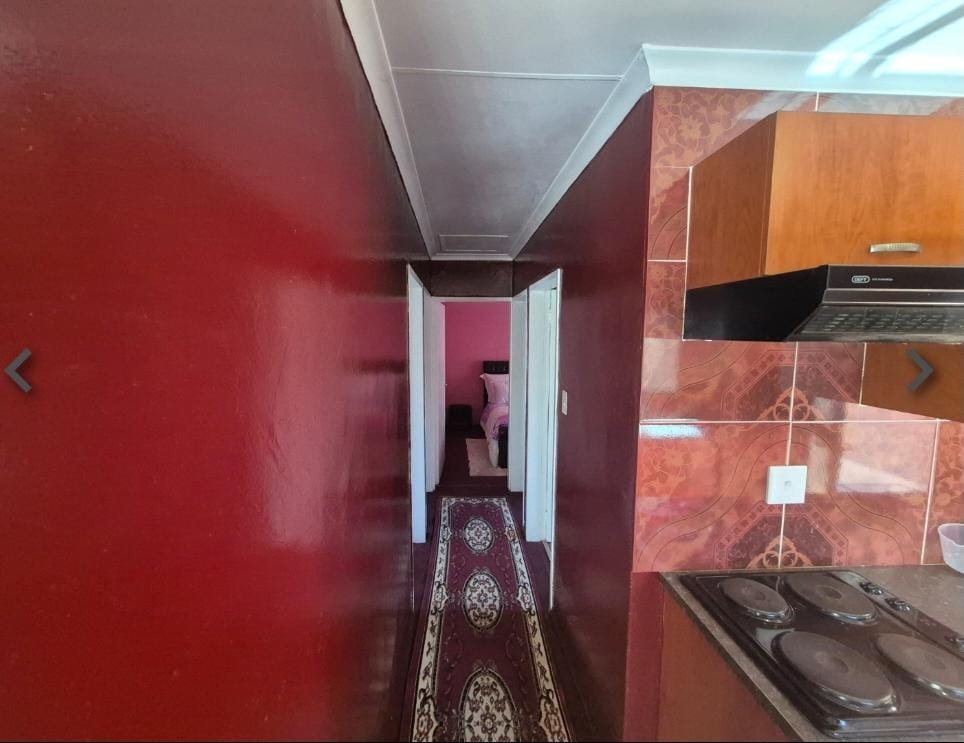 Discover this inviting residential property located in the established area of Geluksdal Ext 1, Brakpan. This home presents a practical layout with three bedrooms and 1.5 bathrooms, catering to comfortable family living. The exterior features a neat, freshly painted light peach finish with brown trim and a tiled roof, offering a welcoming first impression. Security is enhanced with a security gate and burglar bars, providing peace of mind. The interior boasts a functional kitchen equipped with wooden cabinetry, dark countertops, a built-in stove, oven, and range hood. Tiled floors and a matching backsplash ensure easy maintenance. The property includes a dedicated lounge area, providing a space for relaxation. The three bedrooms offer individual character, with one featuring a built-in sliding door wardrobe for ample storage, and another showcasing vibrant fuchsia-pink walls, while a third presents bold purple walls and a red carpet, allowing for personal customisation. Set on a generous 891 sqm erf, the property offers a paved front area and four dedicated parking spaces, ensuring convenience for residents and guests. Additional features include a lapa, perfect for outdoor entertaining, a garden, and outside toilets, adding to the property's functionality. The presence of a flatlet provides versatile options, whether for extended family, rental income, or a home office. This home combines essential amenities with a spacious erf, offering potential for various lifestyle needs. Geluksdal Ext 1 is a residential suburb in Brakpan, South Africa, known for its community atmosphere and accessibility to local amenities. This location provides a convenient setting for those seeking a well-connected living environment.