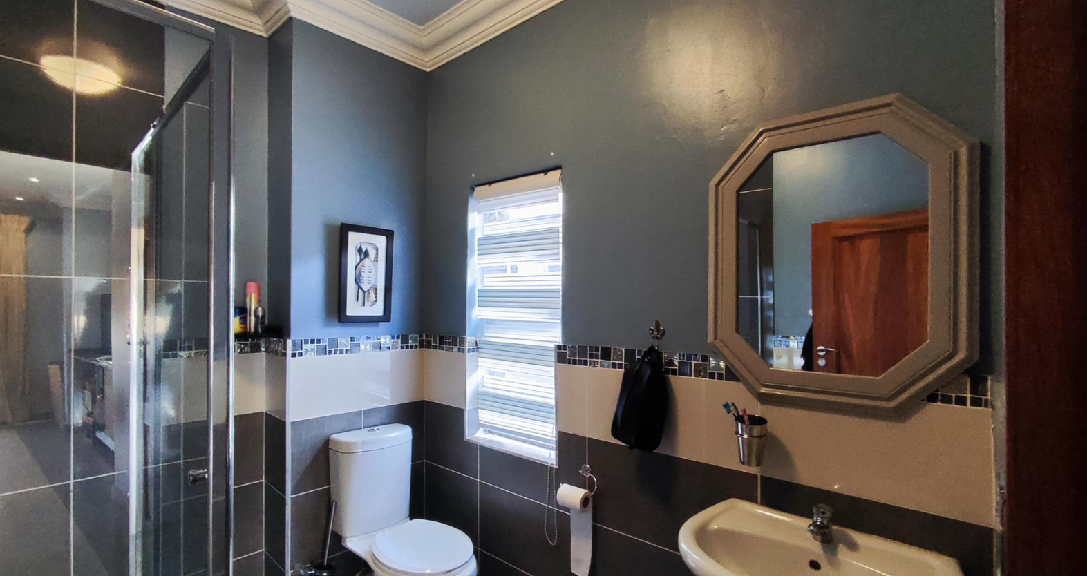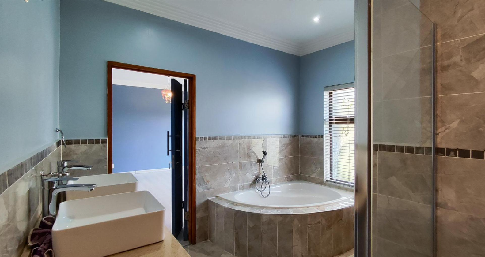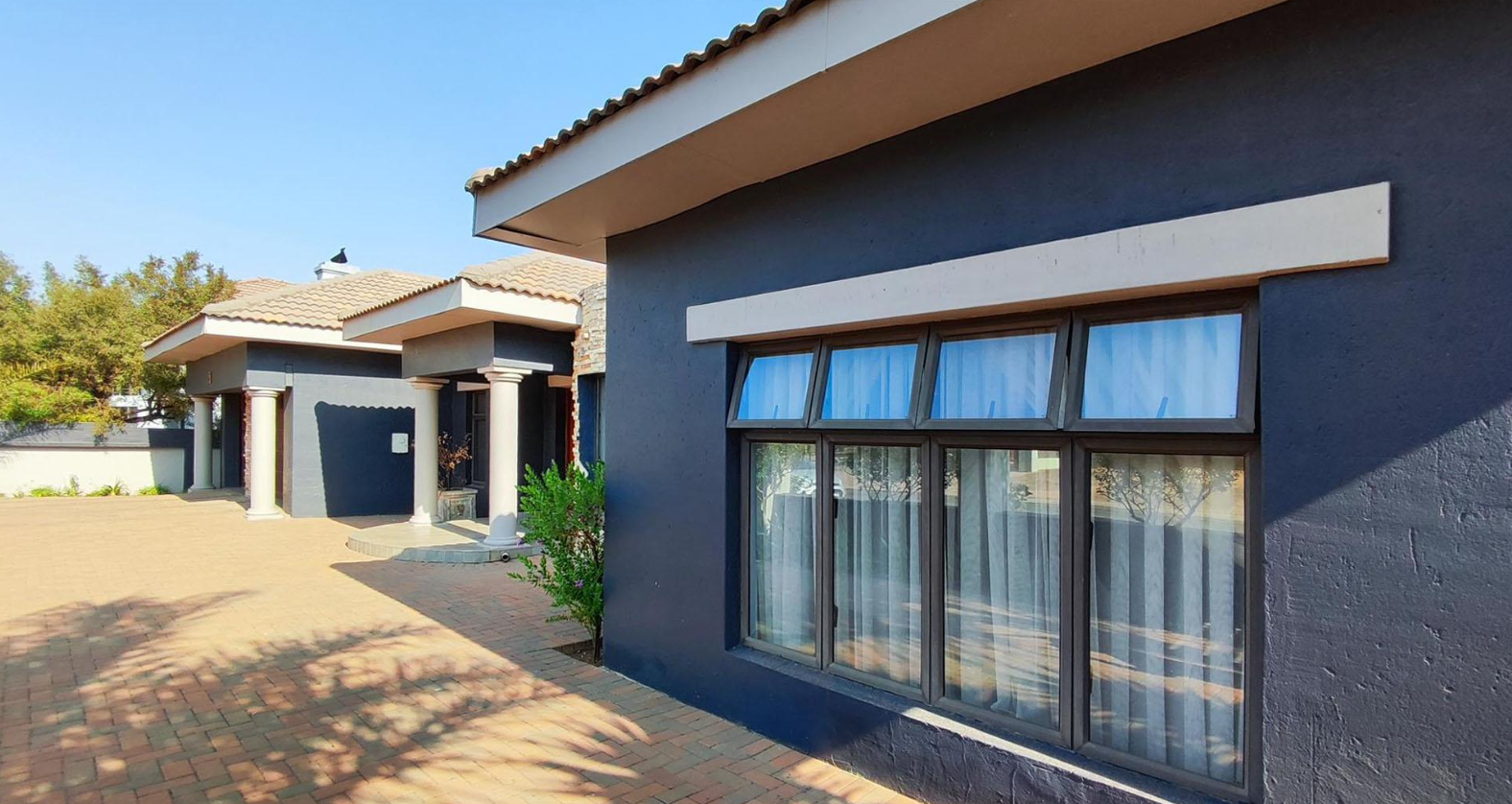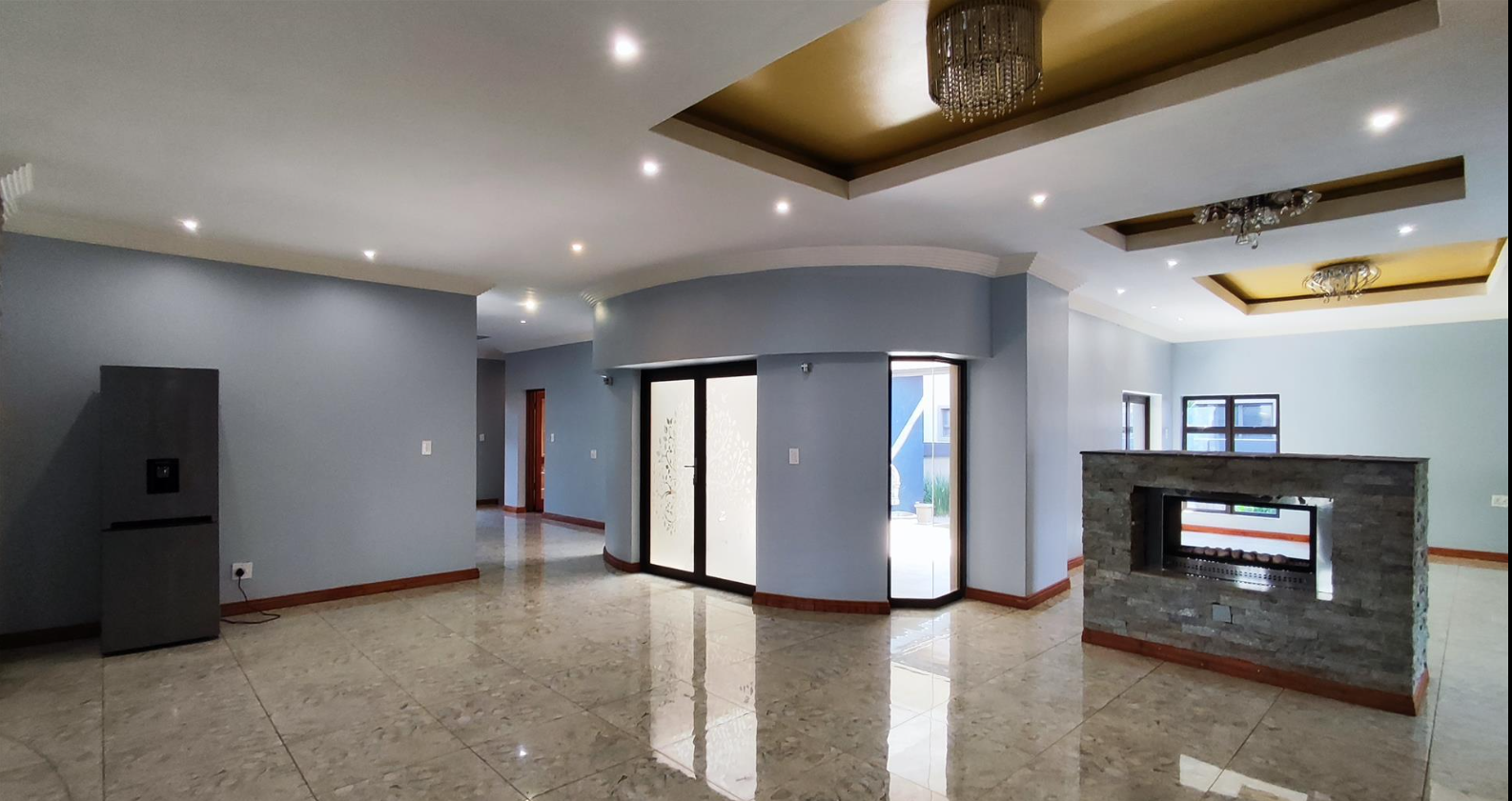 Discover this exceptional 5-bedroom, 4.5-bathroom residence situated within the secure and sought-after Helderwyk estate in Brakpan. Boasting a generous Erf size of 800 sqm and a floor size of 426 sqm, this property offers ample space for comfortable family living. The modern exterior features a stylish design with dark walls, elegant stone cladding accents, and decorative pillars, complemented by a terracotta-tiled roof and a well-maintained paved driveway leading to a multi-car garage with attractive wooden doors. Neat landscaping and a low boundary wall enhance its impressive curb appeal.