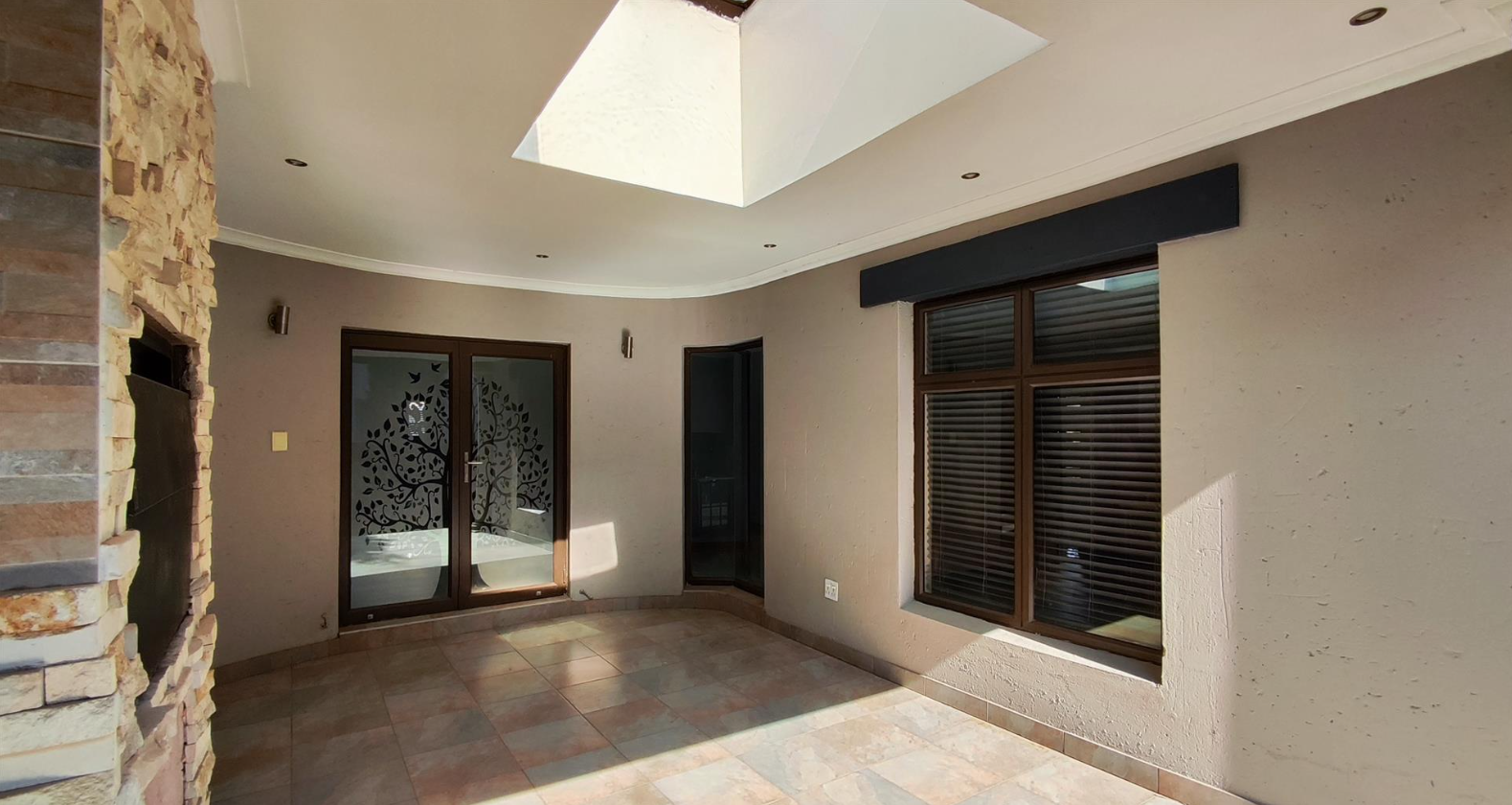 Outdoor living is enhanced by a well-maintained garden and paved areas, perfect for relaxation or entertaining. The property benefits from a double garage and additional paving for parking. For those focused on wellness, a private gym is available. Practical amenities include staff quarters, adding to the home's functionality. Located within a security estate with 24-hour security and an access gate, residents can enjoy peace of mind and a secure environment. The property also boasts a scenic view, completing this desirable offering.