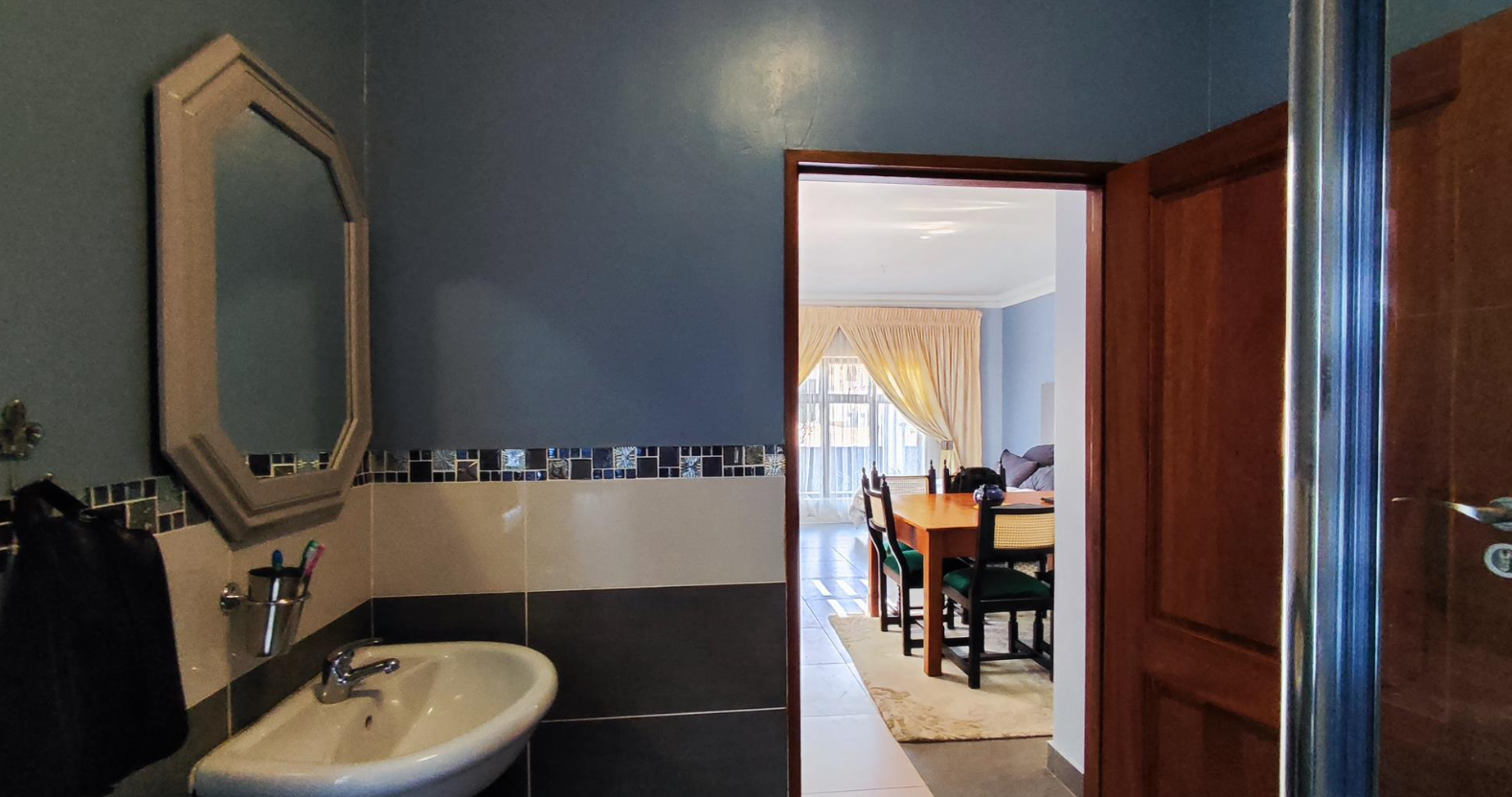 This home offers five spacious bedrooms and 4.5 modern bathrooms, including a guest toilet, ensuring comfort and privacy for all residents. The bathrooms feature contemporary fittings, including vessel sinks, marble-look tiled backsplashes, and concealed cisterns. The property also includes a dedicated family/TV room and a pantry, catering to diverse lifestyle needs. A notable feature is the presence of a flatlet, offering versatile accommodation options.
