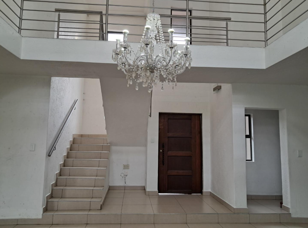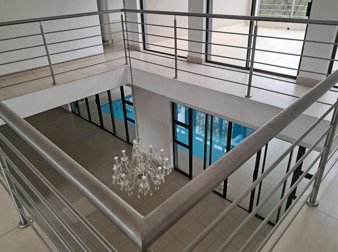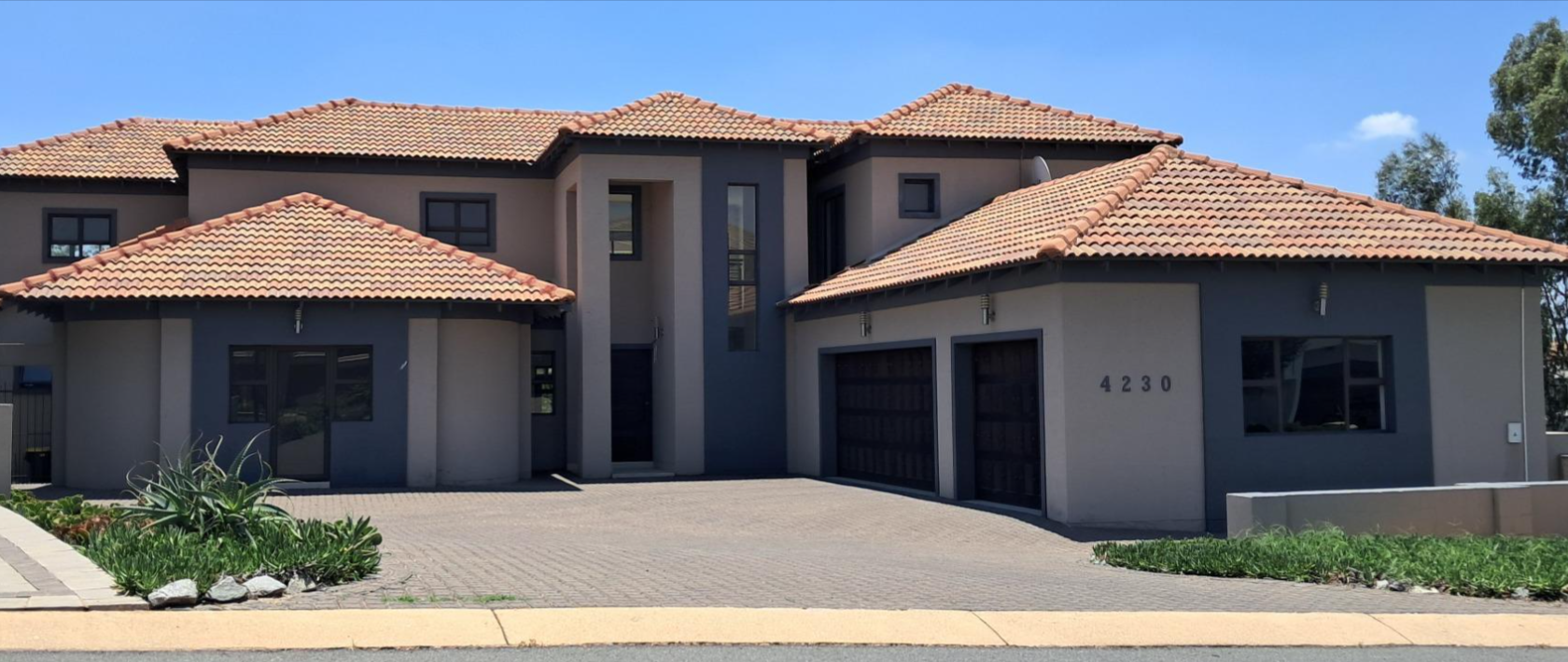 =Discover an unparalleled lifestyle within the prestigious Blue Valley Golf Estate, where this magnificent 553 sqm residence on an 833 sqm erf awaits. From the moment you approach, the modern, multi-level architectural design and expansive paver driveway, leading to a triple integrated garage, exude sophisticated kerb appeal. Step inside to a grand double-height entry hall, illuminated by an exquisite crystal chandelier, setting a tone of opulent elegance that flows throughout the home.