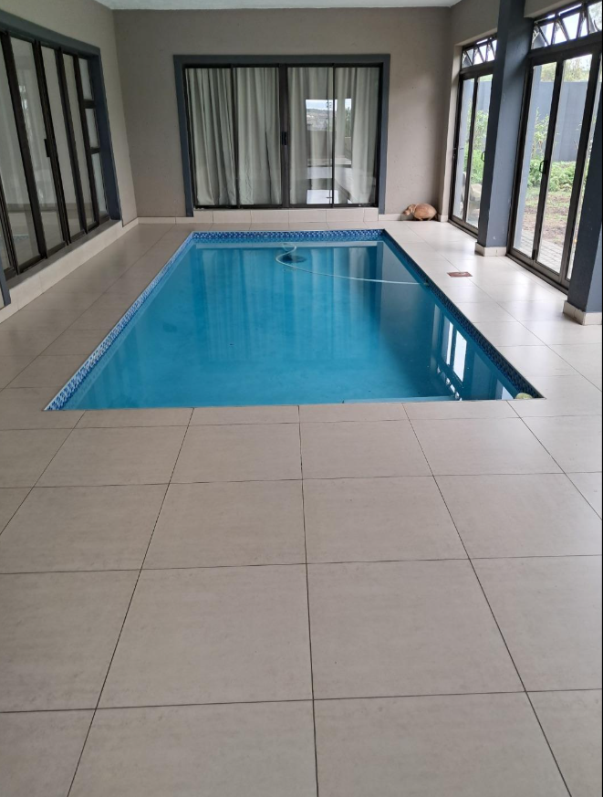 Beyond the interiors, a world of leisure awaits. Indulge in year-round aquatic enjoyment with your very own indoor swimming pool, a rare and coveted amenity. Multiple balconies and a spacious patio offer serene outdoor living, overlooking a meticulously maintained garden and scenic views. As part of the esteemed Blue Valley Golf Estate, residents enjoy exclusive access to a championship golf course, a sophisticated clubhouse, and tennis courts, fostering an active and vibrant community lifestyle. Additional conveniences include staff quarters and domestic rooms.