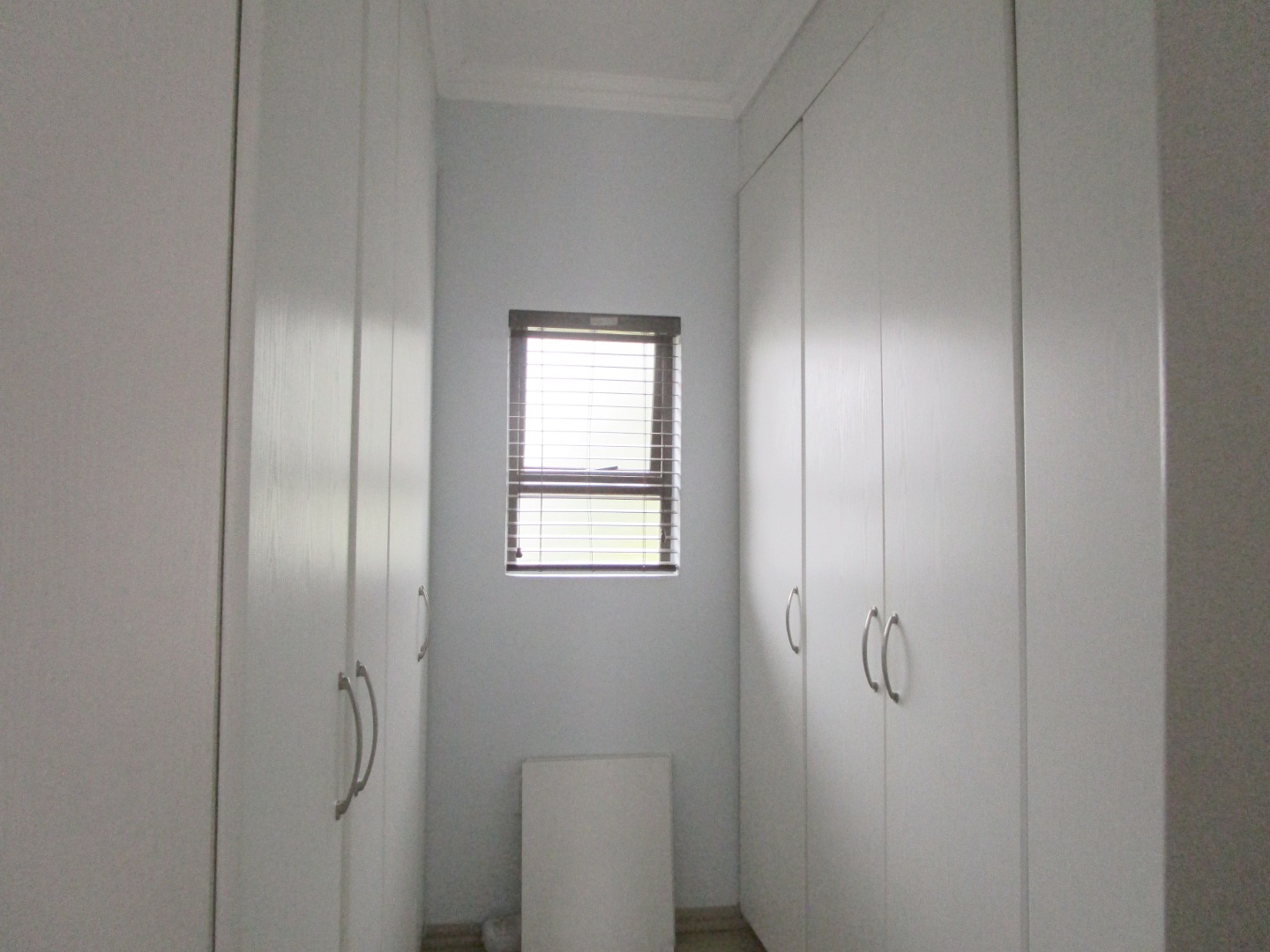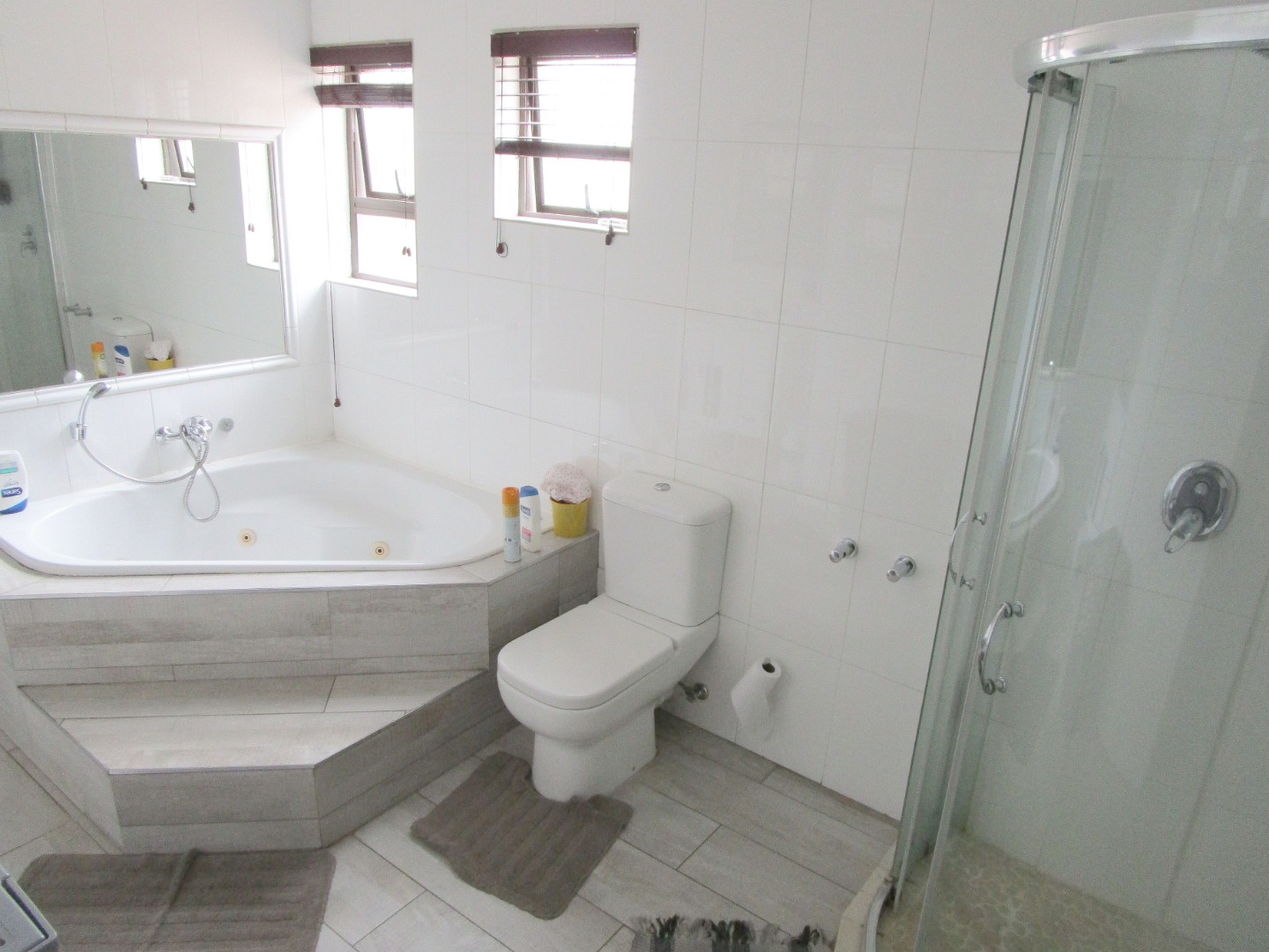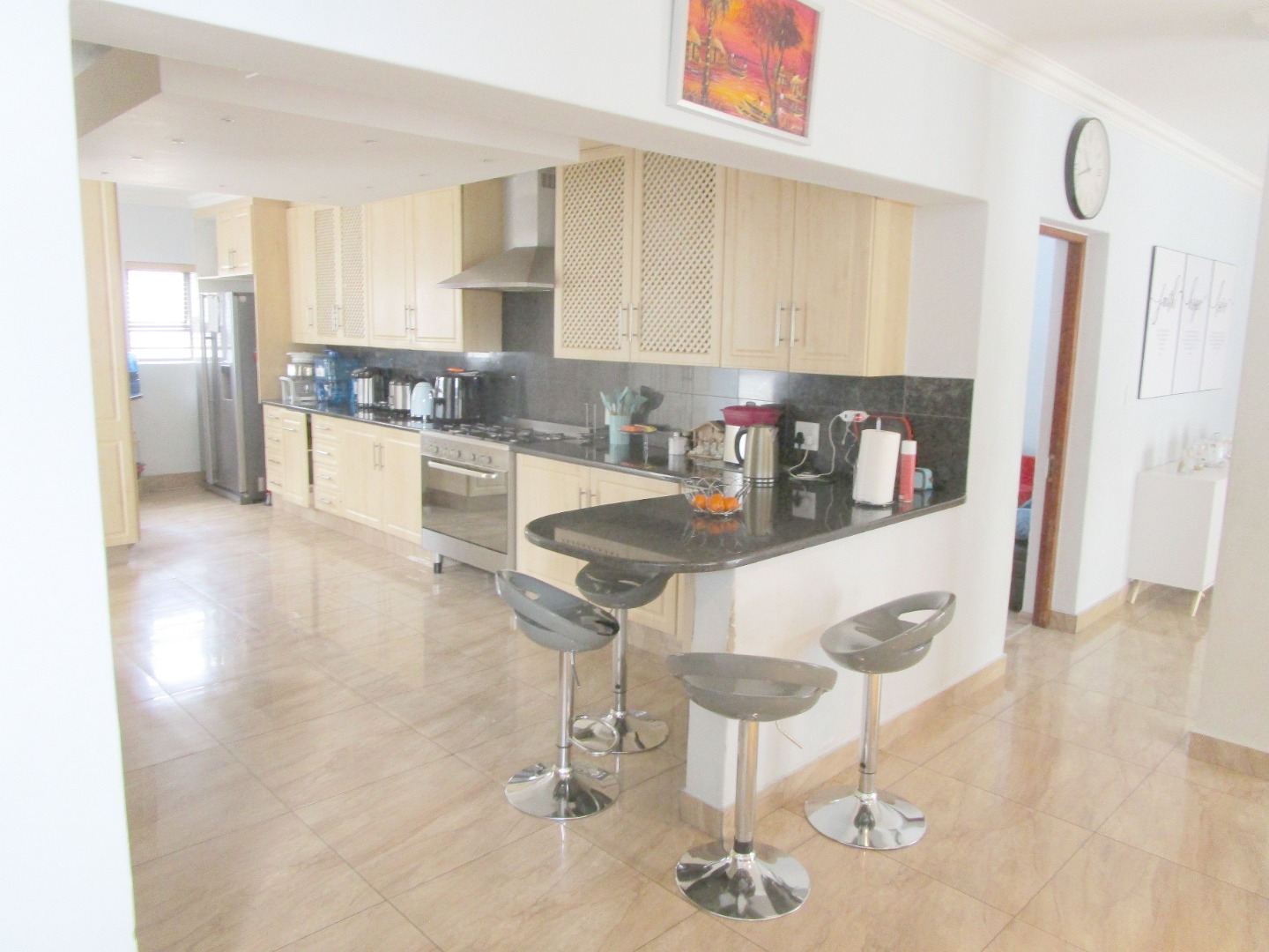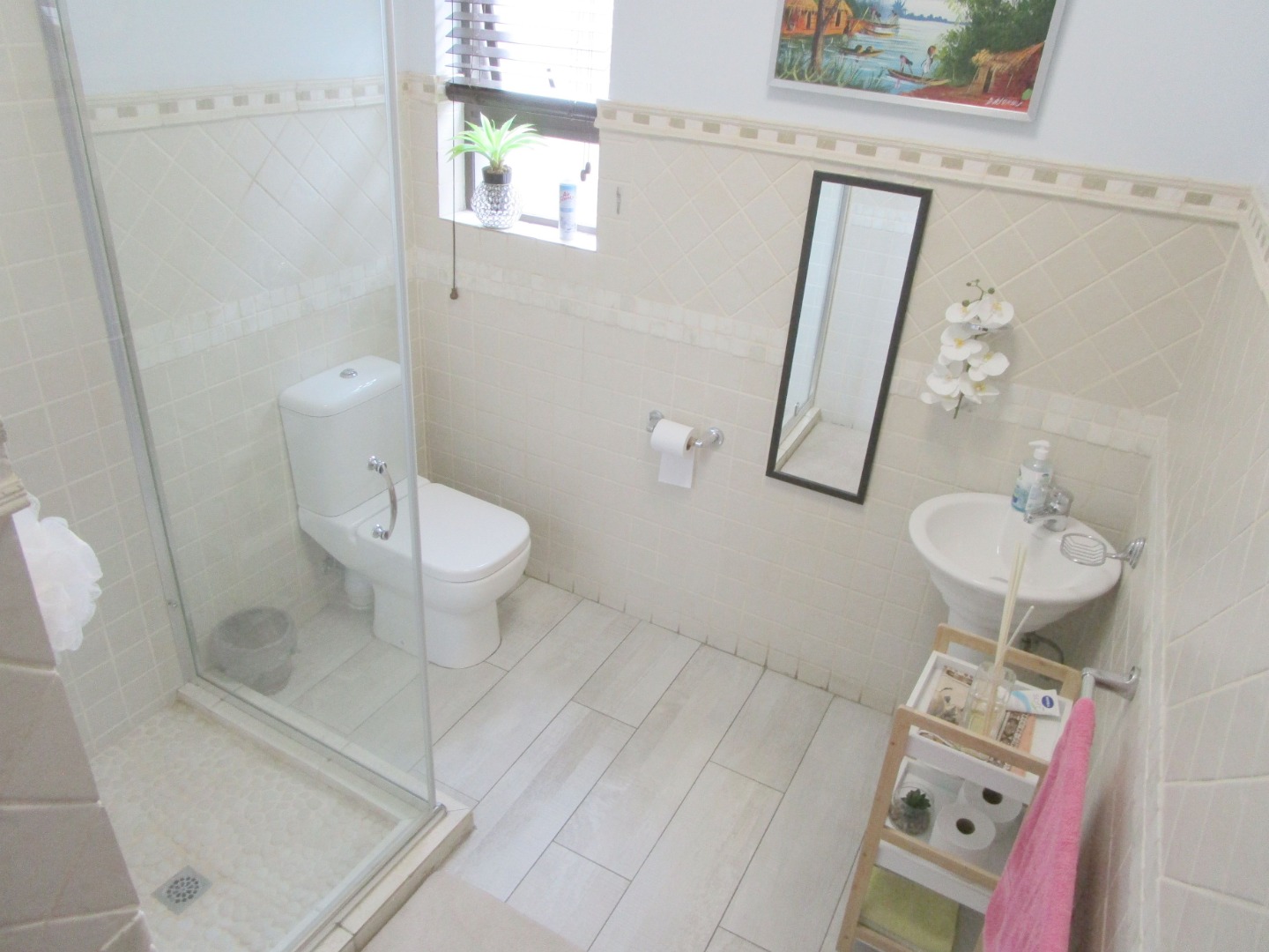 An outdoor sanctuary awaits, featuring a sprawling covered veranda, an idyllic setting for sophisticated al fresco dining and grand entertaining. This expansive space seamlessly transitions to a paved patio and lush, irrigated gardens, family size swimming pool with overflowing water-feature over the pool which offers a heated solar panels creating a serene backdrop for relaxation. A built-in braai invites memorable gatherings under the African sky. Practical considerations are met with two secure garages and an impressive six additional parking spaces, ensuring effortless accommodation for residents and guests alike.