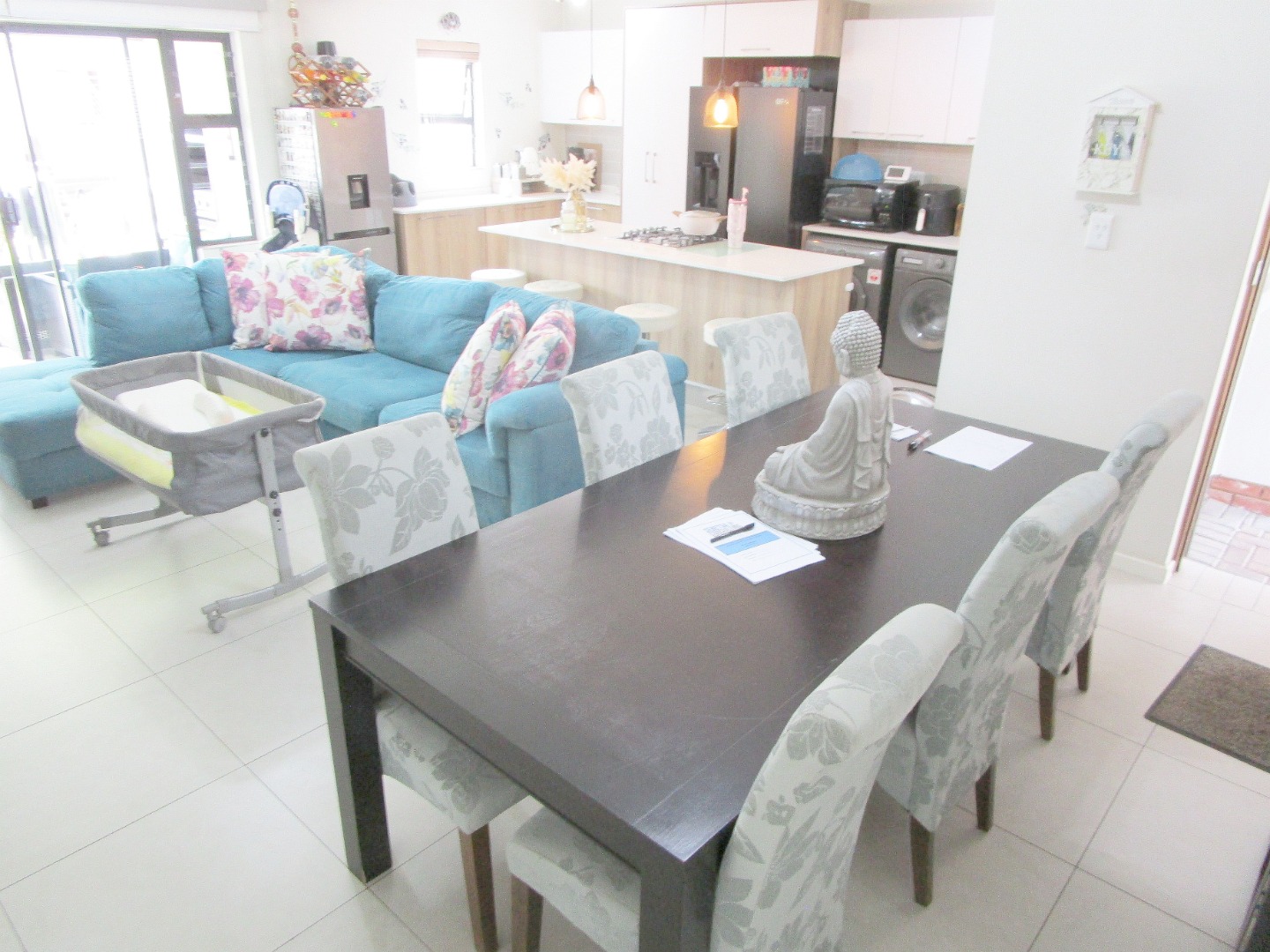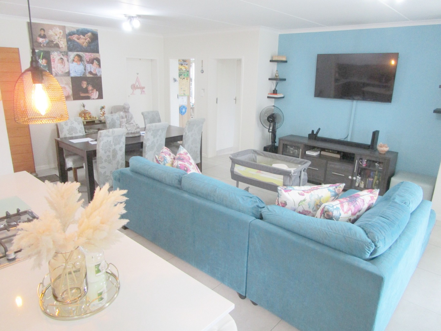 Presenting a superb residential opportunity in the sought-after Modderfontein area of Edenvale, this three-bedroom, two-bathroom home offers a blend of comfort and security. Designed for contemporary living, the property features an open-plan layout that seamlessly connects the living spaces, enhanced by sliding doors that invite natural light and provide easy access to the outdoors.