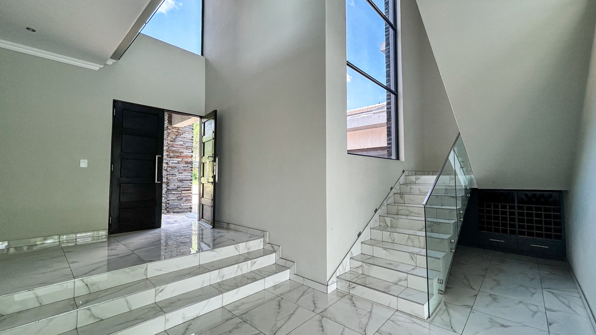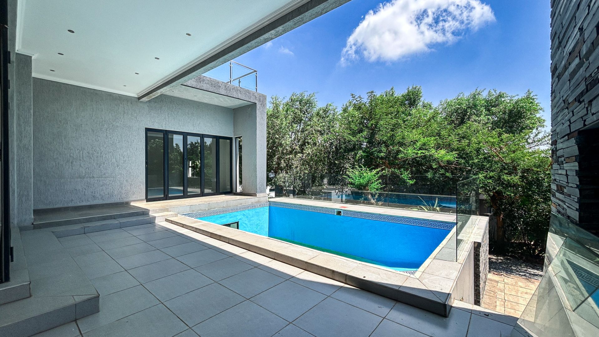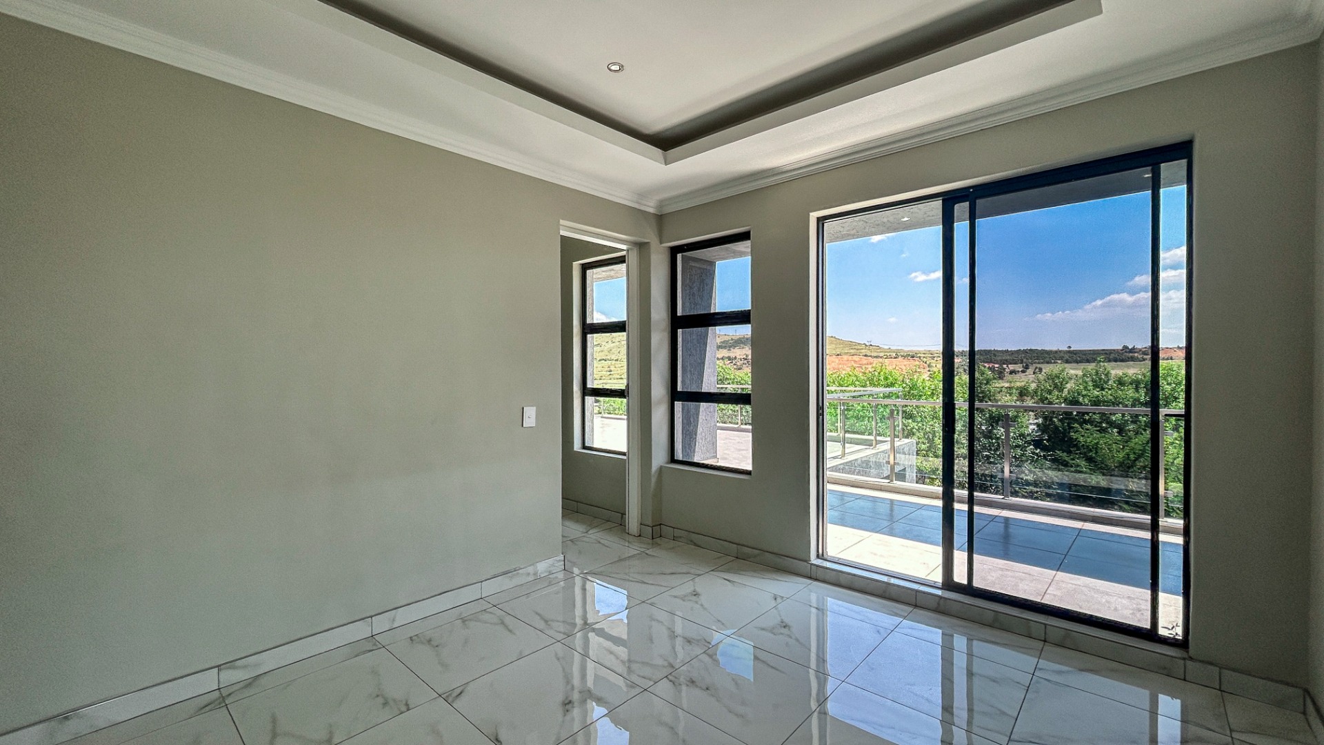 Discover an exceptional residential sale opportunity within the prestigious Eye Of Africa Estate in Eikenhof, South Africa. This expansive property presents a modern aesthetic, offering a sophisticated living experience. The design incorporates contemporary elements, including sleek glass and steel balcony railings, which frame the breathtaking, expansive scenic views of the surrounding hilly landscape under a clear blue sky, as seen from the property. Step inside to find a generously proportioned home featuring seven well-appointed bedrooms and eight bathrooms, including one ensuite, providing ample comfort and privacy for residents and guests alike. The interior layout includes a dedicated kitchen and a dining area, designed for both everyday living and entertaining. While specific finishes are not detailed, the overall scale suggests a focus on spaciousness and functionality. Outdoor living is enhanced by the property's significant Erf size of 1143 square metres, offering considerable space for various activities. The modern balcony provides an ideal vantage point to appreciate the natural beauty of the area. Practical amenities include a four-car garage, ensuring secure parking and additional storage. As part of an established estate, this property benefits from the inherent security and community lifestyle associated with such developments. The estate setting provides a tranquil environment, complementing the home's design and its connection to the natural surroundings. The Eye Of Africa Estate is renowned for its quality living and scenic beauty, making it a desirable address in Eikenhof. Key Features: * Seven spacious bedrooms * Eight well-appointed bathrooms * One dedicated ensuite bathroom * Modern kitchen facilities * Separate dining area * Four secure garages * Expansive 1143 sqm Erf size * Balcony with scenic views * Located within Eye Of Africa Estate