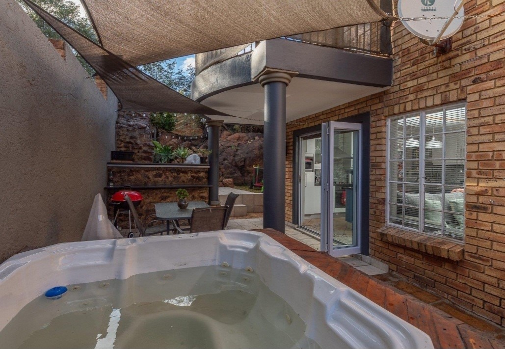 Externally, the property features a private garden, offering a serene outdoor retreat. A swimming pool provides an excellent amenity for leisure and recreation, while paved areas enhance accessibility and aesthetic appeal. Practical considerations are well-addressed with two garages and additional parking provisions. Furthermore, the inclusion of solar panels, a battery inverter, and water tanks underscores a commitment to sustainable living and reduced utility costs. The property also accommodates pets, adding to its family-friendly appeal within this secure complex environment.