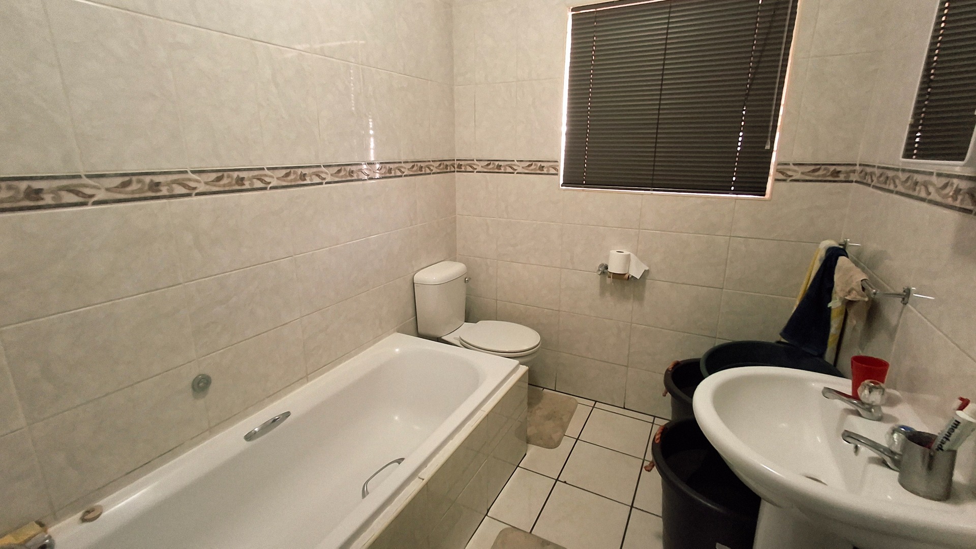 - 2 bathrooms – one with shower, basin & toilet; the main en-suite with bath, basin & toilet
